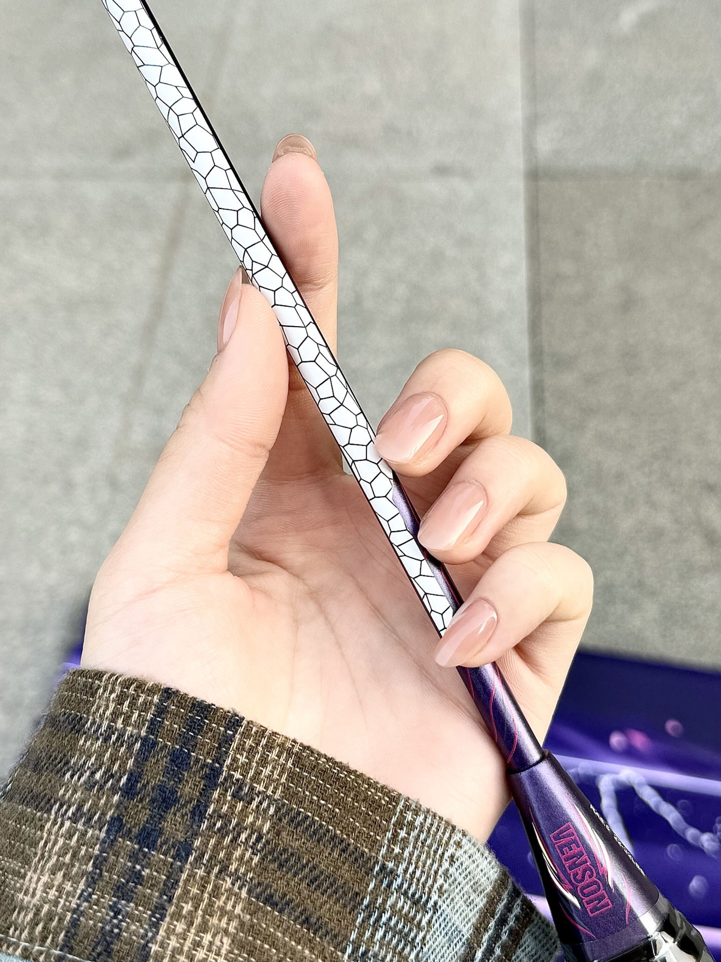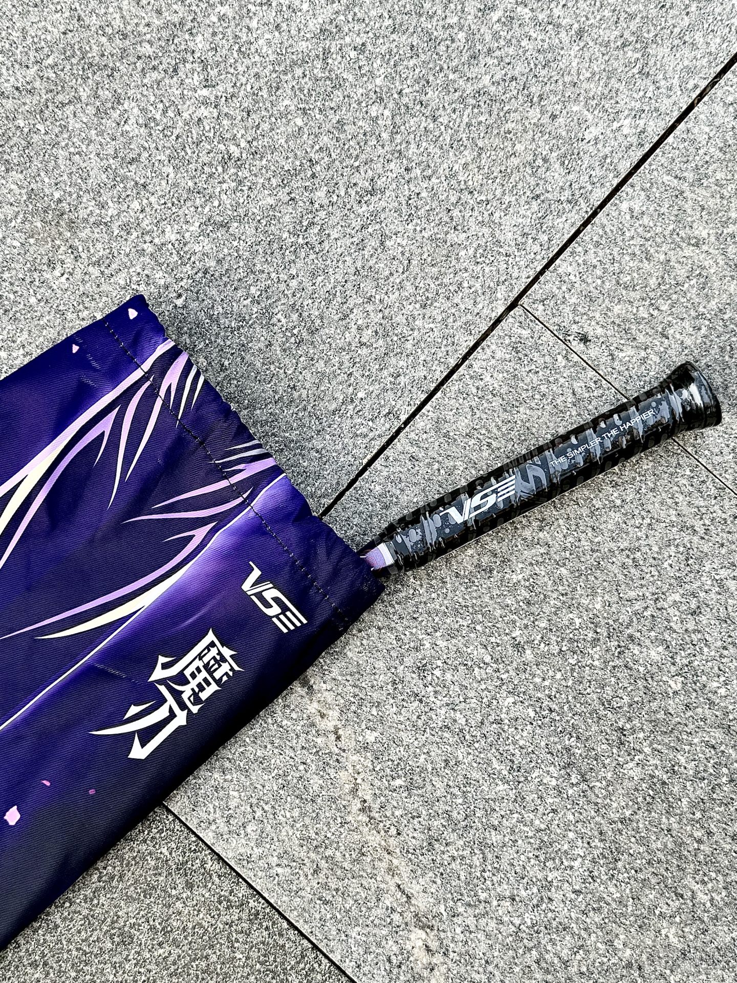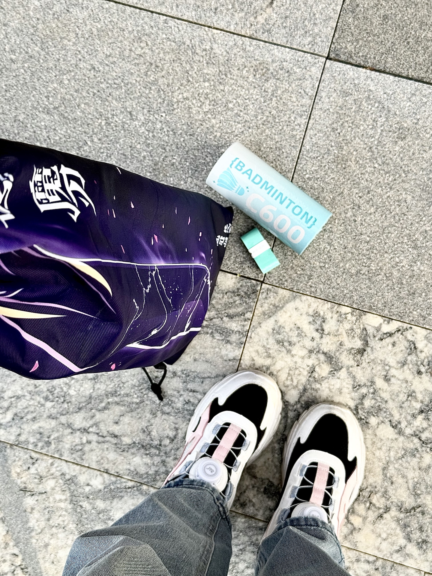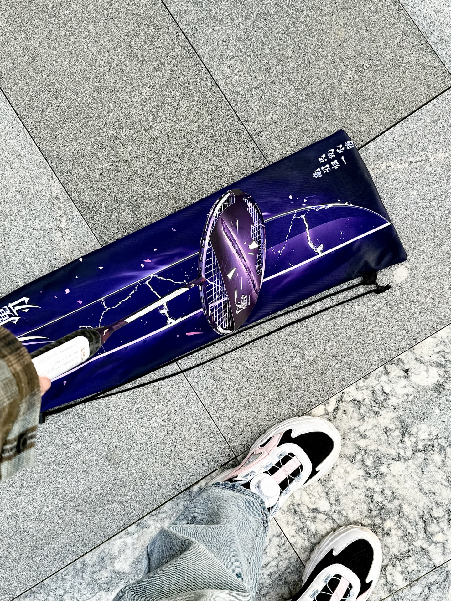 看好多人推荐威臣魔刃羽毛球拍😉,紫色那款颜值确实绝~ 它对新手很友好💪。我在犹豫入它还是买个更进阶的。 有用过的小伙伴说说它耐用度咋样吗? (配图:同款手部近景照一张、拍包近景照一张、拍包放脚边近景照一张) 。