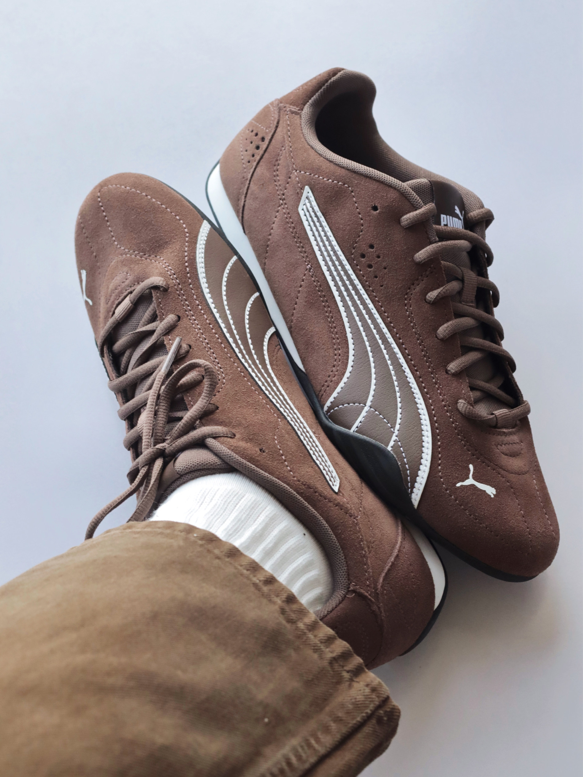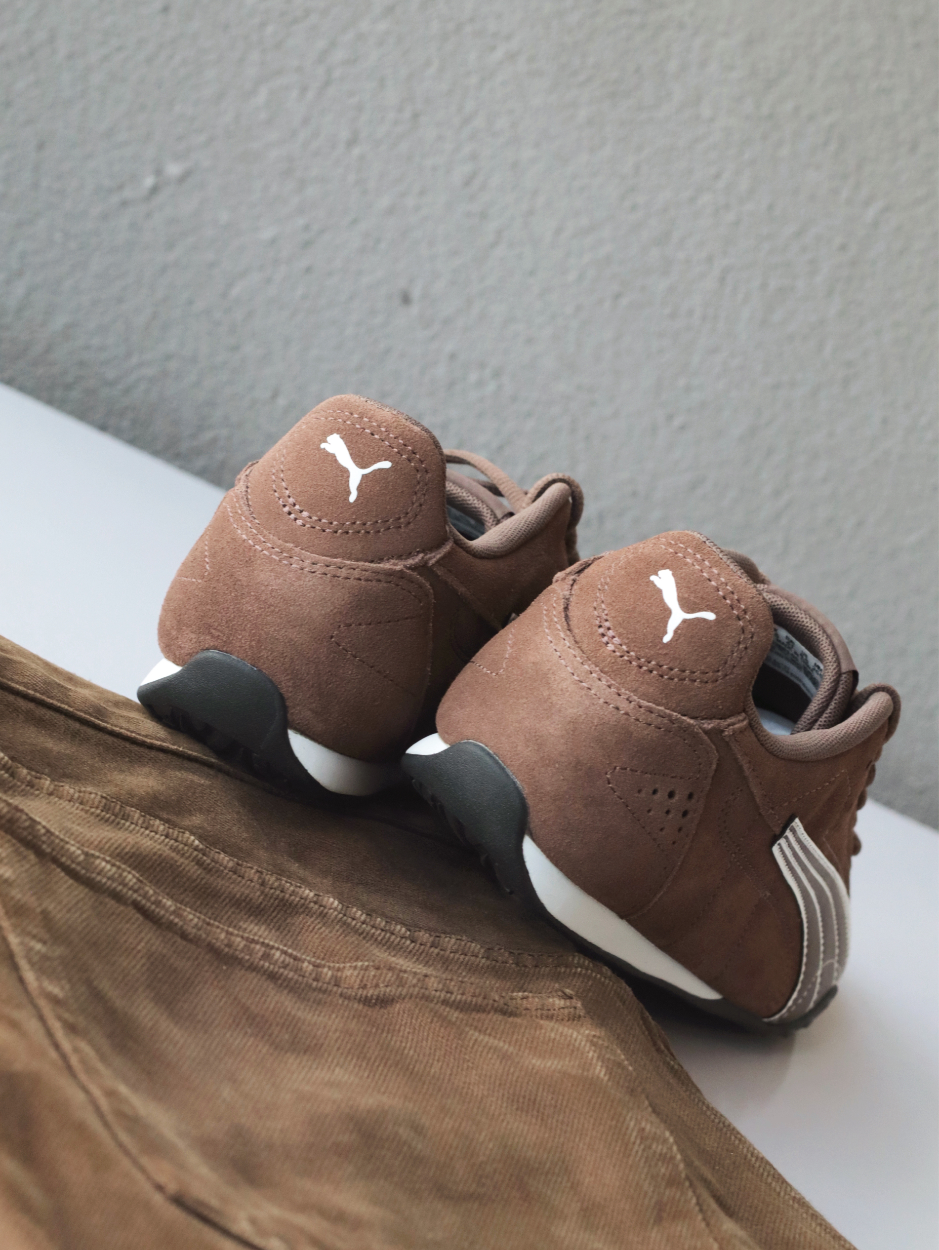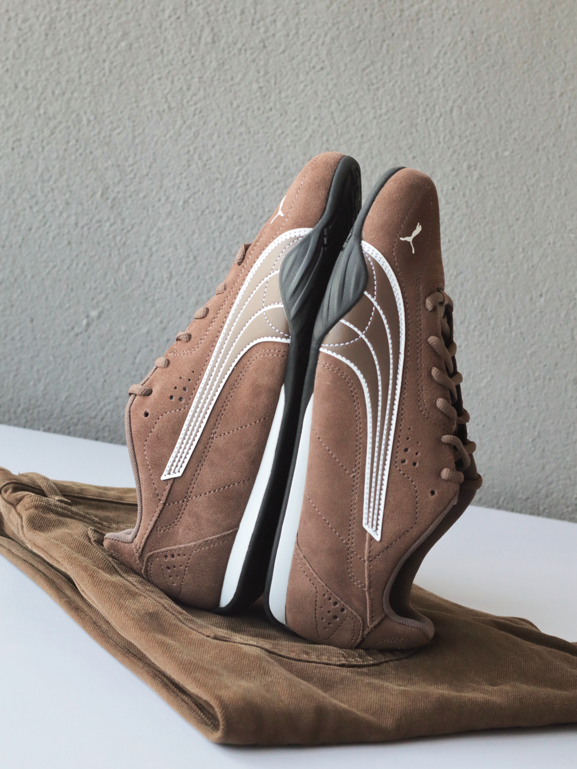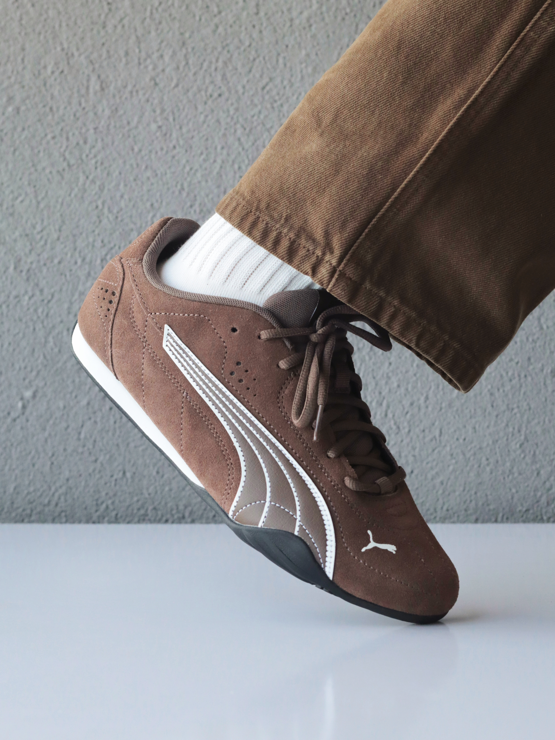薄底鞋应该是时髦精的必备鞋款了吧~ 最近挖到一双美拉德好鞋! 来自Puma的Catch SD~ 麂皮材质搭配咖啡棕,质感柔软舒适! 复古的薄底设计,上脚hin优雅~ 鞋侧醒目的皮质跑道标,小logo点缀鞋头 简约高级又非常有辨识度! 尺码不偏,通勤逛街穿包帅的~