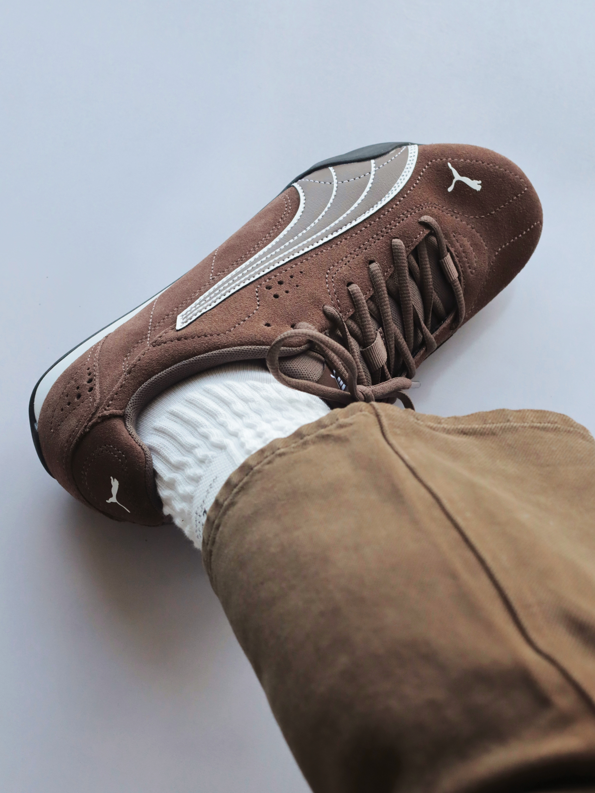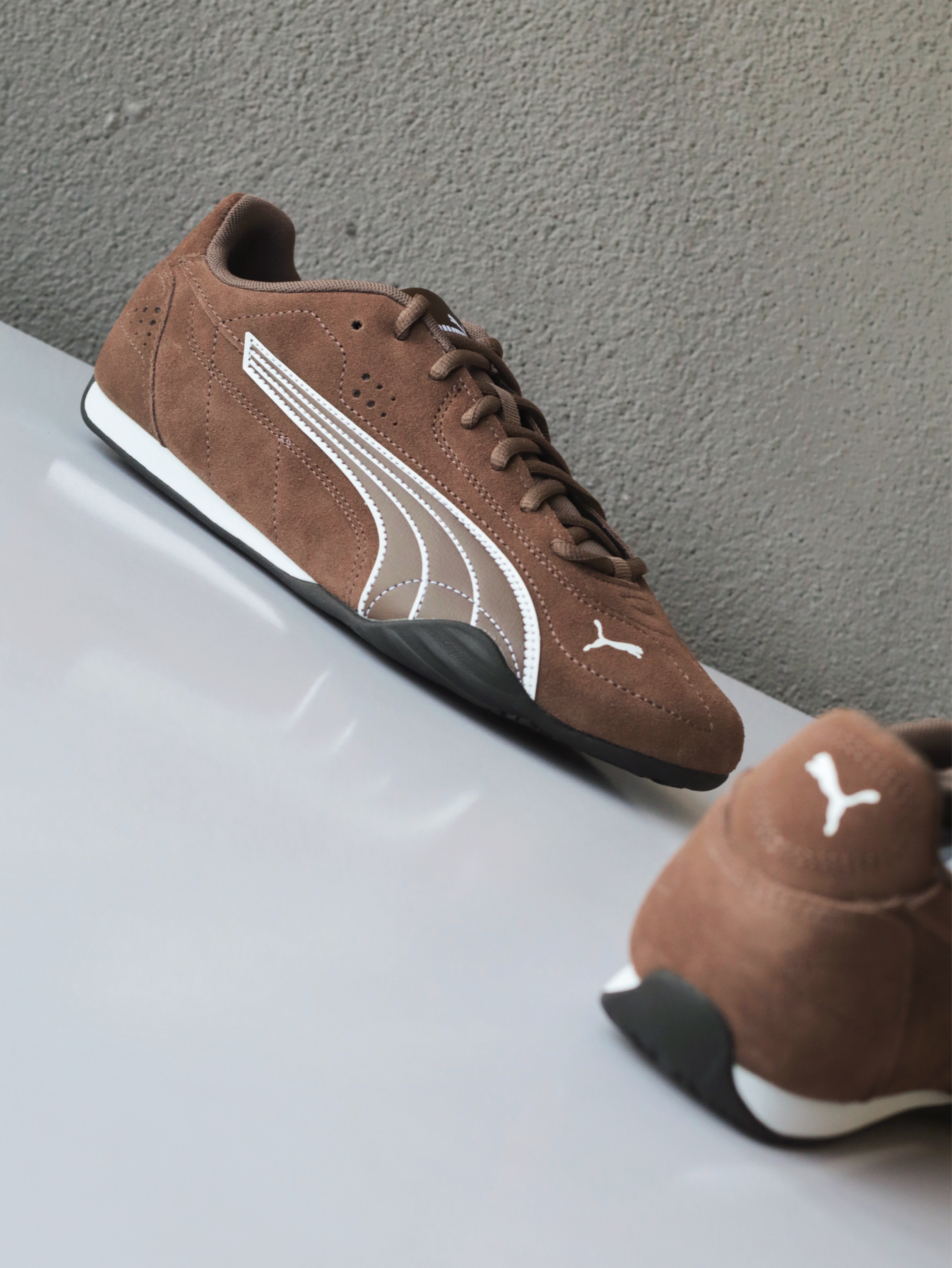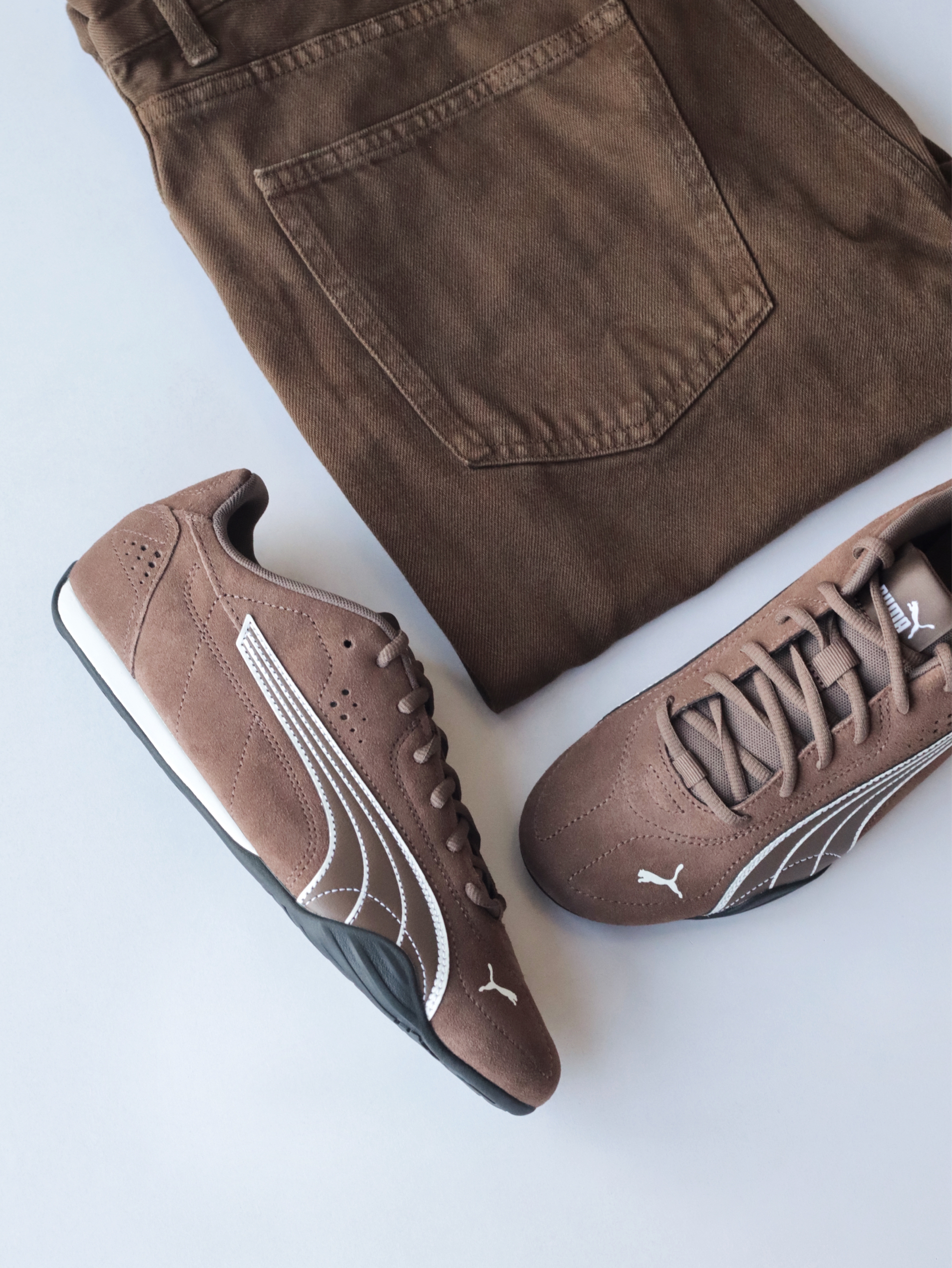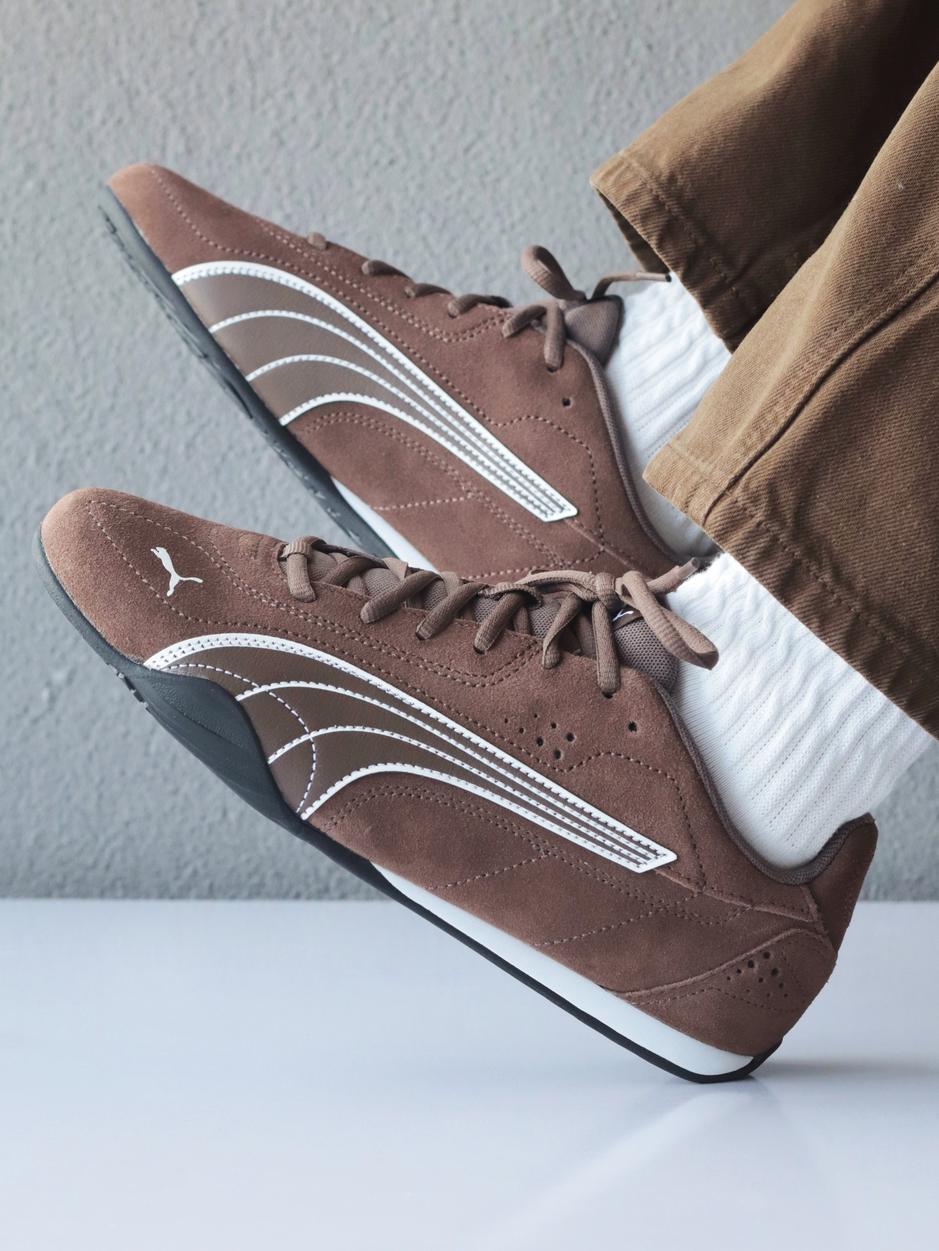 薄底鞋应该是时髦精的必备鞋款了吧~ 最近挖到一双美拉德好鞋! 来自Puma的Catch SD~ 麂皮材质搭配咖啡棕,质感柔软舒适! 复古的薄底设计,上脚hin优雅~ 鞋侧醒目的皮质跑道标,小logo点缀鞋头 简约高级又非常有辨识度! 尺码不偏,通勤逛街穿包帅的~