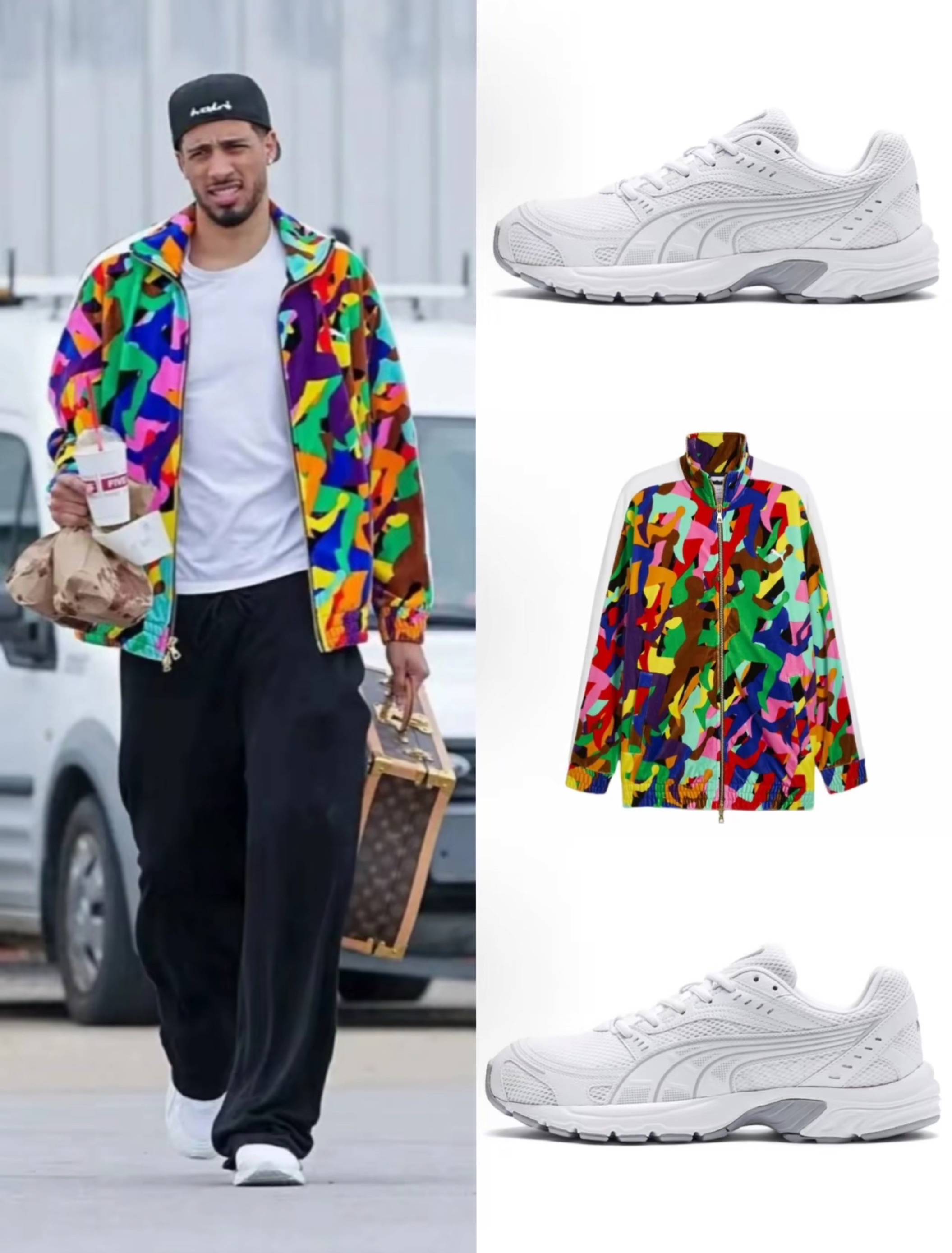 想打造街头潮范?看这波彪马穿搭!浅灰连帽衫配深蓝牛仔,蓝白彪马鞋点睛;印花 Tee 叠穿绿内搭,红彪马鞋添个性;彩色迷彩外套搭白T黑裤,白彪马鞋平衡色彩,轻松拿捏潮流密码~