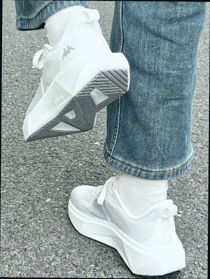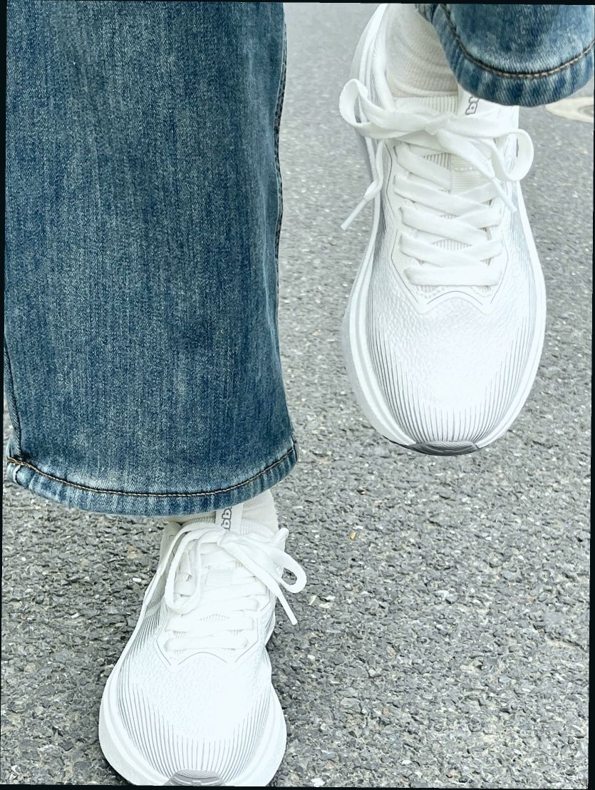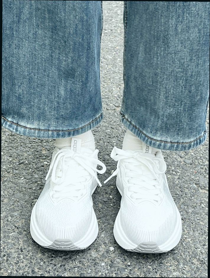 上脚第一感:轻盈包裹,透气不闷脚 初次穿上鹭羽白配色,最直观的感受是“轻若无物”——单只鞋仅约250g(参考同类跑鞋数据),织物网面+合成革拼接的鞋身像第二层皮肤般贴合脚面,前掌宽松不压脚趾,后跟泡棉填充扎实却不厚重,日常通勤半小时完全无新鞋磨合期的卡脚感。鞋垫的透气孔设计加分,盛夏35°C暴走半小时,脚底依然干爽,汗脚星人亲测无黏腻感。 通勤表现:稳如磐石,久站不累 作为日均步行1万步的社...