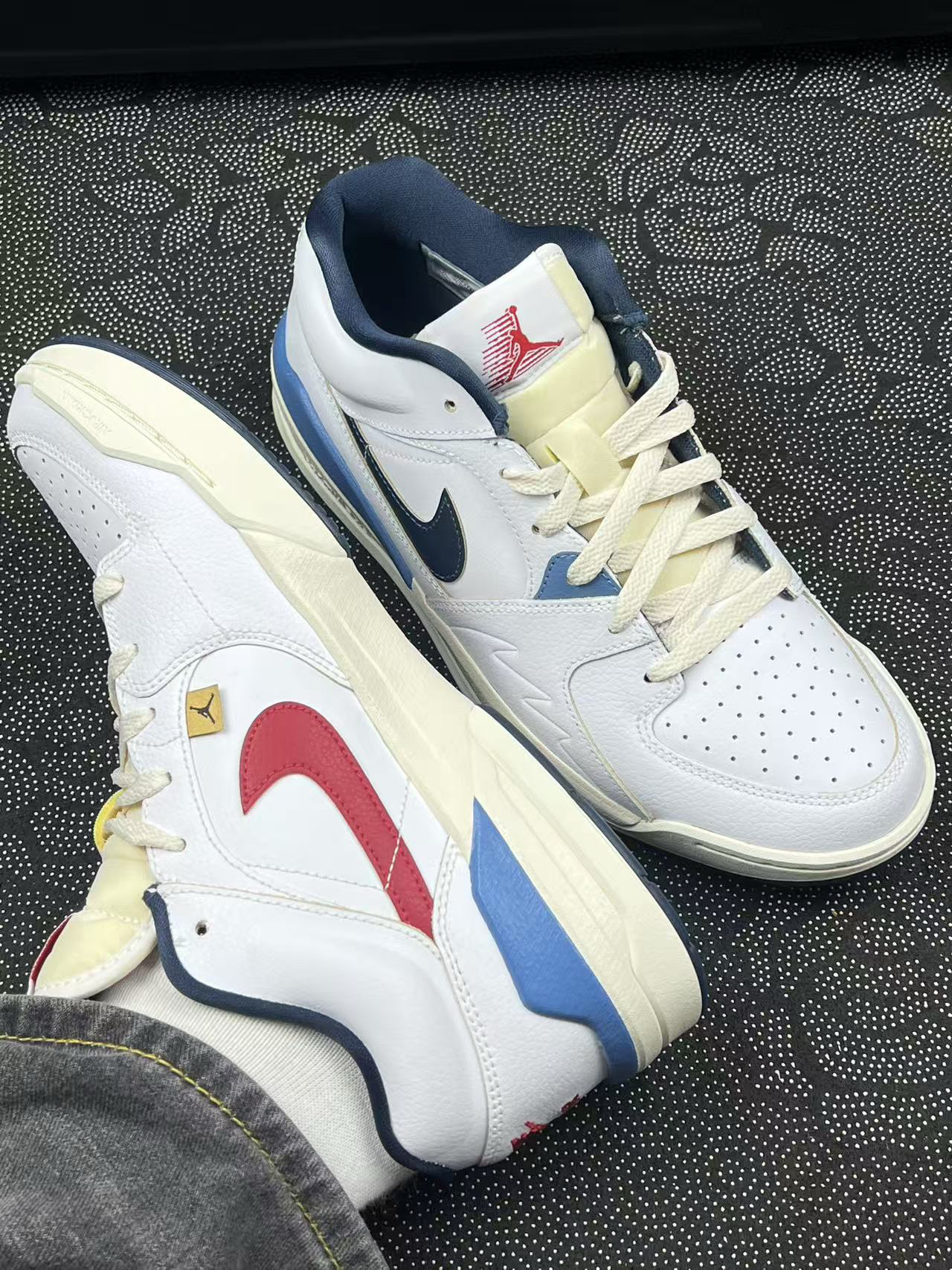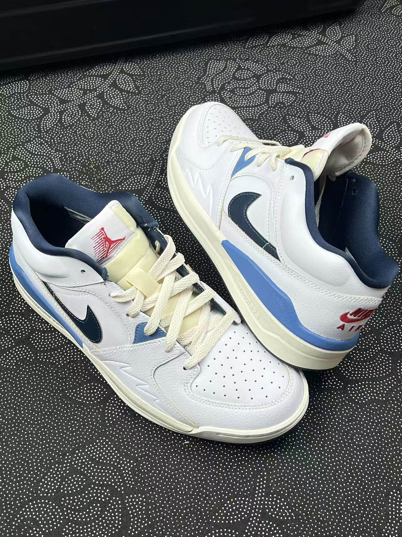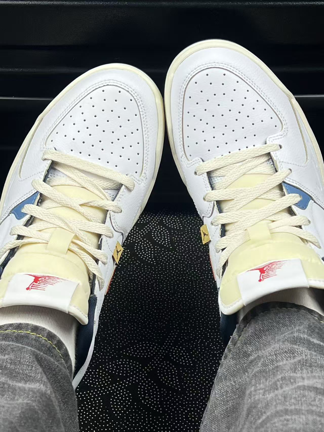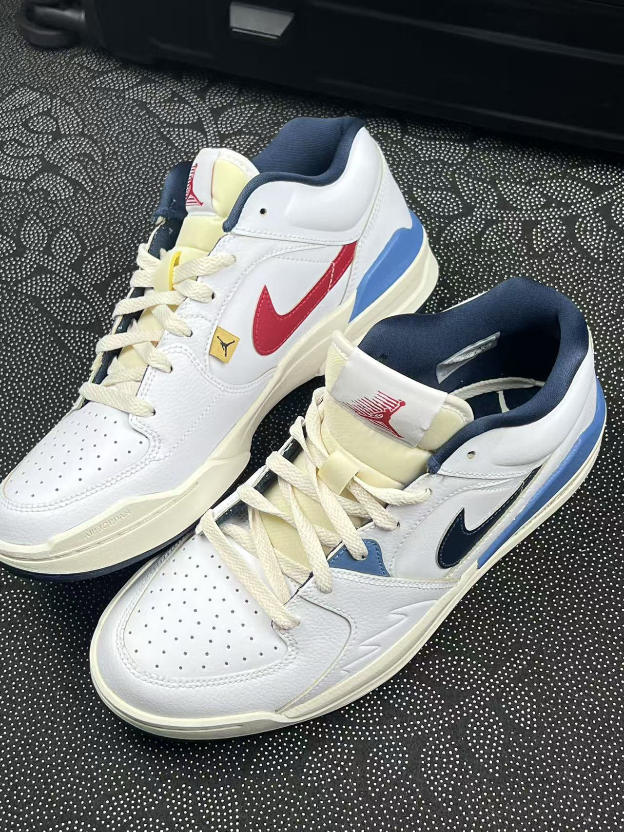 #职场新人穿什么 这双Air Jordan板鞋是我去年买的,当时就是觉得配色干净。 🔹 关于外观 鞋身是纯白的,鞋舌、后跟和鞋底边用了海军蓝,鞋带是有点做旧的米黄色,整体看起来很简单但又有细节。鞋侧的Nike钩子和后跟的标志都不大,不会太显眼,适合平时穿。 🔹 关于脚感 鞋面是软皮,刚开始穿会有点硬,但穿开之后就贴合脚型了。鞋底不算特别软,但走久了也不会累,我穿它逛街脚底不会...