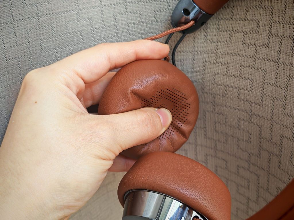 Era 7提供奶昔白、摩卡慕斯、胶卷黑、安可拉红的配色,镜面抛光外壳搭配蛋白皮耳罩,视觉上兼具复古胶片质感与现代简约风格。耳罩内径约6.5cm,可完全包裹普通耳型,蛋白皮材质触感柔软,长时间佩戴未出现压耳或闷热感。头梁部分采用自适应伸缩支架,支持5档调节,对不同头围都很友好。