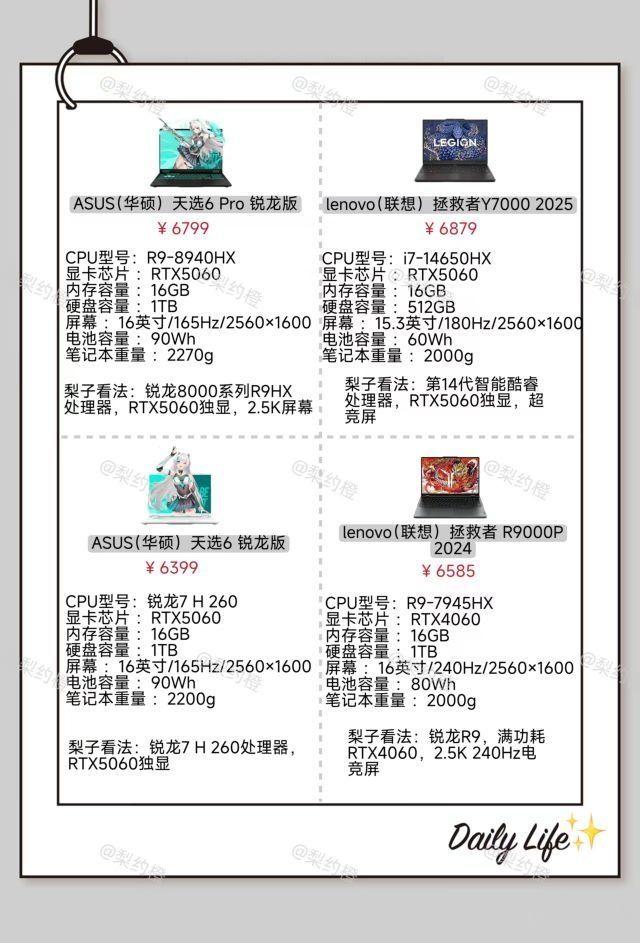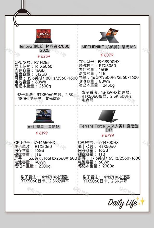 【6000 - 7000 预算游戏本挑选指南】,由用户 梨约橙 分享,来自云南。这是一篇来自识货社区的真实用户分享笔记。
