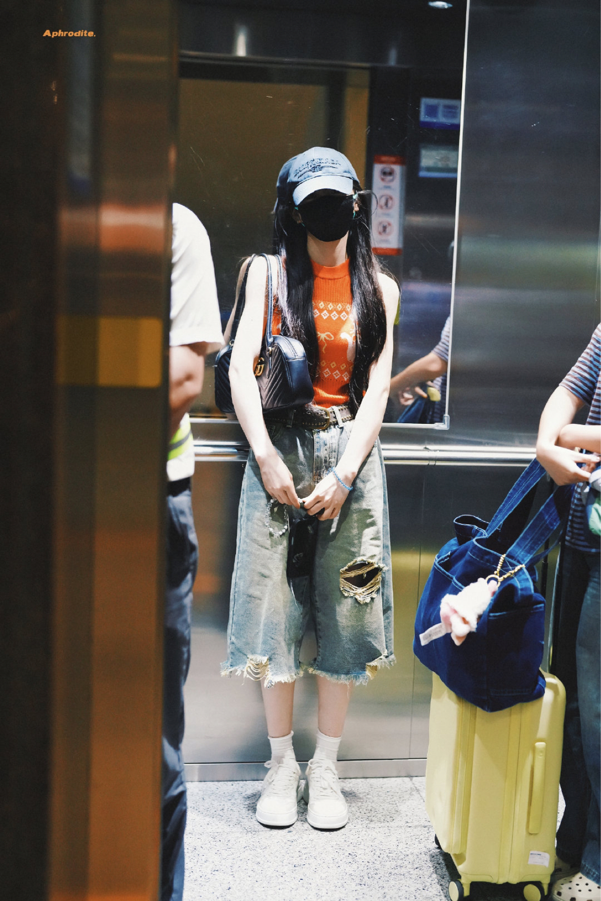 田曦薇更新了7月9日机场私服,活力橙🍊小田时髦度满满,五分阔腿裤下搭小白鞋,可爱的女孩子夏日就该这样穿搭! CR:@𝙈𝙮 𝘼𝙥𝙝𝙧𝙤𝙙𝙞𝙩𝙚. 上衣:ablueberry 帽子: Balenciaga 裤子:ablueberry 包包: GUCCI 鞋子: GUCCI
