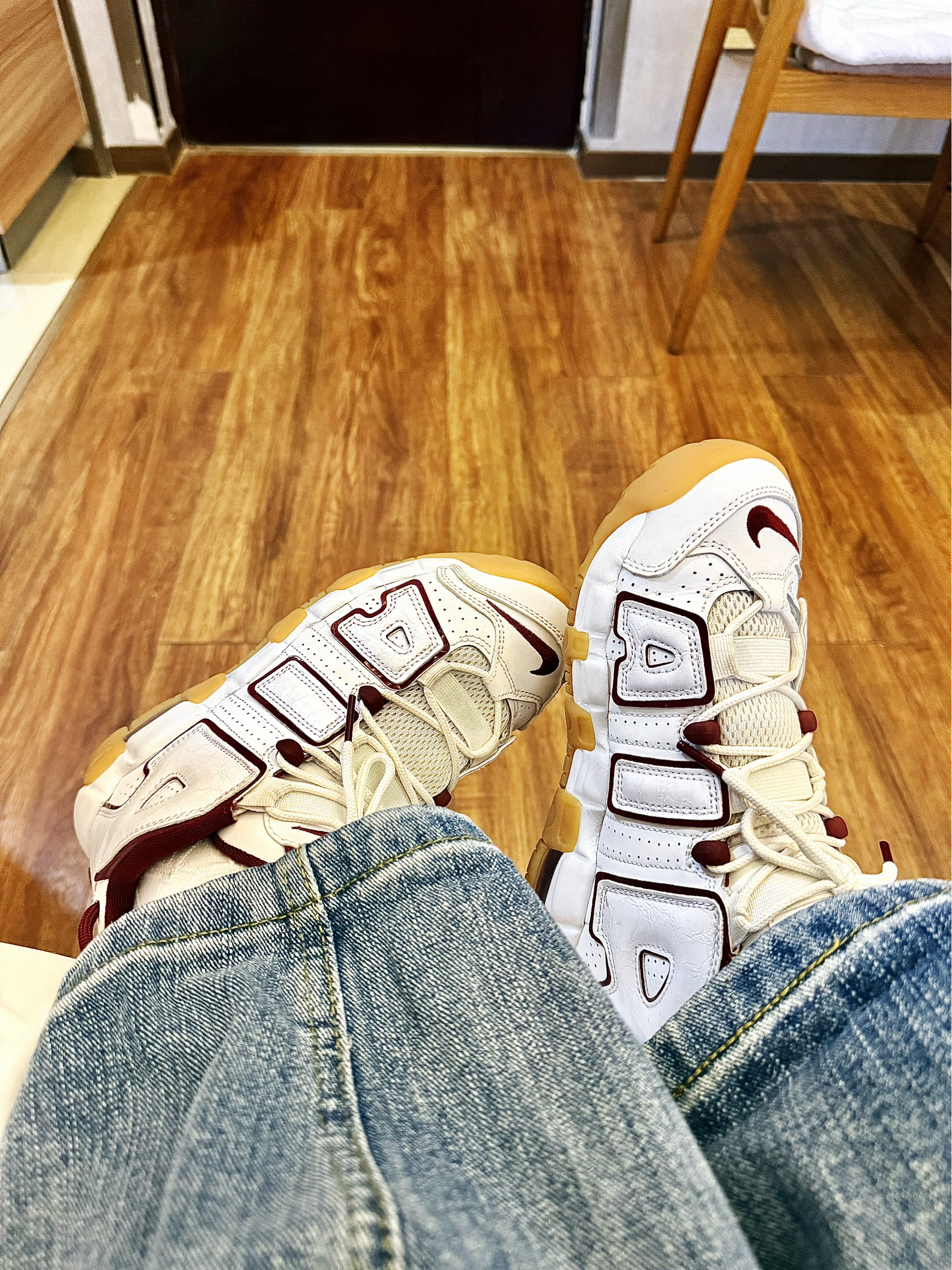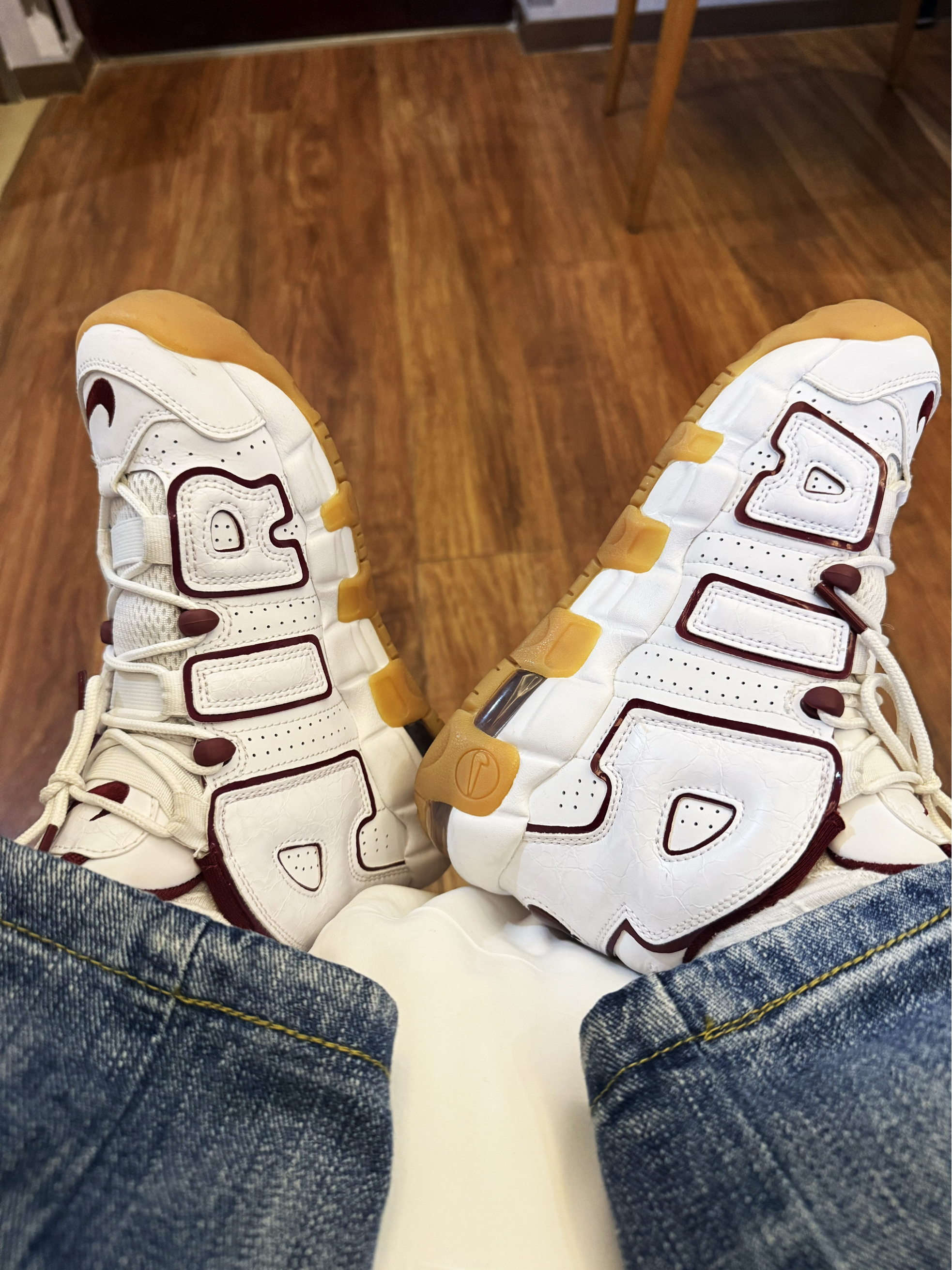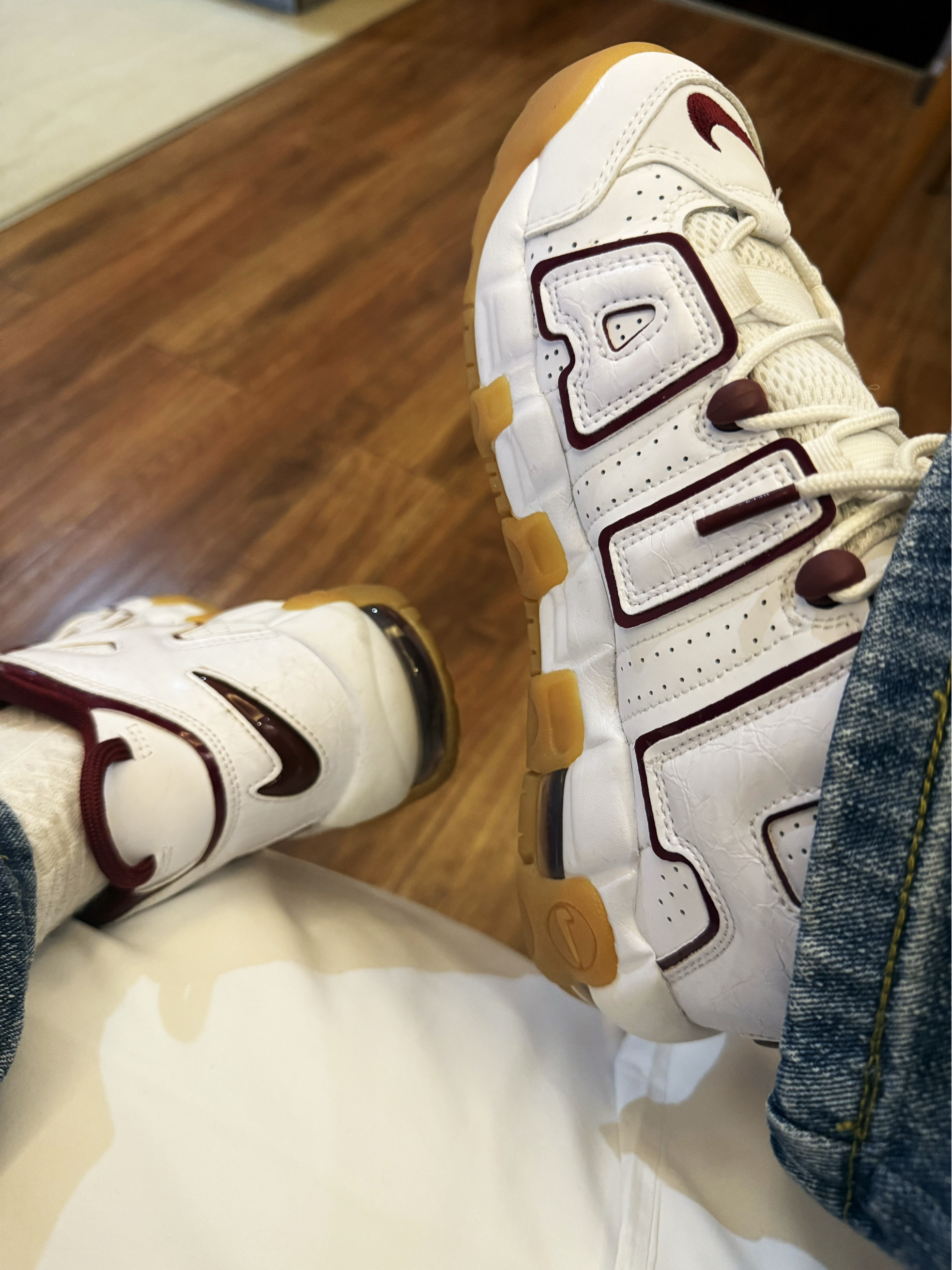本篇笔记关联了Nike Air More Uptempo 皮蓬大Air 缓震 复古 防水 百搭 防滑耐磨 运动休闲鞋 GS/白色/酒红等商品,为用户提供真实的使用体验和购买参考。