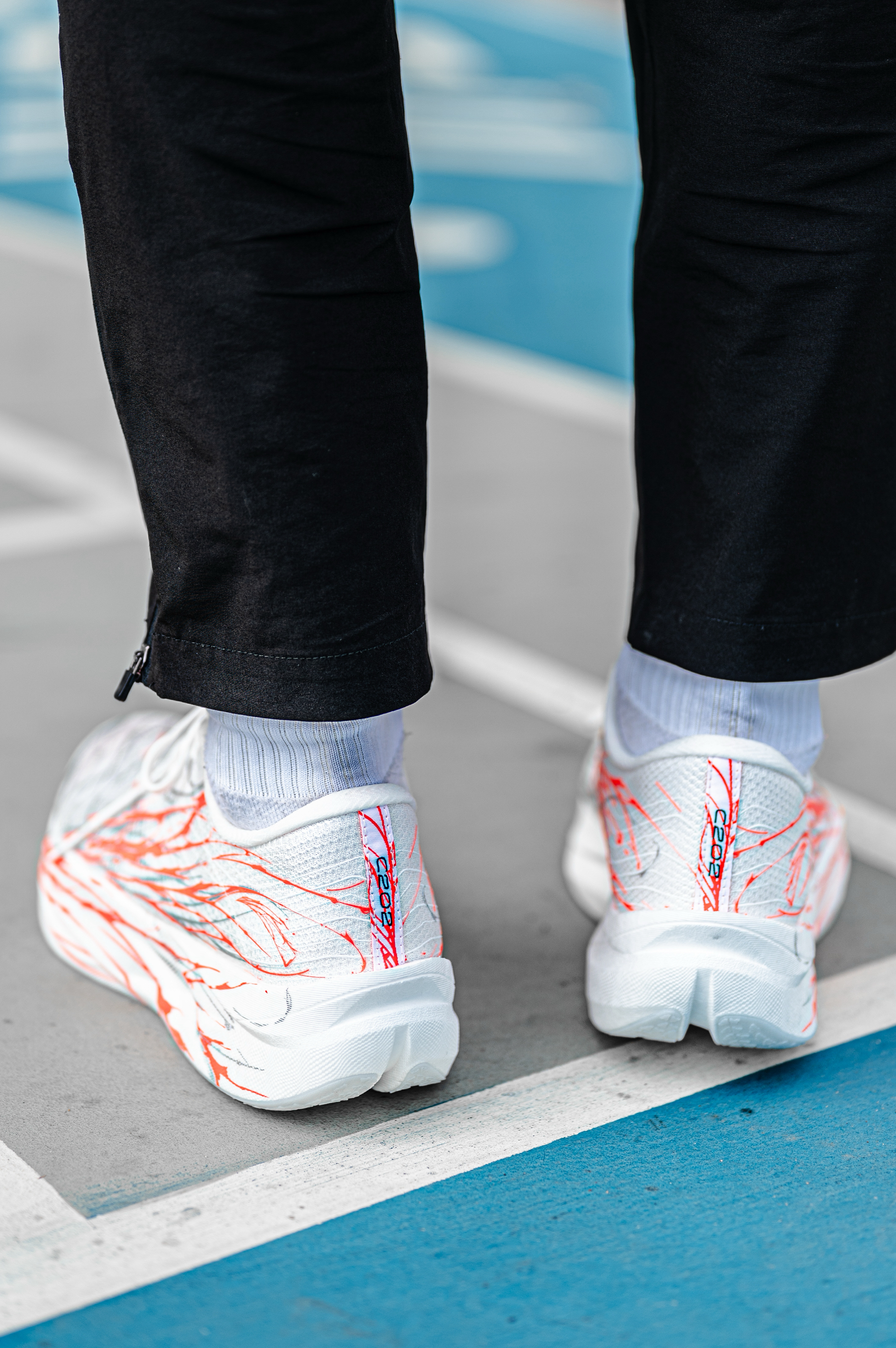 对于马拉松精英选手突破成绩我是蛮推荐这双近期穿着的C202 6代。 这款心跳配色采用白红色的色调,配色寓意上:PB不会永远只停留在一个时间,只要心跳不止,就可以继续突破! 而轻薄的鞋面给到出色的透气性,包裹性对于我这种宽脚依旧出色。 中底双层氮科技,脚感给到我63KG的体重反馈较软弹。