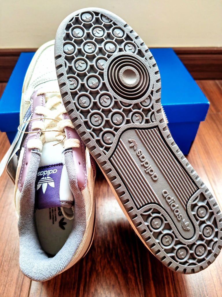 等了N久的阿迪达斯Forum终于到手!开箱瞬间直接被颜值锁死,这波复古配色简直把「温柔叛逆感」玩明白了👇 📦 开箱第一步:仪式感拉满 拆开时“唰”的期待感,像在解锁一份「90年代潮流盲盒」,复古DNA先动为敬~ 👟 颜值细节:每处都在戳审美! ✅ 配色杀疯了:米白皮革打底+浅紫鞋舌/条纹+棕色描边,温柔里掺了点酷,甜酷党狂喜! ✅ 材质藏惊喜:皮革+翻毛皮拼接,摸起来软fufu还抗...
