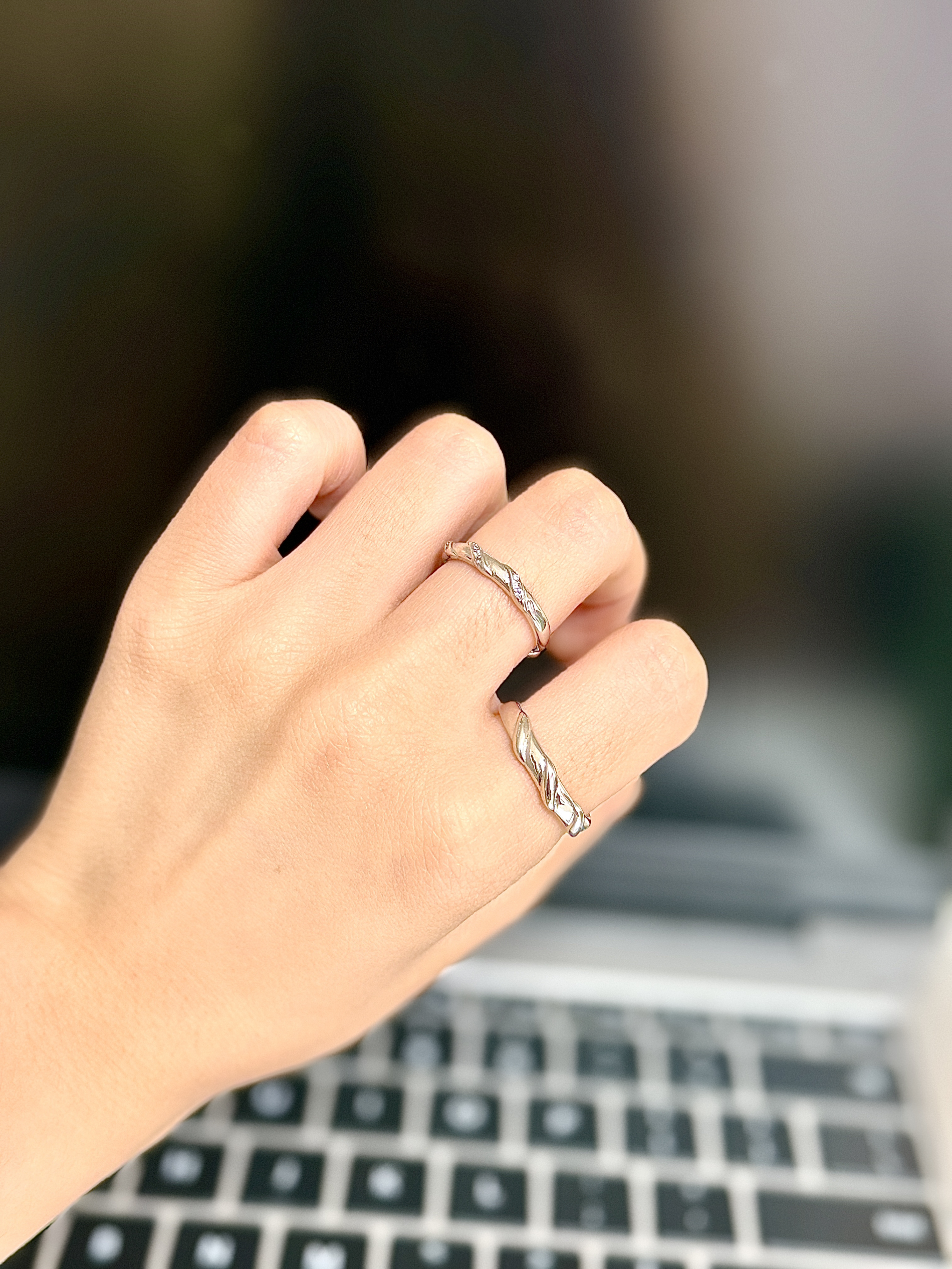 偶然发现盛岱的这款的对戒,瞬间戳中我~ 简单的扭纹设计,不浮夸,日常戴正合适,像我这种小肉手,也能轻松驾驭,不会觉得硌得慌。 银闪闪的,在阳光下还会反光,低调又有点小特别,每次看到都忍不住瞅两眼自己的手。 感觉不管是自己戴,还是和对象一起戴,都很有氛围感,就是那种藏在生活里的小美好,太对我胃口啦