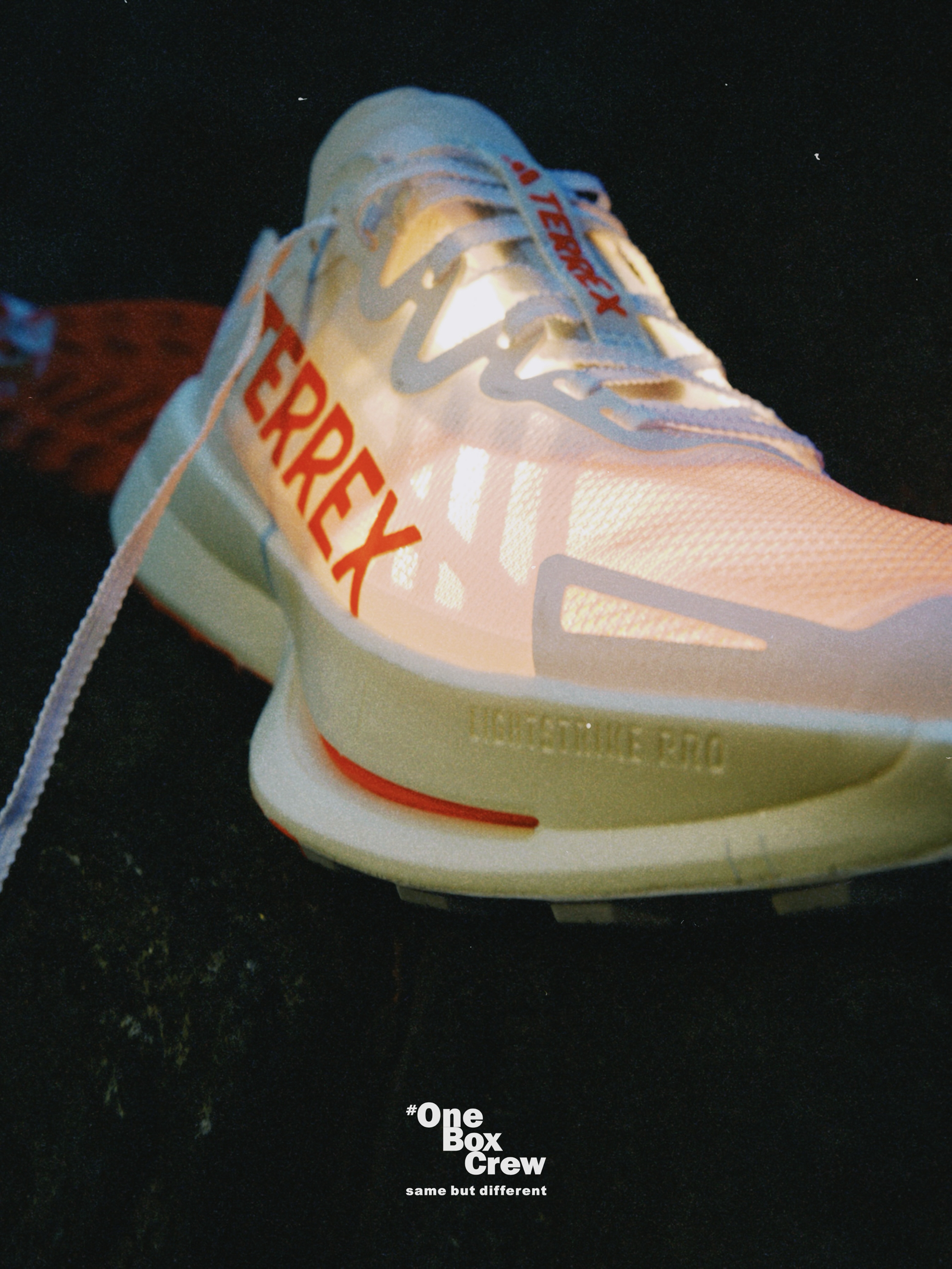 📦OneBoxCrew快开速递adidas TERREX Agravic大速流星系列啦!这双越野跑“速度利器”😎。 👟为啥值得冲?和顶尖运动员熬两年打造,让跑者轻装快跑。✨尤其“大速流星”,弧形滚动适配前掌跑法,中底双层LIGHTSTRIKE PRO加能量柱,马牌橡胶大底抓地强,工程编织鞋面轻便耐磨👍。