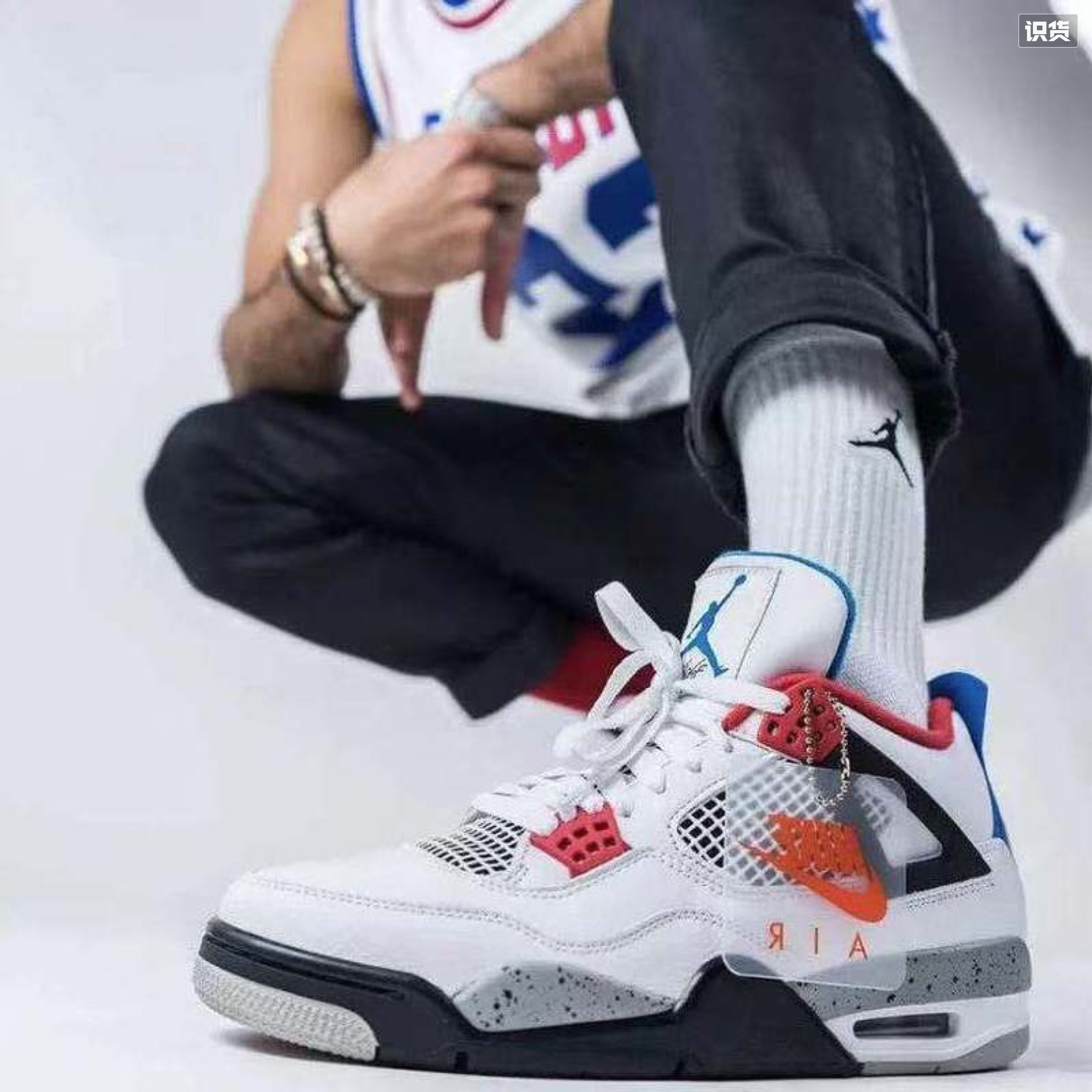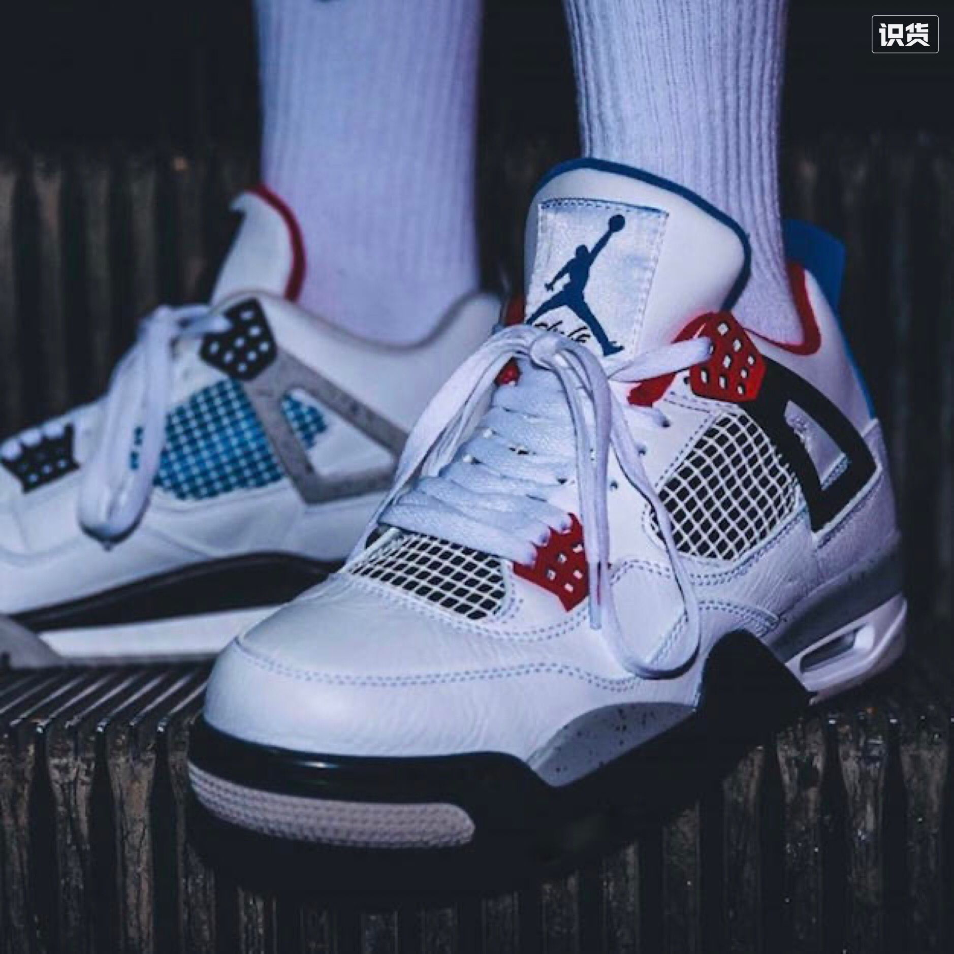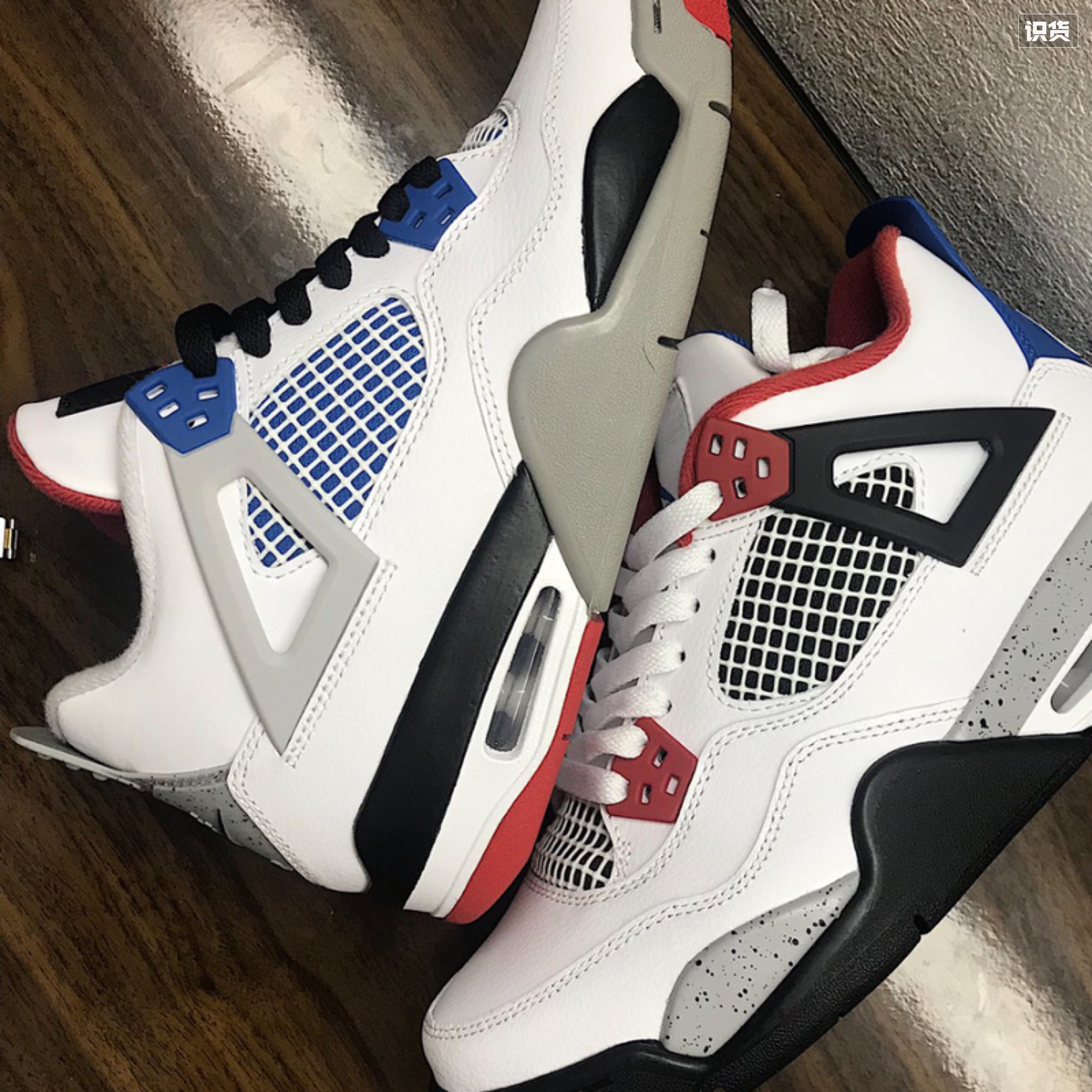 今日,AJ4 白蓝红配色,纯黑白灰鞋身红蓝点缀,真的复古味道,配色可人,除了夏天捂到爆炸,鞋子贼沉,最原始的配置Air sole坚如磐石,用料厚实,削微硌脚意外,还是一双不错的摆设鞋款吖😼😼😼