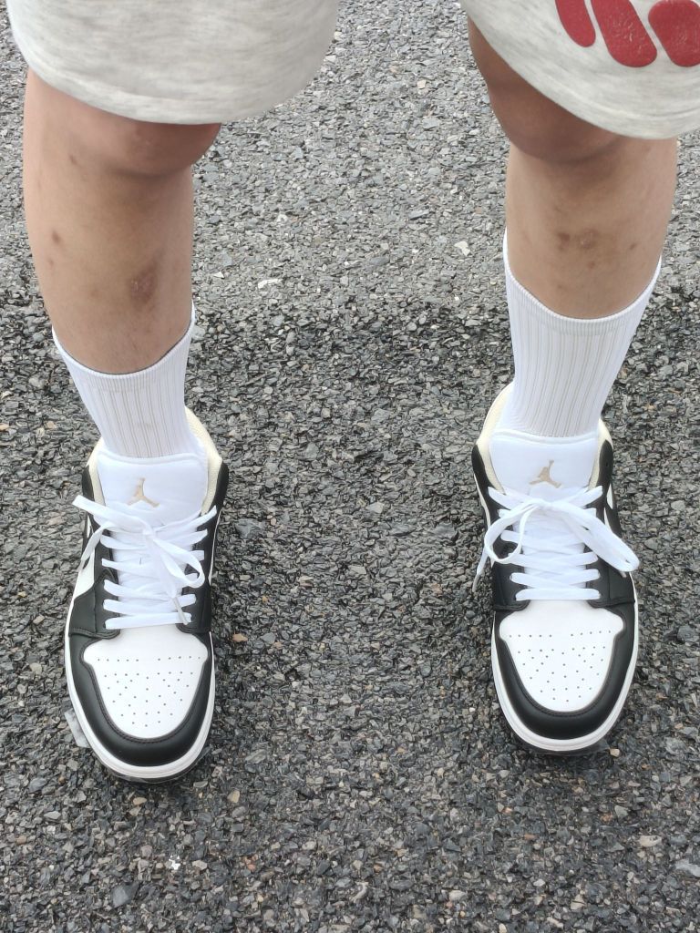 这是我入手的第一双AJ1啦,AJ1穿在脚上的感觉比较舒服,虽然没有踩屎感,但正常走路长时间你也不会觉得脚酸 穿搭的话,黑白黄的配色的话,个人建议裤子搭配浅色的,上衣的话倒是没有过多的要求,因为这个鞋子还是比较百搭的 总的来说,这双鞋子还是挺不错的,日常出行没有问题,但是穿起来的话可能会有点挤脚,尺码建议的话还是要大半码左右