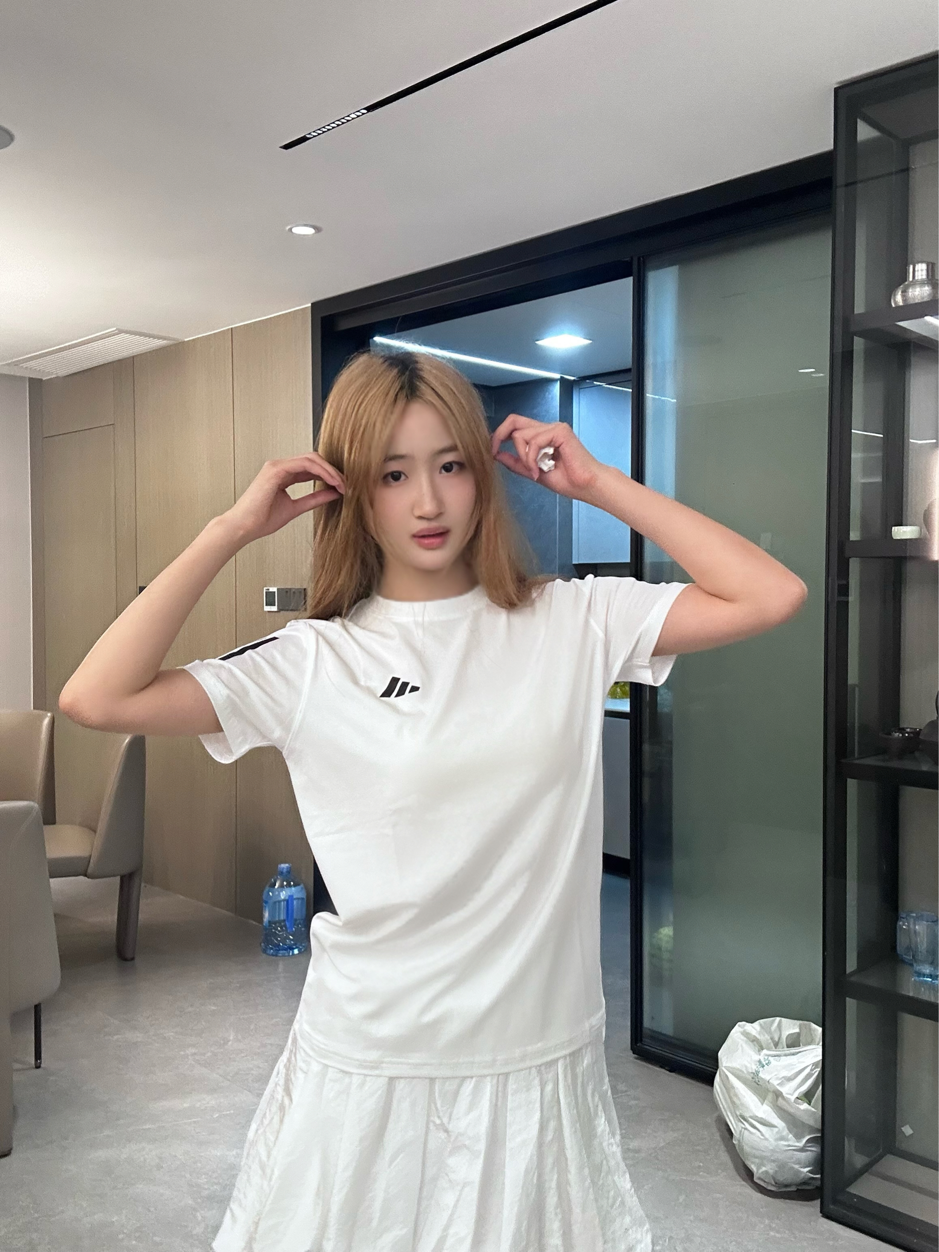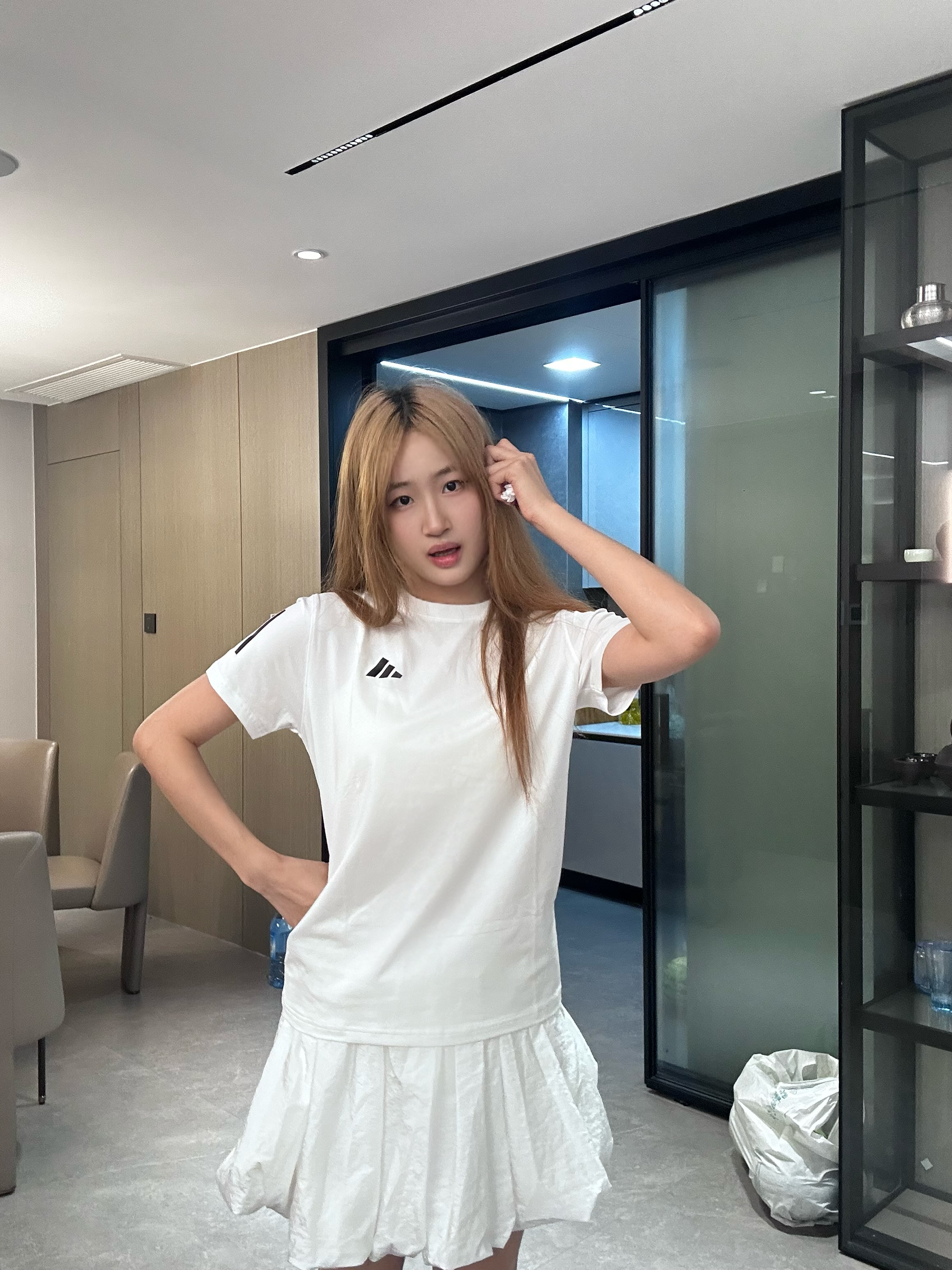 164 106 M码 新买了阿迪达斯的裙子和衣服!衣服很舒服很轻透!这个裙子蓬蓬的我真的超爱!很适合夏天青春的感觉😎
