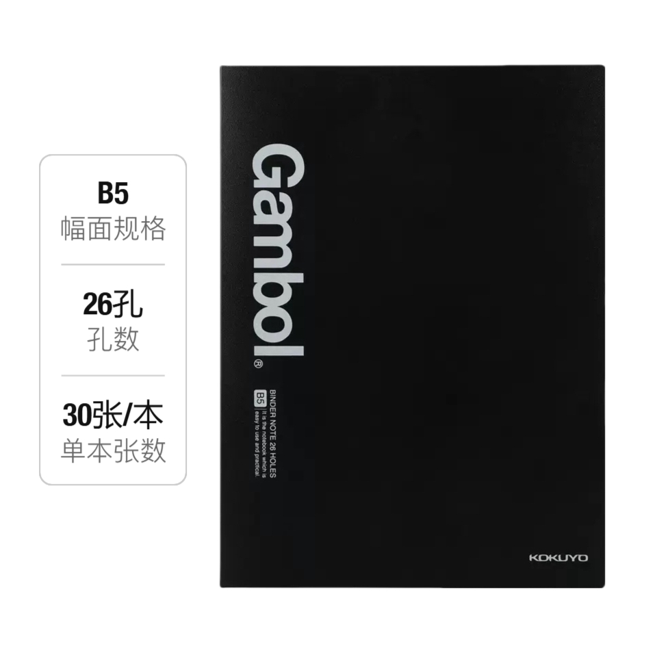 本篇笔记关联了kokuyo/国誉 Gambol系列 B5 横线 26孔活页本 30张/本可换替芯可拆卸外壳 黑色等商品,为用户提供真实的使用体验和购买参考。