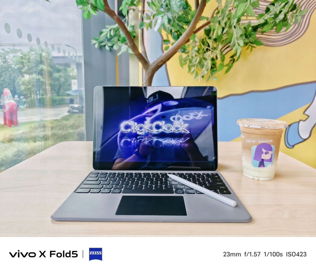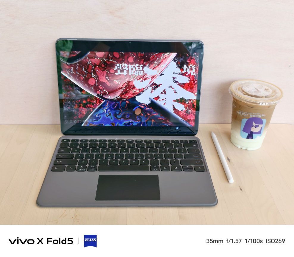 一天都在公司里工作,稍微感觉到有些疲累了,然后距离下班时间也快了,遂决定到公司附近的咖啡店里继续工作。 且都说打工人都靠咖啡来续命,这不,我就点了一杯“绿沙沙拿铁”,听说是新出的口味,喝了一口,冰凉沙沙感,立马有活力了。 接着,拿出我的vivo Pad5 Pro,再装备上vivo Pad5 Pro智能触控键盘和vivo Pencil3触控笔,再找个空位坐下来,立马就是一个现成的工位了,而继续工...