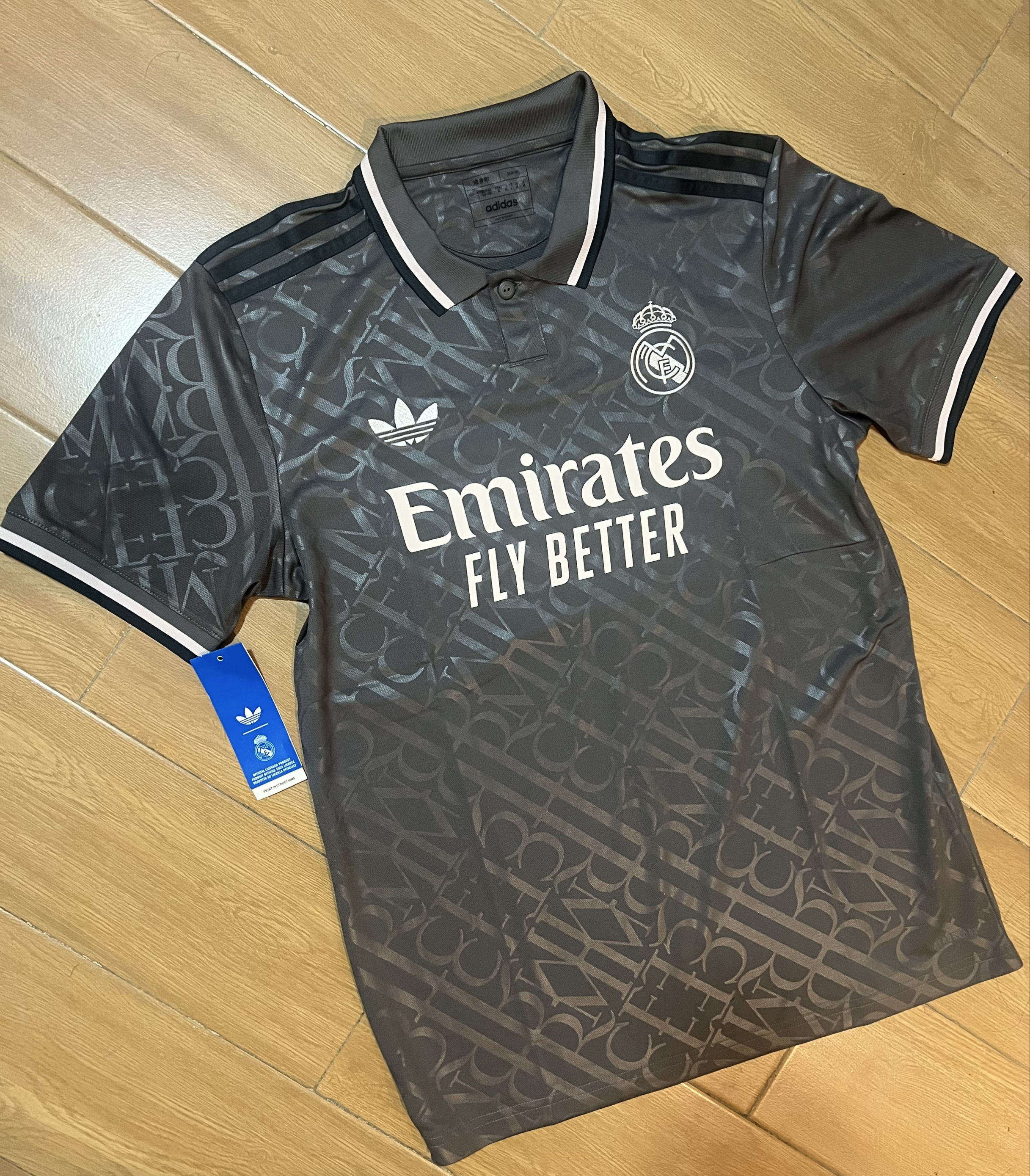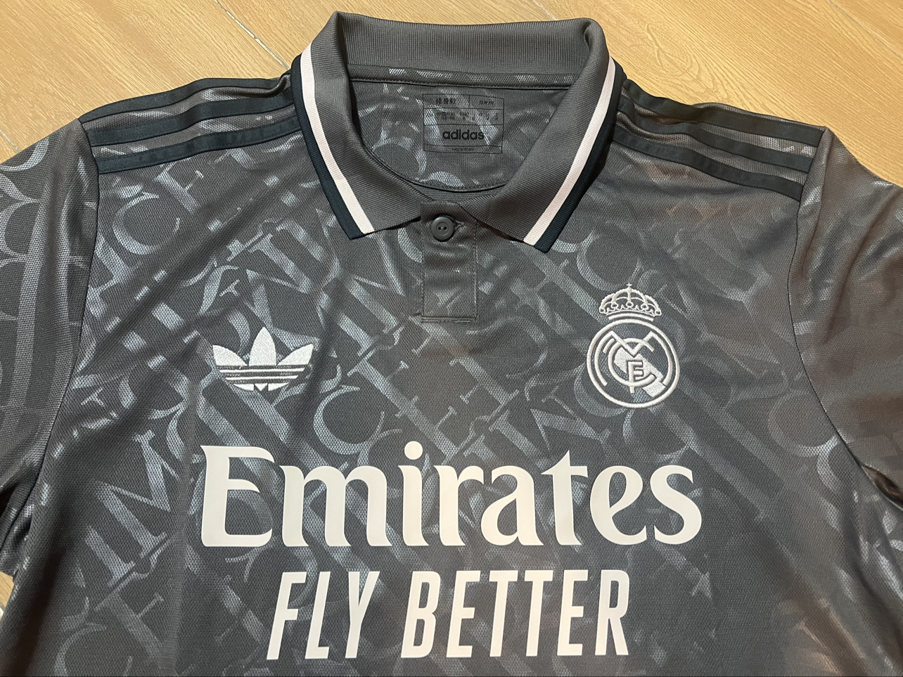 #阿迪达斯球衣 入手adidas originals SS24 REAL MADRID球衣 设计:论客场球衣款式数量和设计,皇马和尤文一定是阿迪前二。字母系列,灰白黑配色,三叶草☘️品牌logo和肩上黑色三条杠。RMCF暗纹纹理45°组合,袖口和衣领用黑白收边。队徽和三叶草均是刺绣非烫印,手感不错。背面极简。版型:L码合身,衣袖衣长中等,盖半臀。质感:面料阿迪球迷版平均水平,透气舒适性还行。价格...