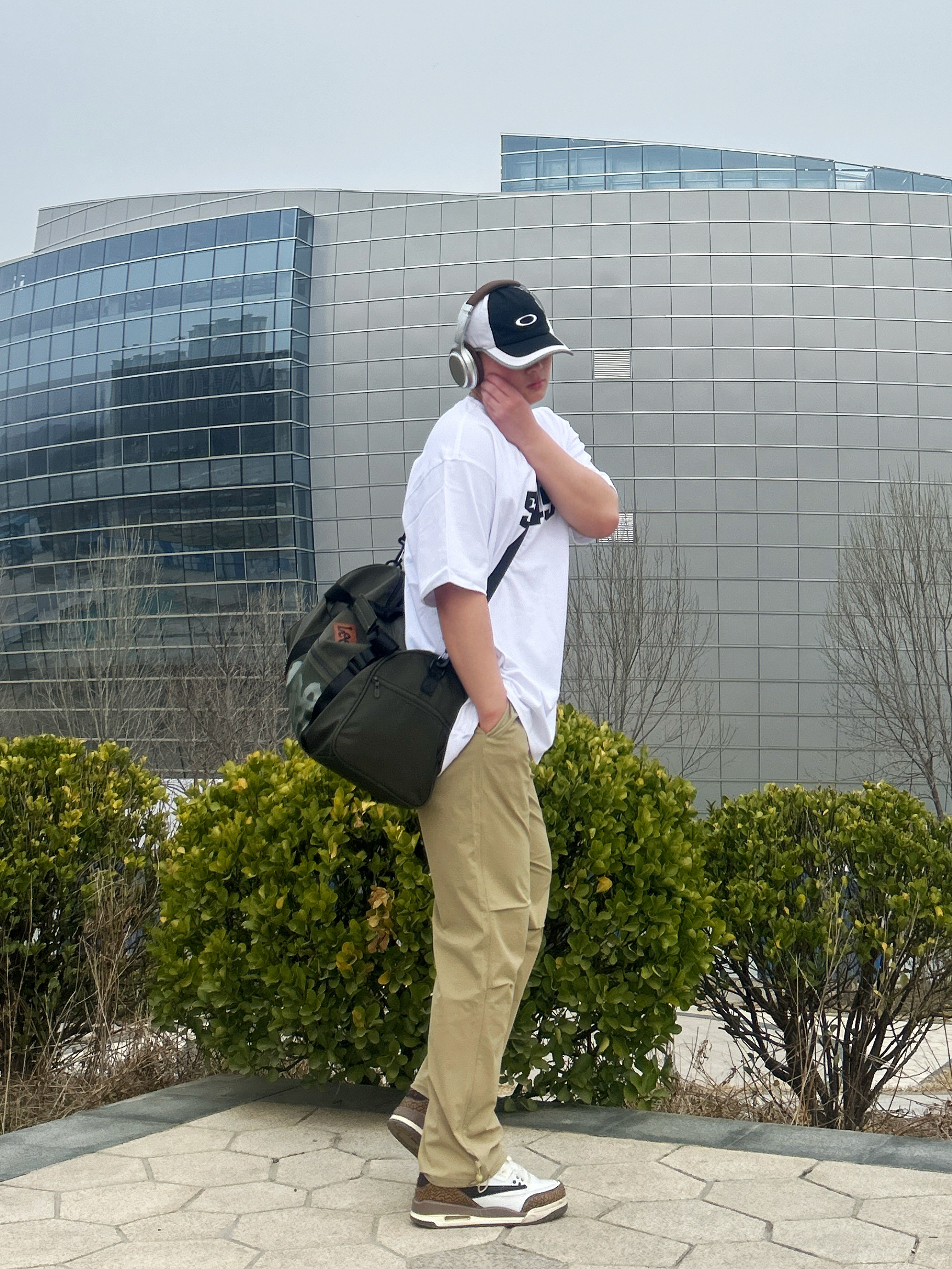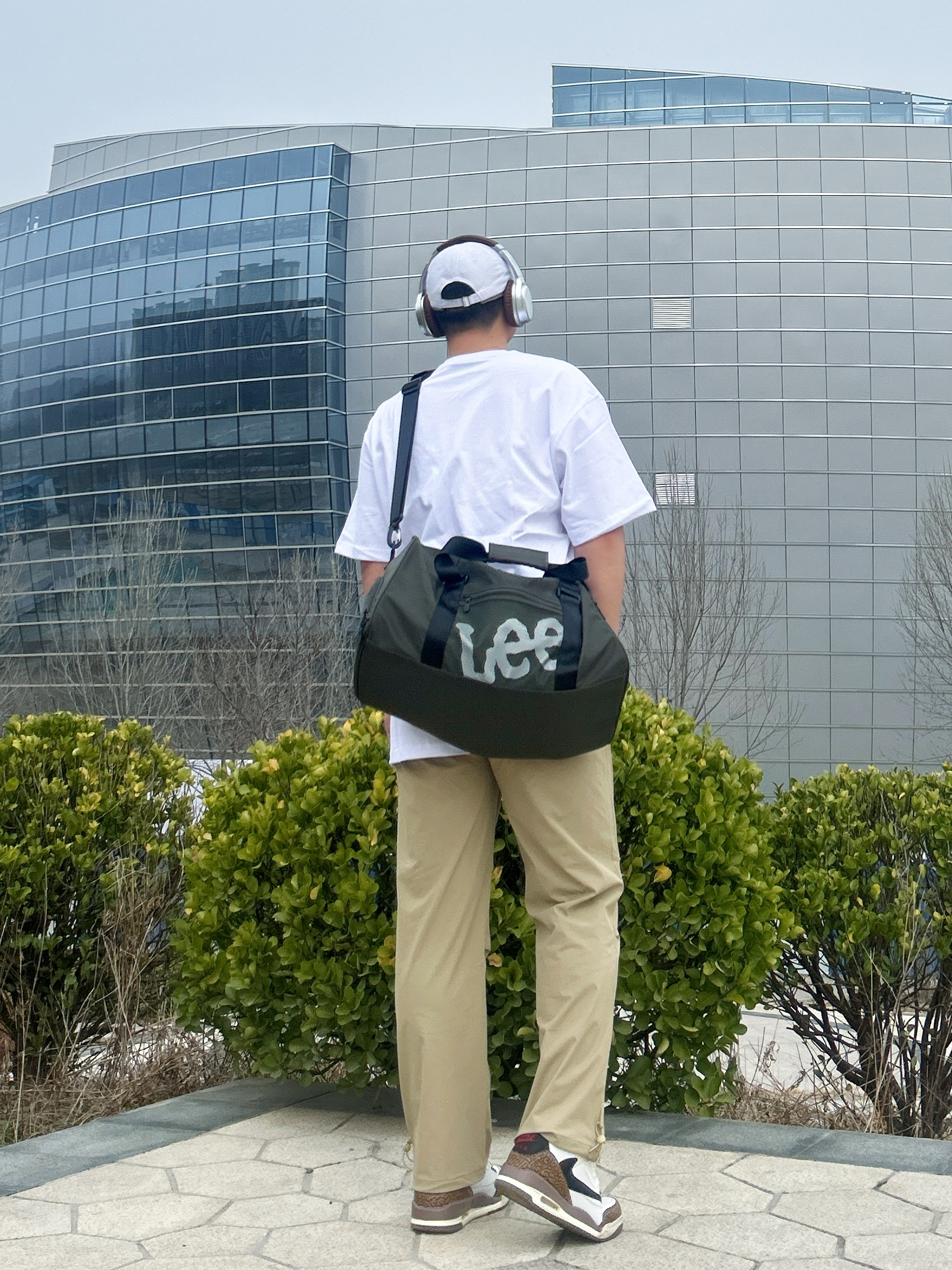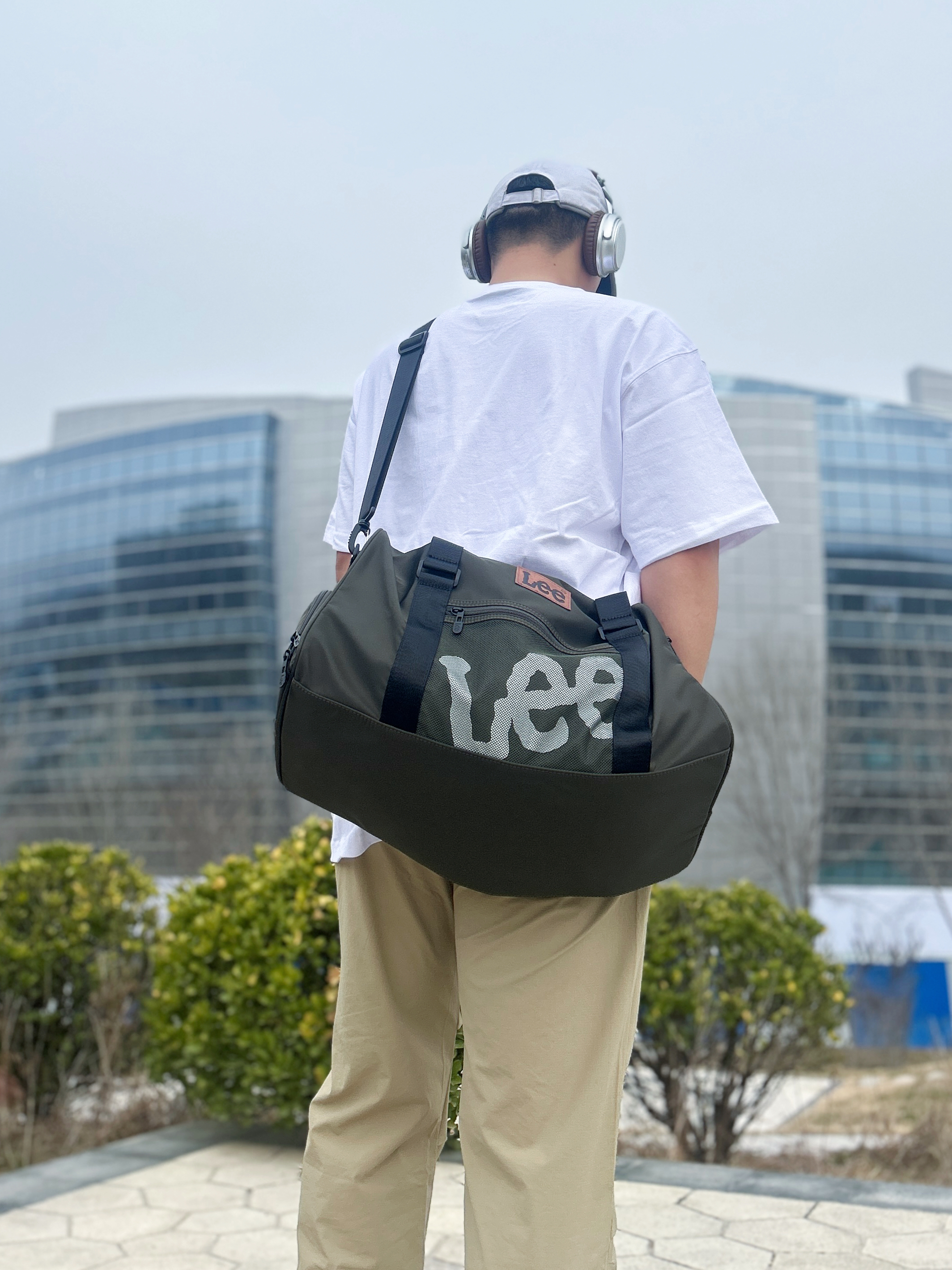 今天出游背的这款运动健身包 Lee 里面还有独立鞋仓的设计 容量大健身装几件衣服没问题的 而且网状的设计面感 平时运动旅行都可以戴 上面搭一件休闲的T恤 下面一条卡其色的休闲运动裤 开春的通勤穿搭 学生党的性价比斜挎包 #lee健身包