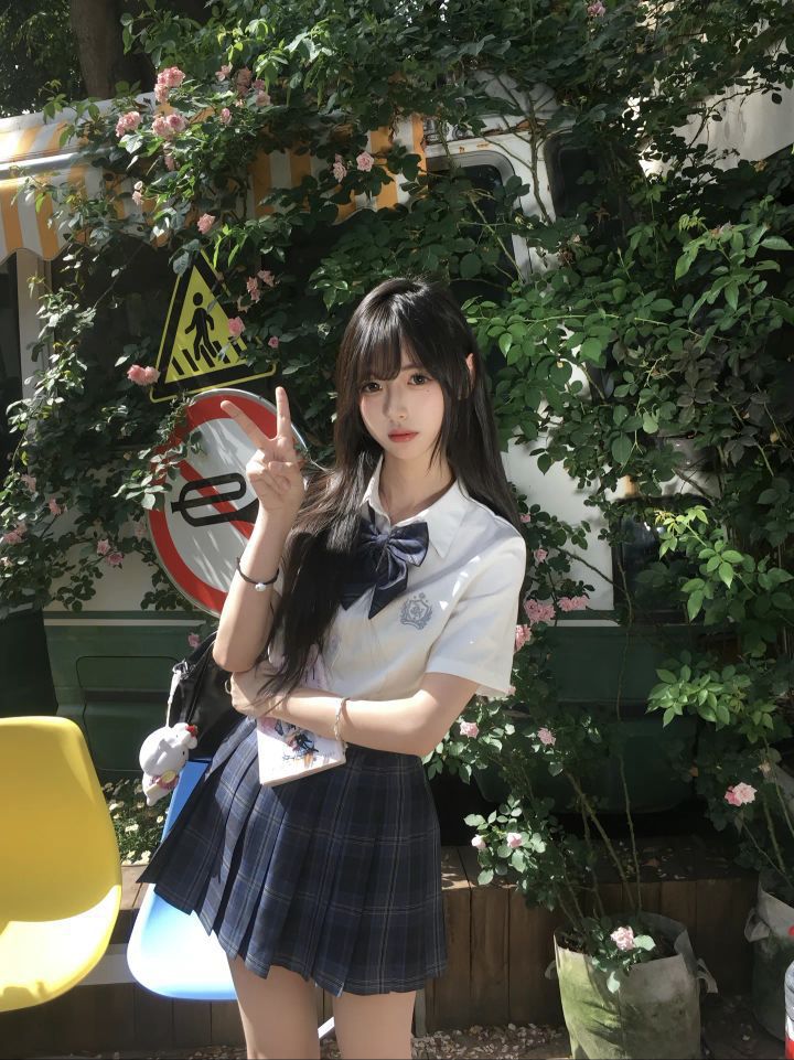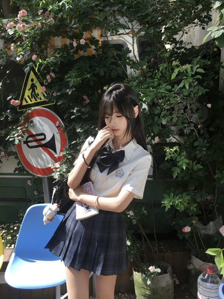 谁懂啊!这套JK穿搭把校园清甜感拿捏死了✨ 👔上衣:基础白衬衫+深色大领结,学院氛围直接拉满,领结一系,乖乖学妹味儿说来就来~ 👗格裙:深蓝色格纹百褶裙,经典又显腿长,和衬衫适配度100%,走路带风的灵动,超绝! 旁边的小水壶、挂饰增添生活感,在这种绿植环绕的街边拍照,日系校园剧女主味儿拉满📷 日常出街、校园通勤都适配,甜妹速抄作业! #JK穿搭 #校园风 #清甜少女
