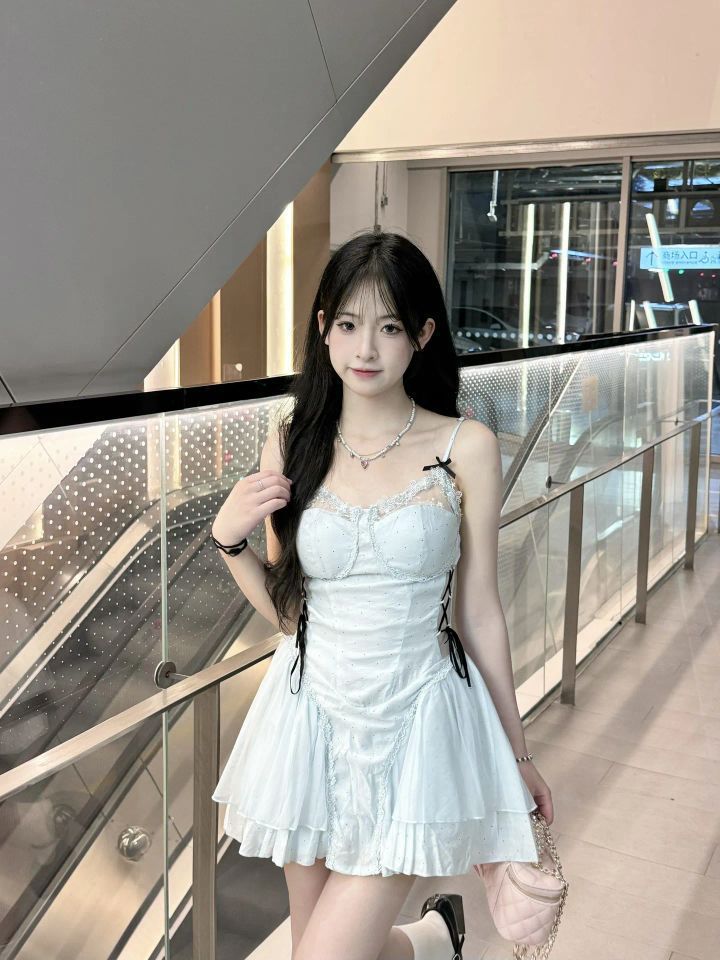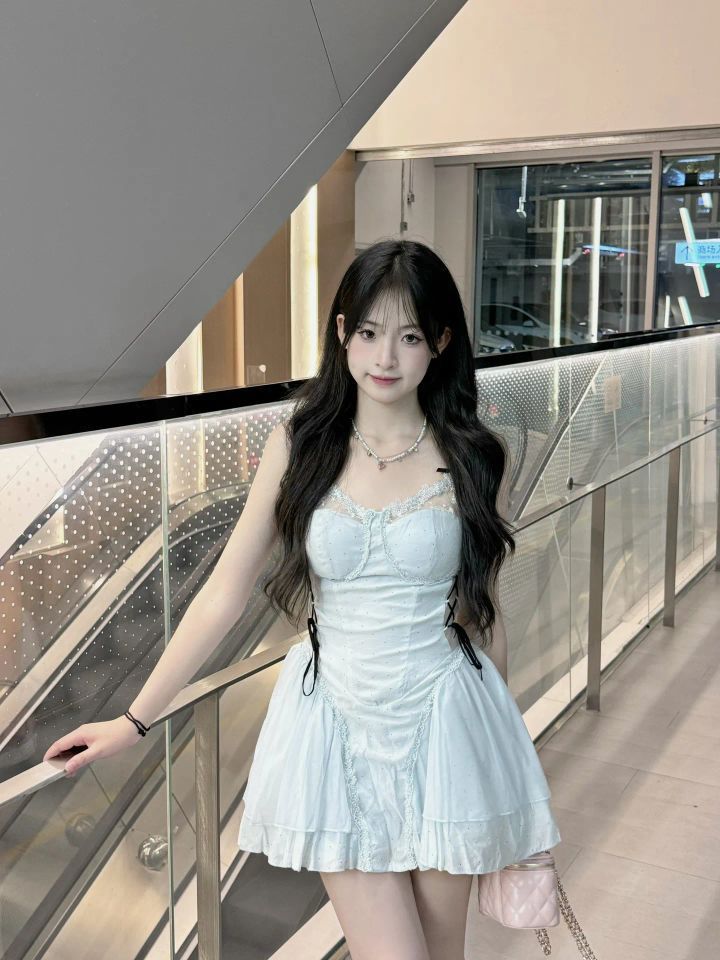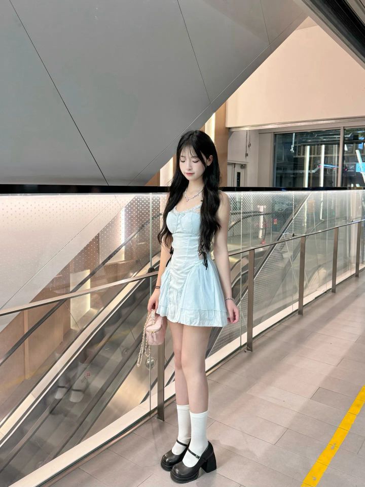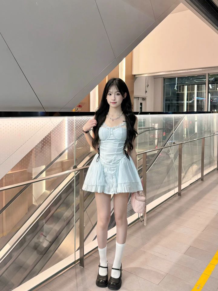 谁懂啊!这套穿搭把清甜感拿捏死了✨ 👗裙装:浅蓝色吊带收腰裙,自带纯欲滤镜,收腰设计+蓬蓬裙摆,可爱又显身材,像把蓝天穿在身上~ 🧦袜子:白袜+厚底玛丽珍鞋,甜酷平衡感拉满,和蓝裙适配度100%,把氛围感焊在身上💯 在商场这种现代场景拍照,清甜大小姐味儿直接拉满📷 逛街、约会穿这套,回头率爆棚! #清甜穿搭 #少女感 #商场拍照