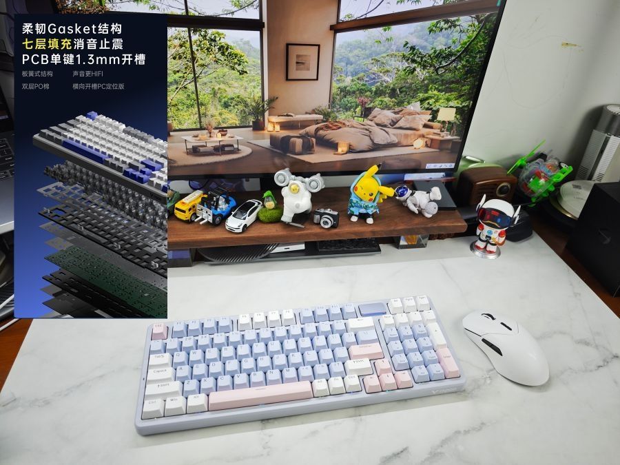 本篇笔记关联了Rapoo/雷柏 V700DIY-98 三模 机械键盘 97键 七层消音填充 PBT键帽 白蓝等商品,为用户提供真实的使用体验和购买参考。