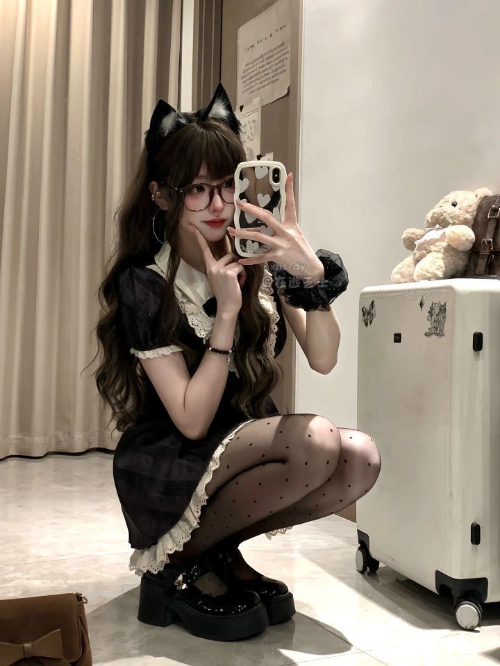 谁懂啊!这套猫系Lolita穿搭直接杀疯💥 又甜又飒的风格,出街被追着问🔗 👗 穿搭拆解 ✨裙装:经典黑白配色Lolita裙,蕾丝花边+蓬感裙摆,甜妹氛围感拉满,又带着点小俏皮~ ✨配饰:猫耳发箍直接封神!一秒变身喵系少女🐱 波点丝袜+厚底小皮鞋,甜酷平衡感拿捏,走路都带风~ ✨氛围加持:随手搭个毛绒小熊,软萌感up!行李箱当背景都能拍出大片感,出片率100%✅ 💡 搭配小心机 想...