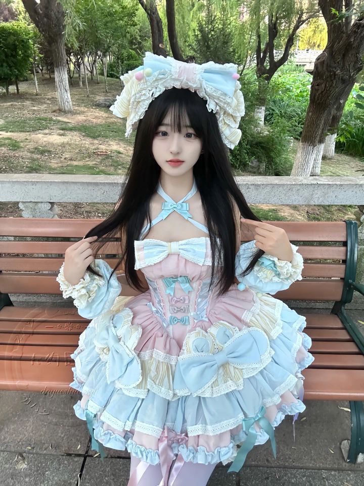 宝子们,谁能拒绝这么一套甜美的洛丽塔穿搭啊!往公园长椅上一坐,就是童话里走出来的公主👸 ,被追问N次🔗 穿搭解析 裙装:浅蓝与粉色交织的洛丽塔裙,层层叠叠的裙摆搭配大量蝴蝶结、蕾丝元素,甜美又梦幻,瞬间让人少女心爆棚。 头饰:同色系的超大蝴蝶结头饰,精致又吸睛,和裙子完美呼应,戴上它,洛丽塔氛围感直接拉满。 细节:颈间的蝴蝶结颈饰等小细节,增添整体造型的精致感,让整套穿搭更加完整。 适...