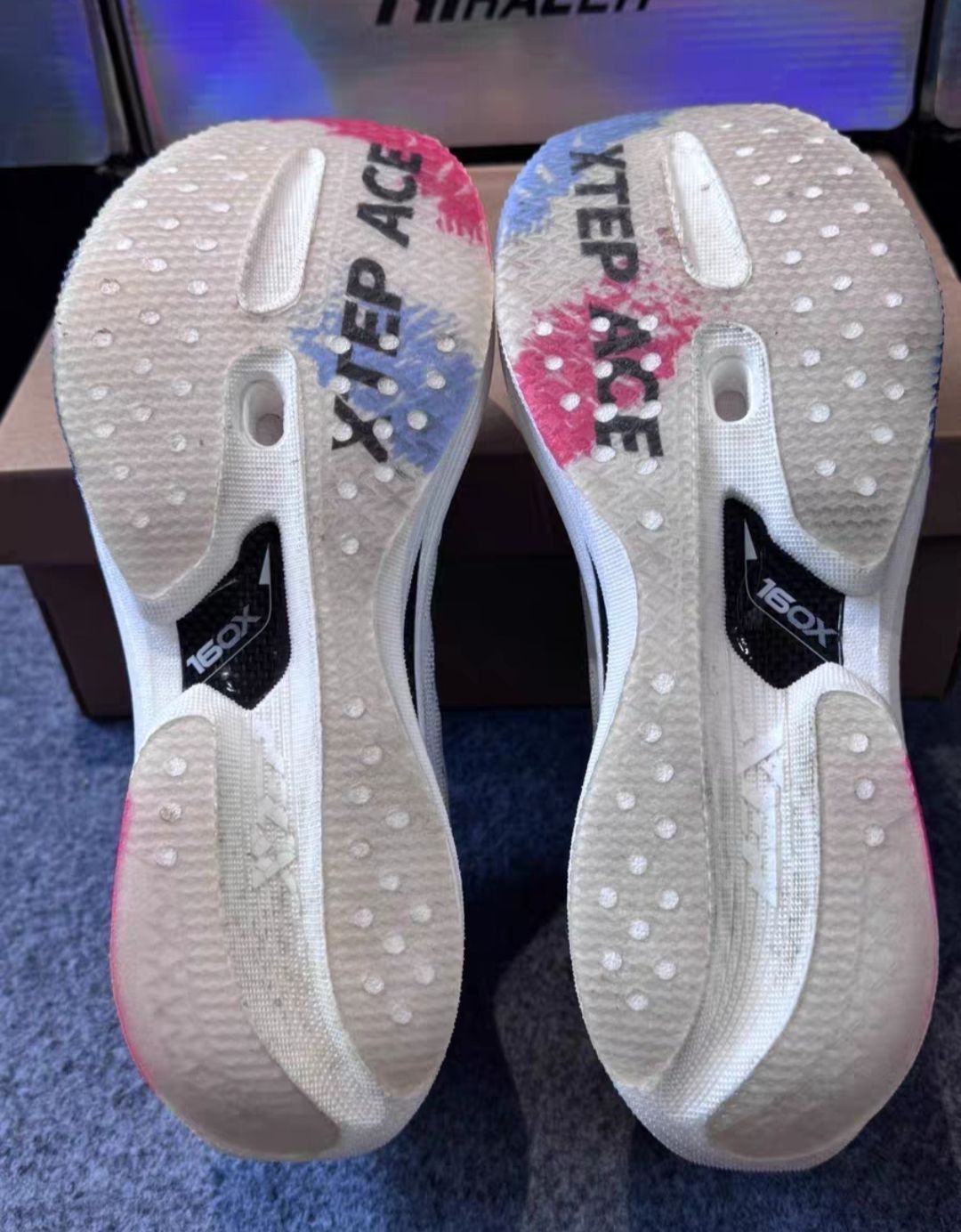 特步160X 5.0 这双鞋👟,定位是一双综训鞋,带有碳板,但是推进力几乎等于无,脚感偏软,跑场地十分的爽,当然也能拿来跑公路,十分的稳,外翻的人也可以拿来穿,而且作为一双训练鞋它是贼耐磨的,真的很香,这个价格五开😊