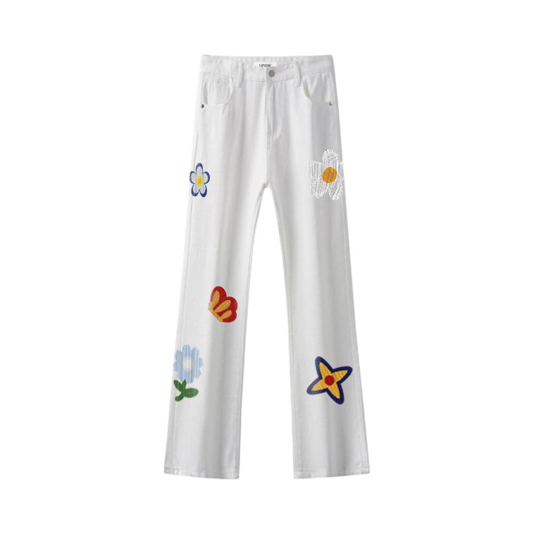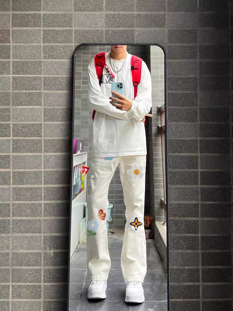 这条UPXIW牛仔裤直接封神! 花卉印花太戳我审美了,复古又带点趣味,小众设计完全不用担心撞衫! 高街废土风拿捏得死死的,走在路上回头率爆表 直筒微喇版型特别藏肉,胯宽腿不直的问题全隐形 高腰线设计瞬间拉长身材比例 面料软糯亲肤,夏天穿不会闷汗,厚度也刚刚好 图源网络侵删
