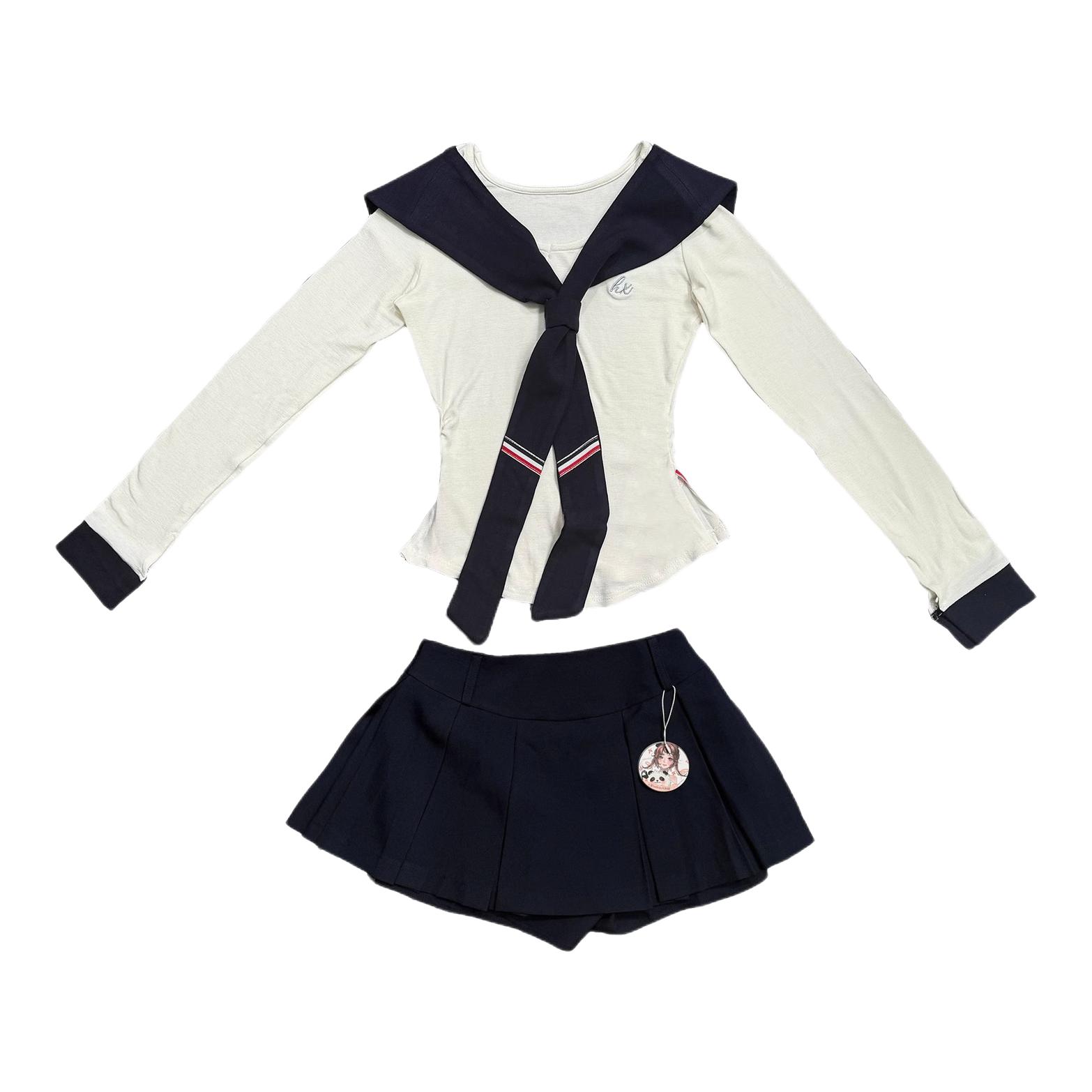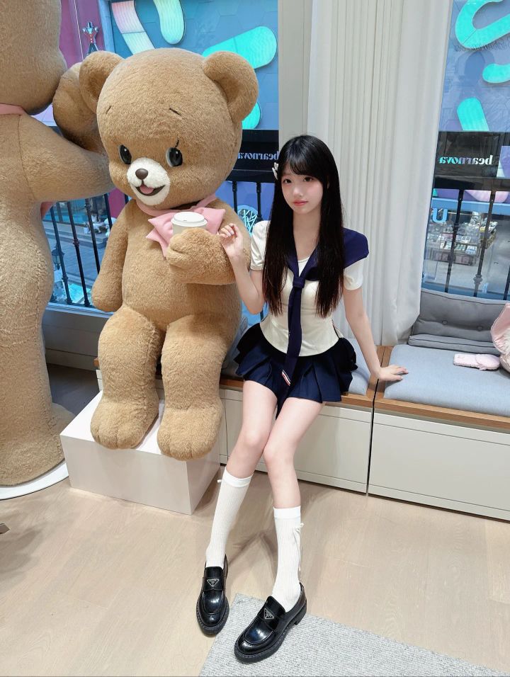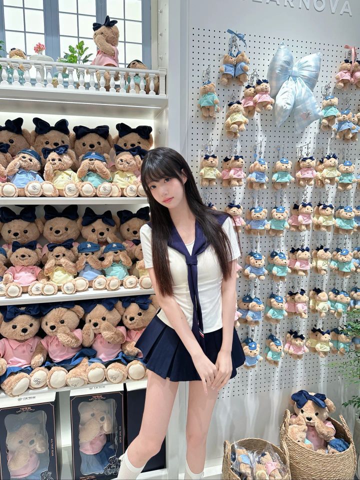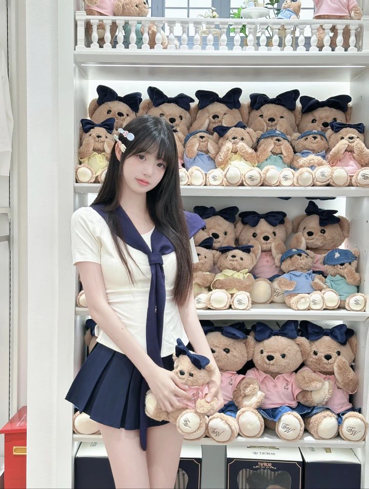宝子们,今天必须要给大家分享这套让我一眼就沦陷的水手服穿搭! 👚上衣是简约的白色短袖,干净又清爽,完美适配夏天的氛围。领口处深蓝色的大领结是点睛之笔,不仅增添了几分俏皮可爱,还带着浓浓的学院风,瞬间就让整体造型活泼起来。 👗下装搭配的深蓝色百褶短裙,经典又不过时。短裙的长度恰到好处,露出修长的双腿,元气感满满。走路时裙摆轻轻摆动,少女的灵动与俏皮尽显无遗。 这次拍照的背景是满是小熊玩偶...