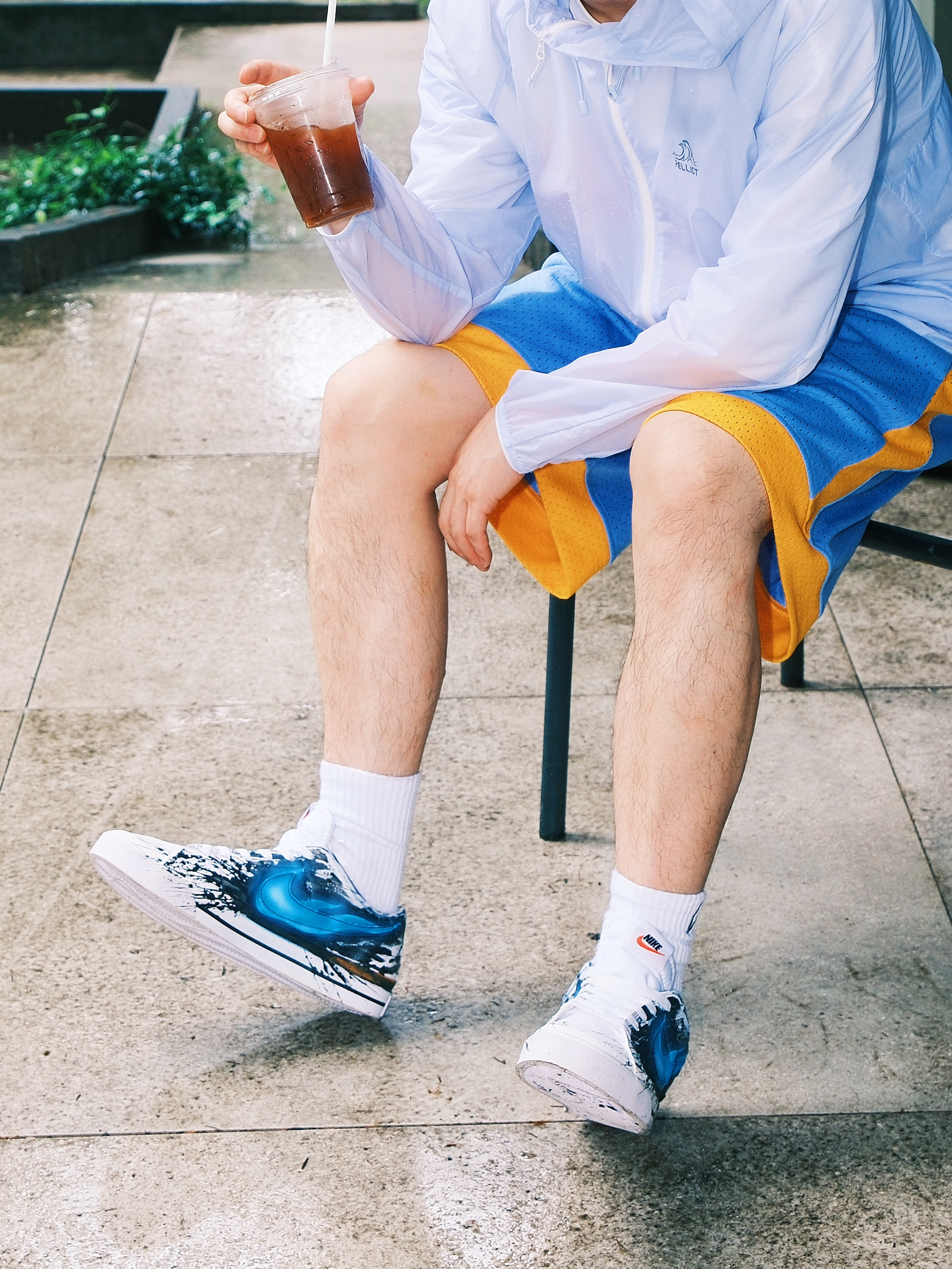 周末公园野餐/短途骑行/咖啡店发呆☕️ ——需要一件「透气不闷汗」的防晒衣+「抢眼但耐看」的短裤,再踩一双能暴走2w步的鞋,才是真·懒人出街标配! 穿搭拆解: ▫️上衣|浅蓝/白连帽防晒衣 轻薄得像穿云☁️,户外防晒+空调房护体两用,浅色系视觉降温5℃ ▫️下装|蓝黄拼接运动短裤 侧边条纹拉长腿型,黄蓝撞色自带少年感,跑步转身都有存在感🏃 ▫️鞋子|定制款🎨白蓝泼墨运动鞋(⚠️安利!) ✅ 为什...