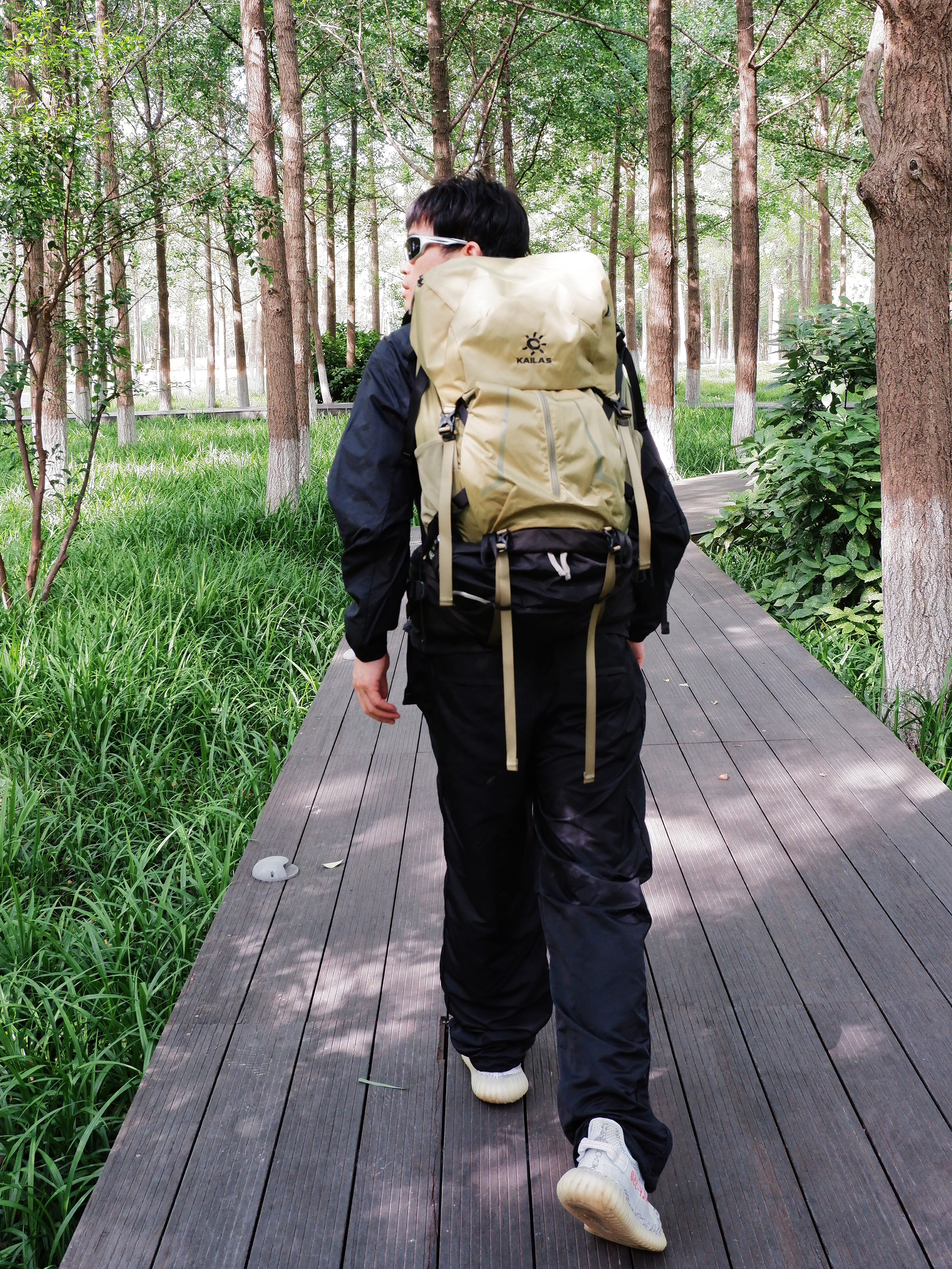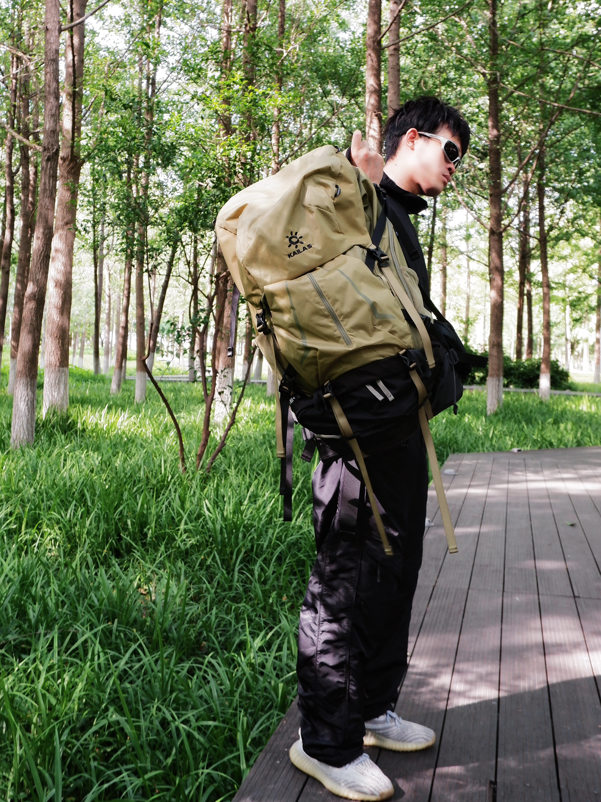 晴光钻过香樟叶缝 踩着满地碎金子向山深处走 脚下栈道咯吱响 风裹着青草汁水味儿扑进怀🌲 穿搭减法 ◻️ 全黑降温术 ·抗造防晒衣(防晒指数UPF50+实测) ·阔腿工装裤(灌满山风也不缠腿) ·yeezy鞋(踩过溪石依然跟脚) 🎒 背包重点位 侧兜插水瓶随手抽|背板网格透汗不贴脊梁|底部独立仓塞得进沾泥装备 (关键是不管塞多满 肩膀也没勒出红痕)