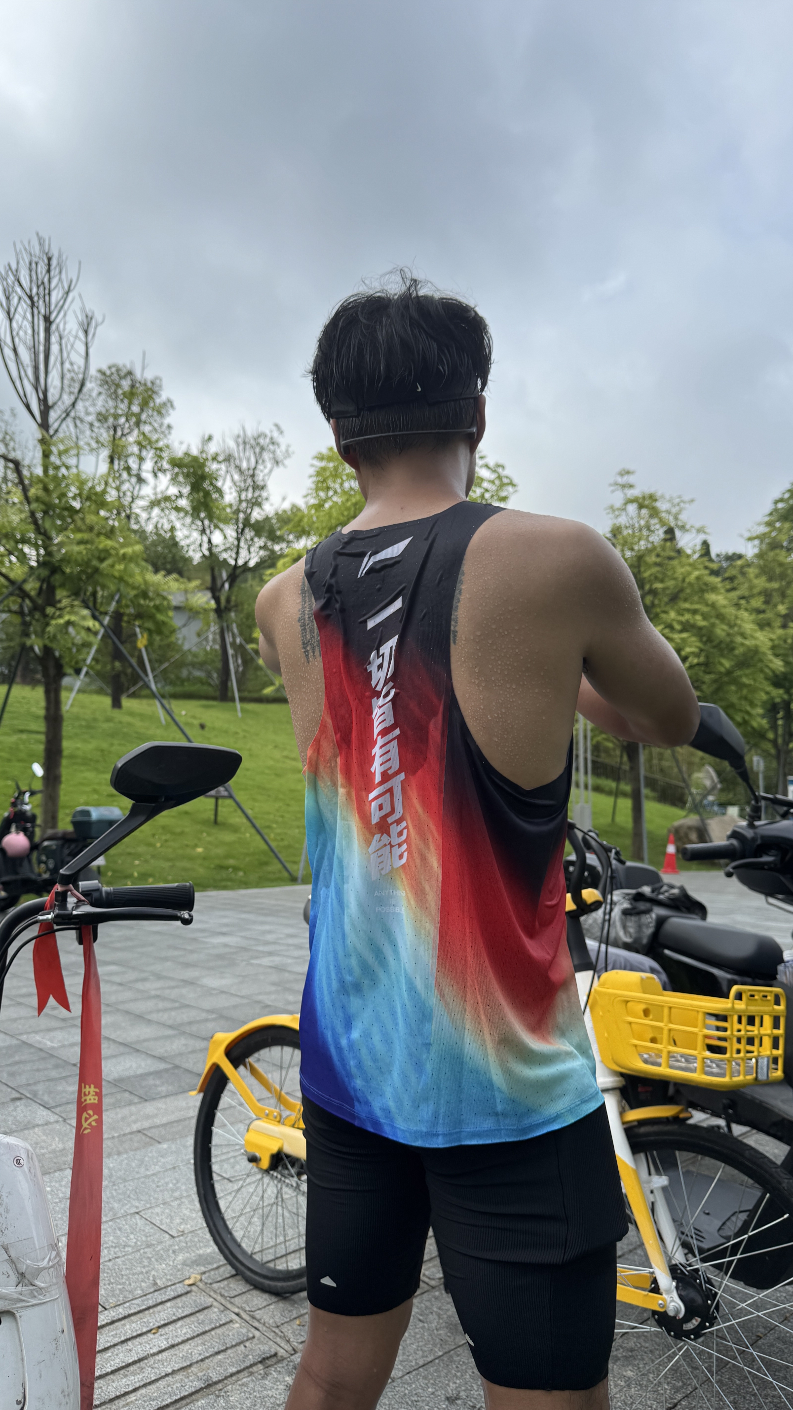 第一次穿背心跑lsd,之前都是勾子的adv短t,的确是不沾身,但吸水会导致下摆很重,我跑着跑着就要去主动泼汗,今天穿这个宁子的小龙雀,打开新大门了,虽然也会沾身,但它不重啊,不需要泼汗了,从头到尾我就没有管过它,也没有磨头,想再入手一件