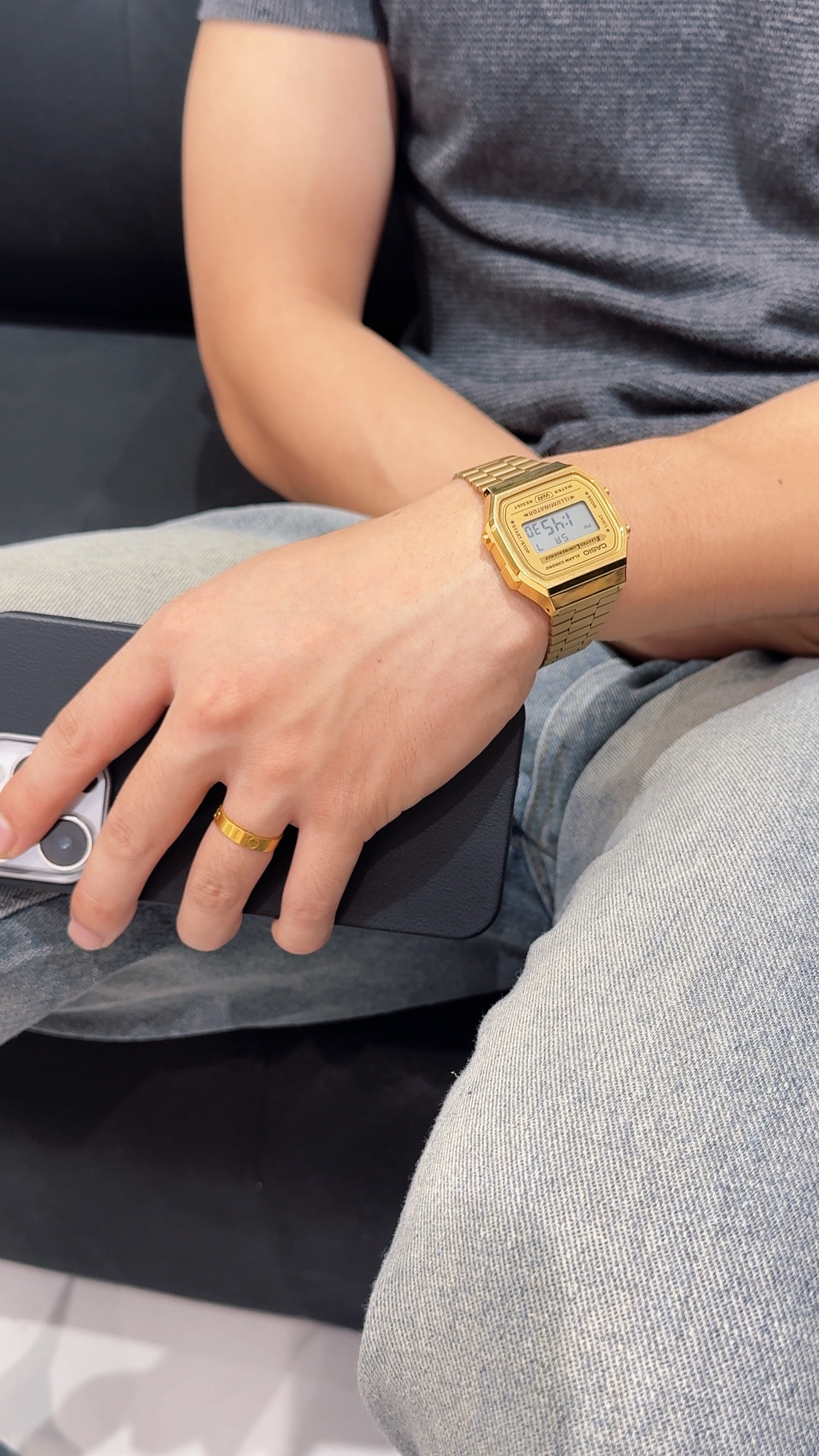 上衣👕:灰色针织上衣 裤子:百搭直筒牛仔长裤 鞋子:小白同款萨洛蒙,增高 🛒好物名称:卡西欧 🤔推荐理由:百搭小金表时尚🧍♂️