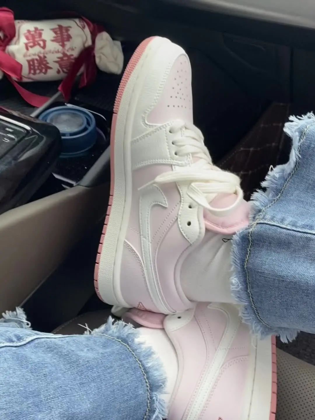 谁懂啊!刚上车就被副驾姐妹追着问🔗 粉白渐变AJ+毛边牛仔+白袜,把“甜酷感”穿成日常,连车载挂饰都要蹭这份少女心💕 🌟 「甜酷密码」细节拆解 ▫️ 鞋子:把“少女滤镜”穿在jio上 - 粉白渐变:不是廉价的粉!是像樱花落在奶油里的柔雾粉,黄黑皮穿也显白,自带反光板特效✨ - 细节王炸:AJ经典鞋型+粉白撞色,甜酷对冲不幼稚,配牛仔裤/短裙都封神! - 舒适度:软乎乎的中底,暴...