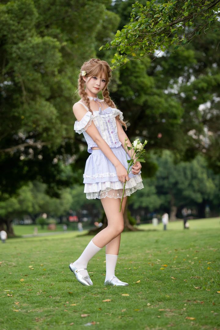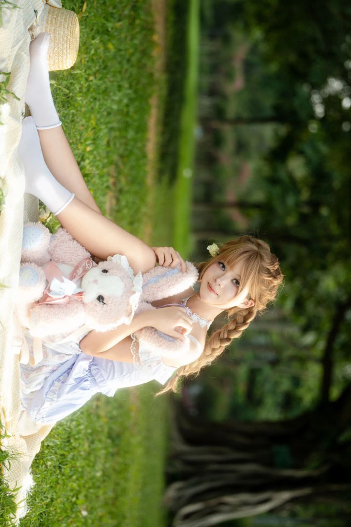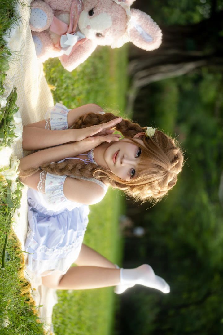 浅紫洛丽塔+白丝+大耳狗 → 躺在草坪抱玩偶,随手拍都是《爱丽丝梦游仙境》剧照;