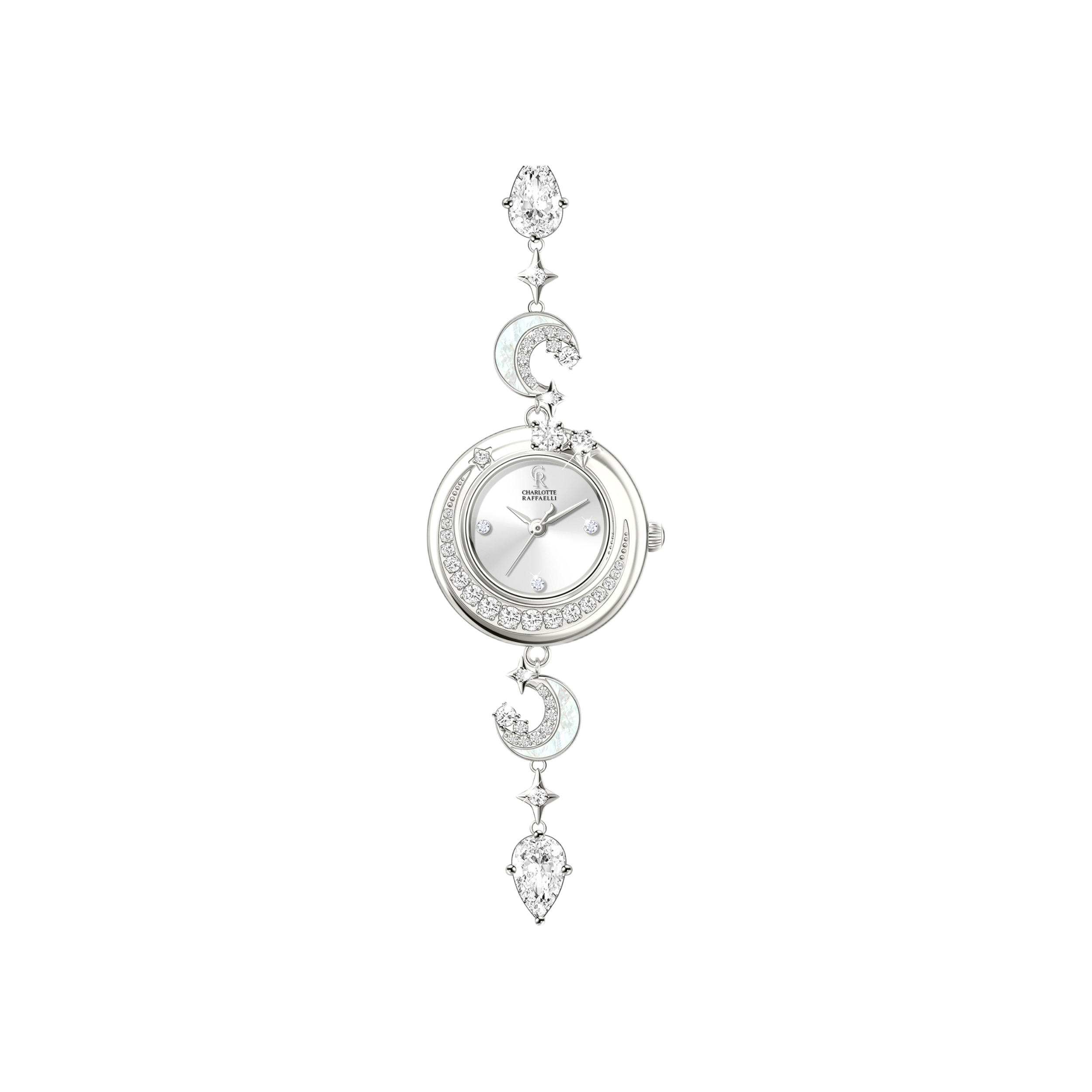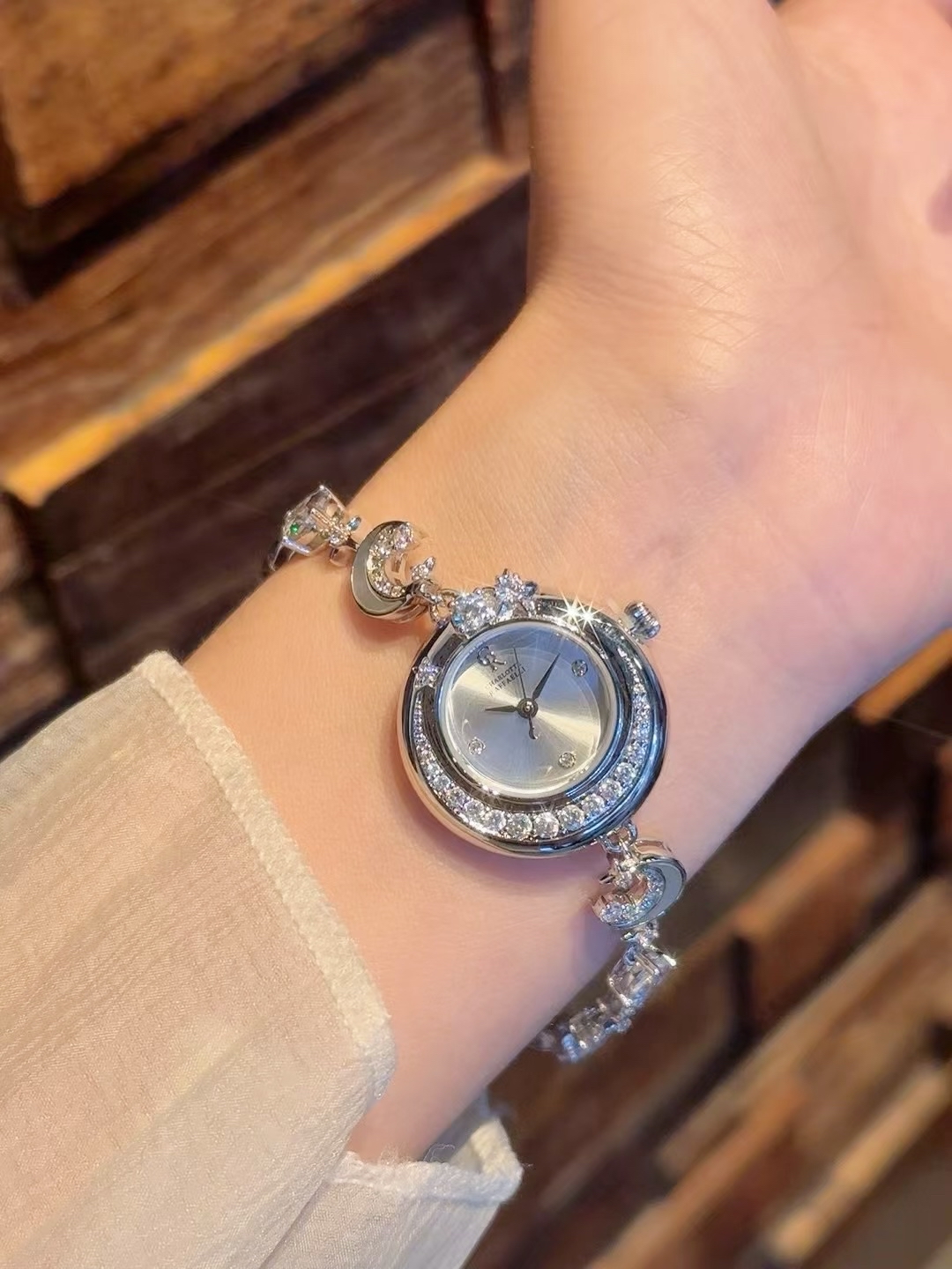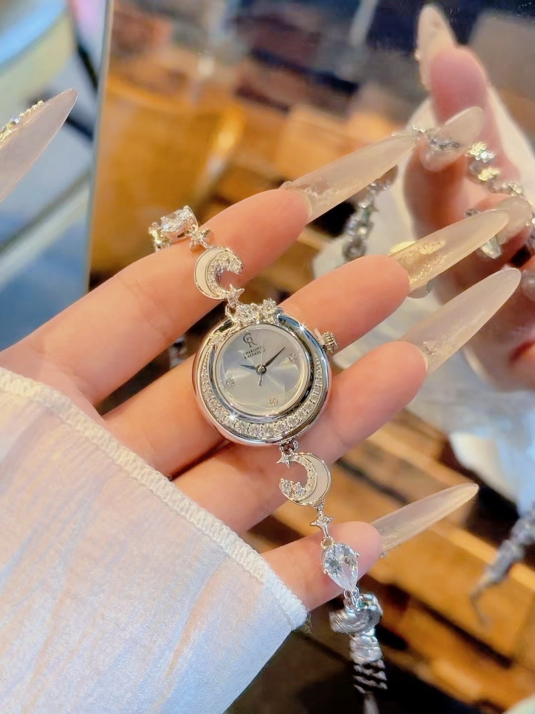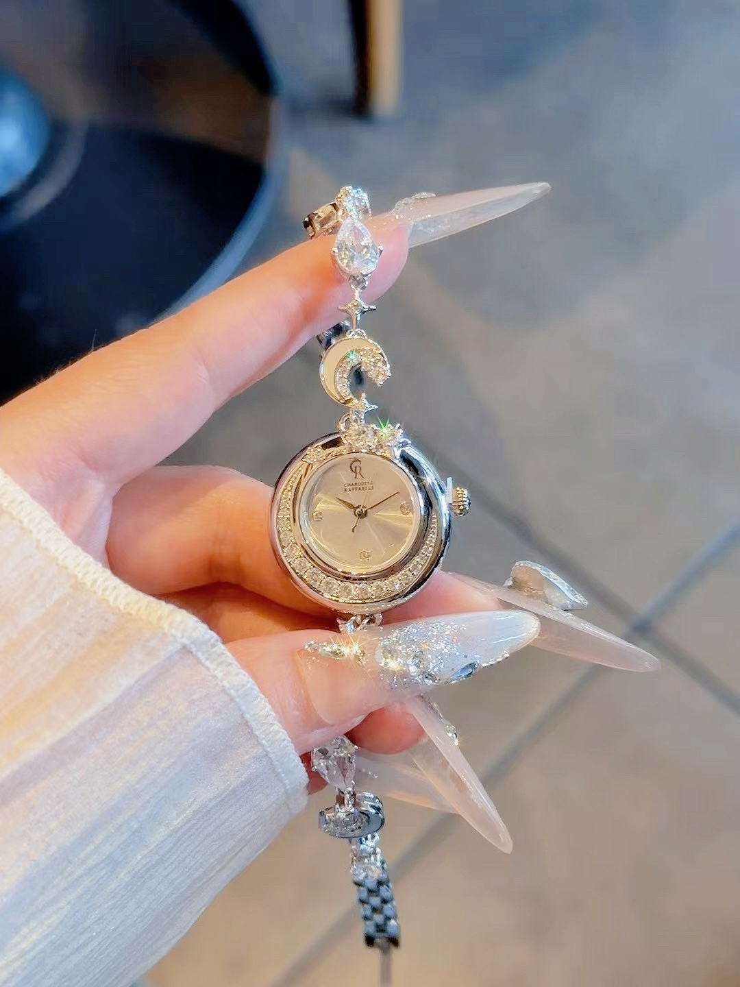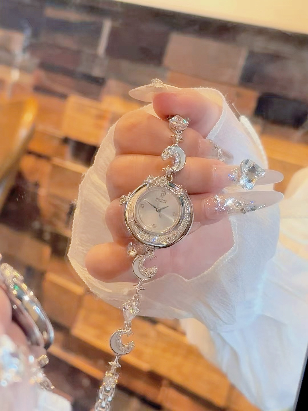 银色氛围感拉满!! 这个cr家滴星月☪️手表好piu 亮呀 表盘上钻石镶嵌成月亮形状bling bling滴 表链也是月亮形成组成 看着好精致呀 夏天搭配小吊带或者裙子嘎嘎出片~