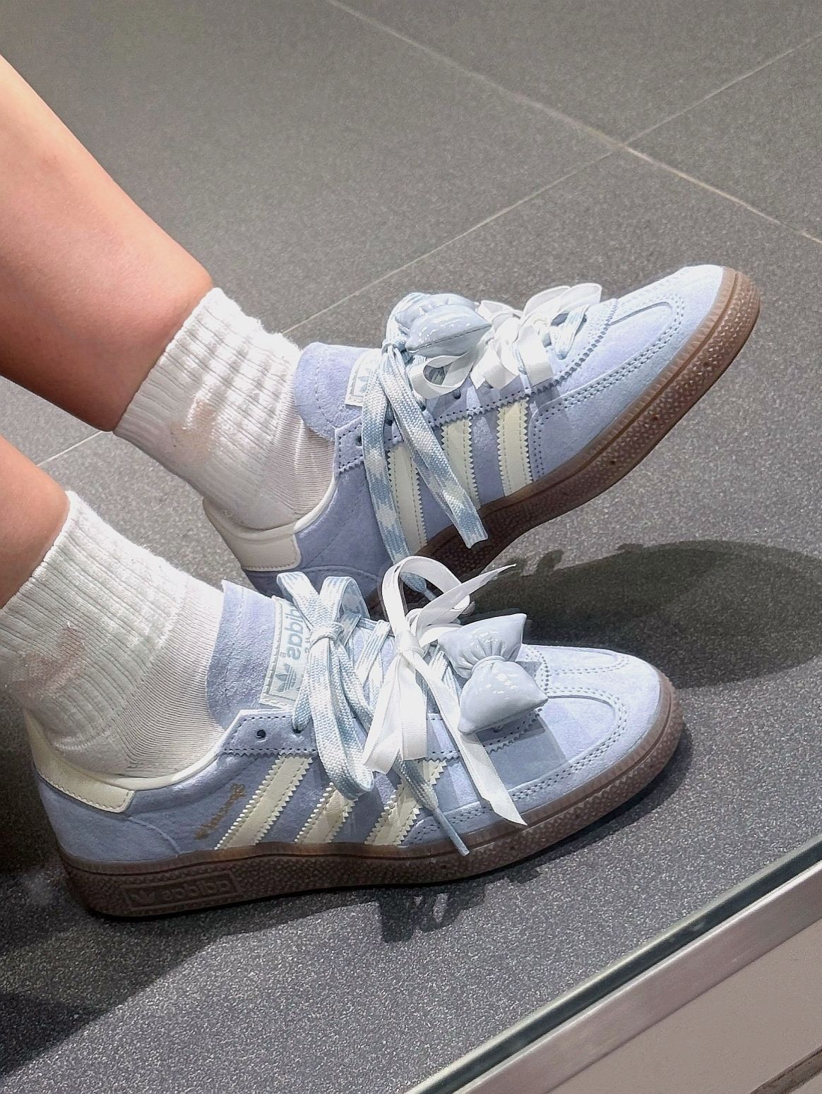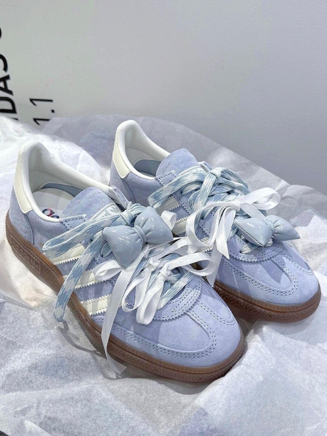 挖到宝了!这双三叶草德训鞋直接锁死🔒 雾霾蓝麂皮➕经典三条纹⚪️ 高级感拉满 软糯脚感暴风好穿👟 附赠同色鞋带✨ 鞋盒蓝白CP配色 细节控狂喜📦 搭裤子👖or裙子👗都hin绝 闭眼冲就完事!