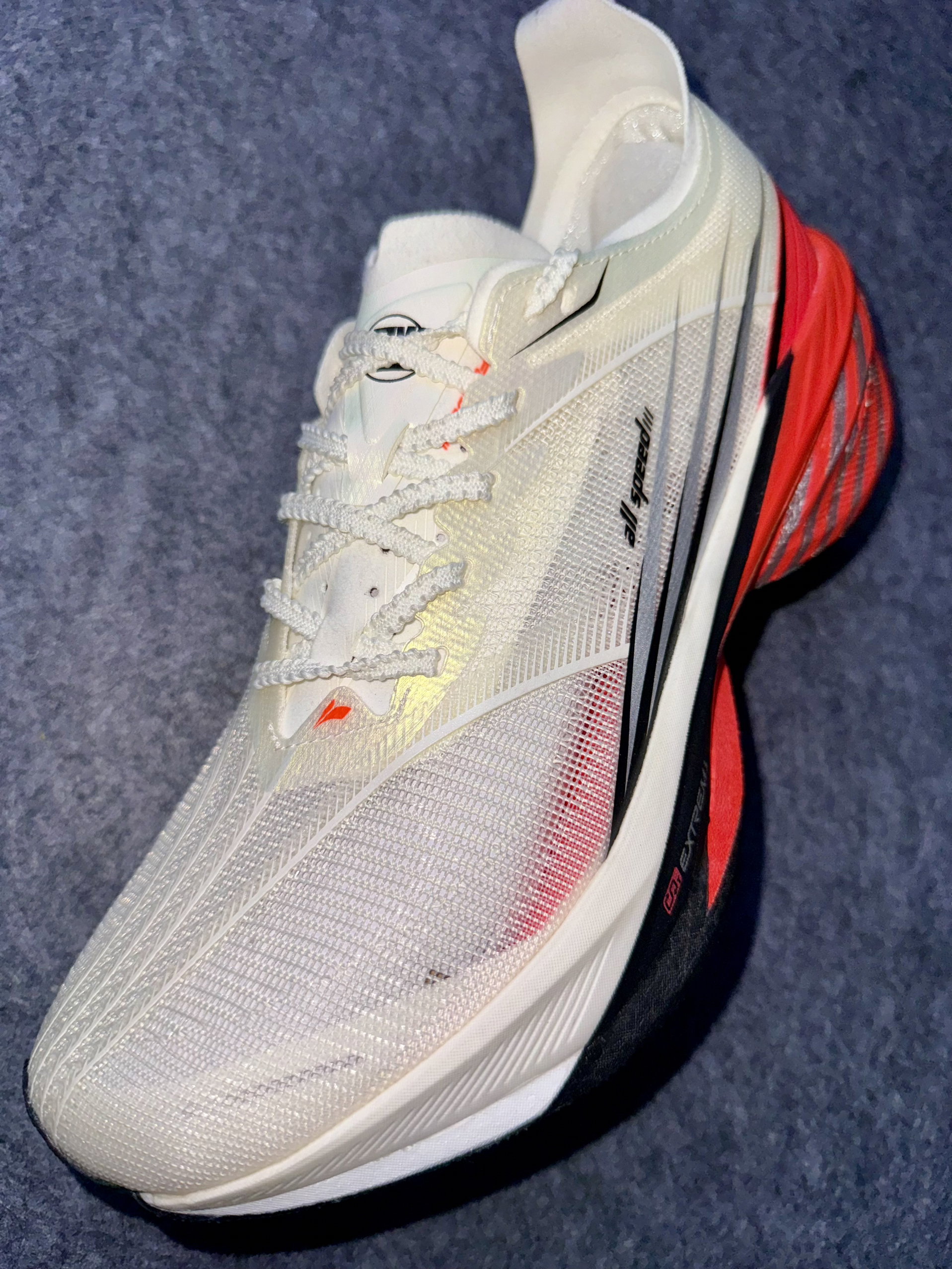 1.这双鞋子适合蹬伸暴力跑法的一类人 如果你很喜欢类似x1603.0pro一类的滚动型跑鞋 这双鞋的碳板就不会起很大的作用 而是在跖骨和脚趾部分于地面平行时停止滚动 又有大面积且薄的发力平台 这个特点让他成为了我的300m间歇专用鞋 240-300左右的配速穿它间歇真的非常非常爽 有种吕布骑赤兔的感觉 如果你是400米或800米甚至中长跑选手蹬伸跑法 穿它听我的 绝对不会出错