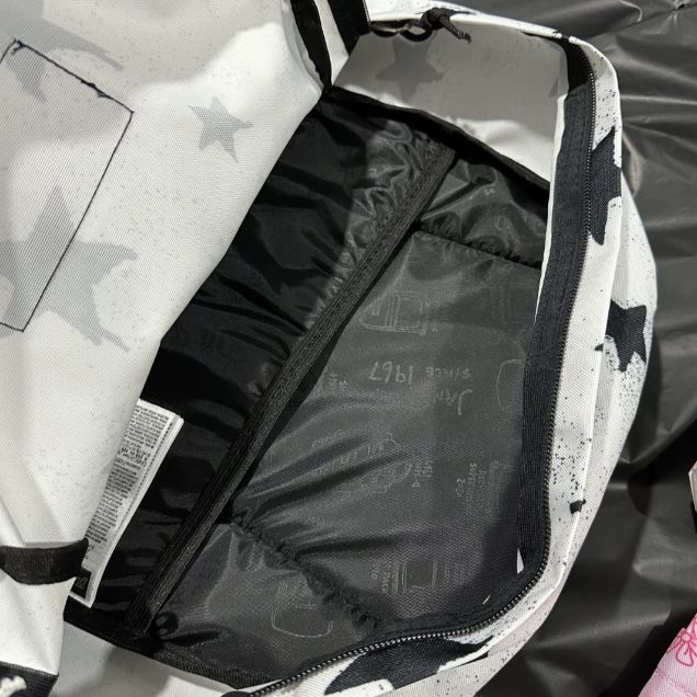 织物面料摸起来软软的但很耐磨,背了半年没起球没变形,下雨溅到水轻轻一擦就好。 🌟🌟🌟 容量对学生党太友好了,课本、笔记本、平板全塞进去还能装下保温杯和伞,分层设计超贴心,笔袋、充电器再也不用乱翻。肩带软软的有缓冲,装满书背一天肩膀也不酸。 🌟🌟🌟 白星印花简约又有小心机,搭校服、卫衣都清爽干净,最惊喜的是自重很轻,空包背像没背一样,性价比拉满~学生党选它准没错!