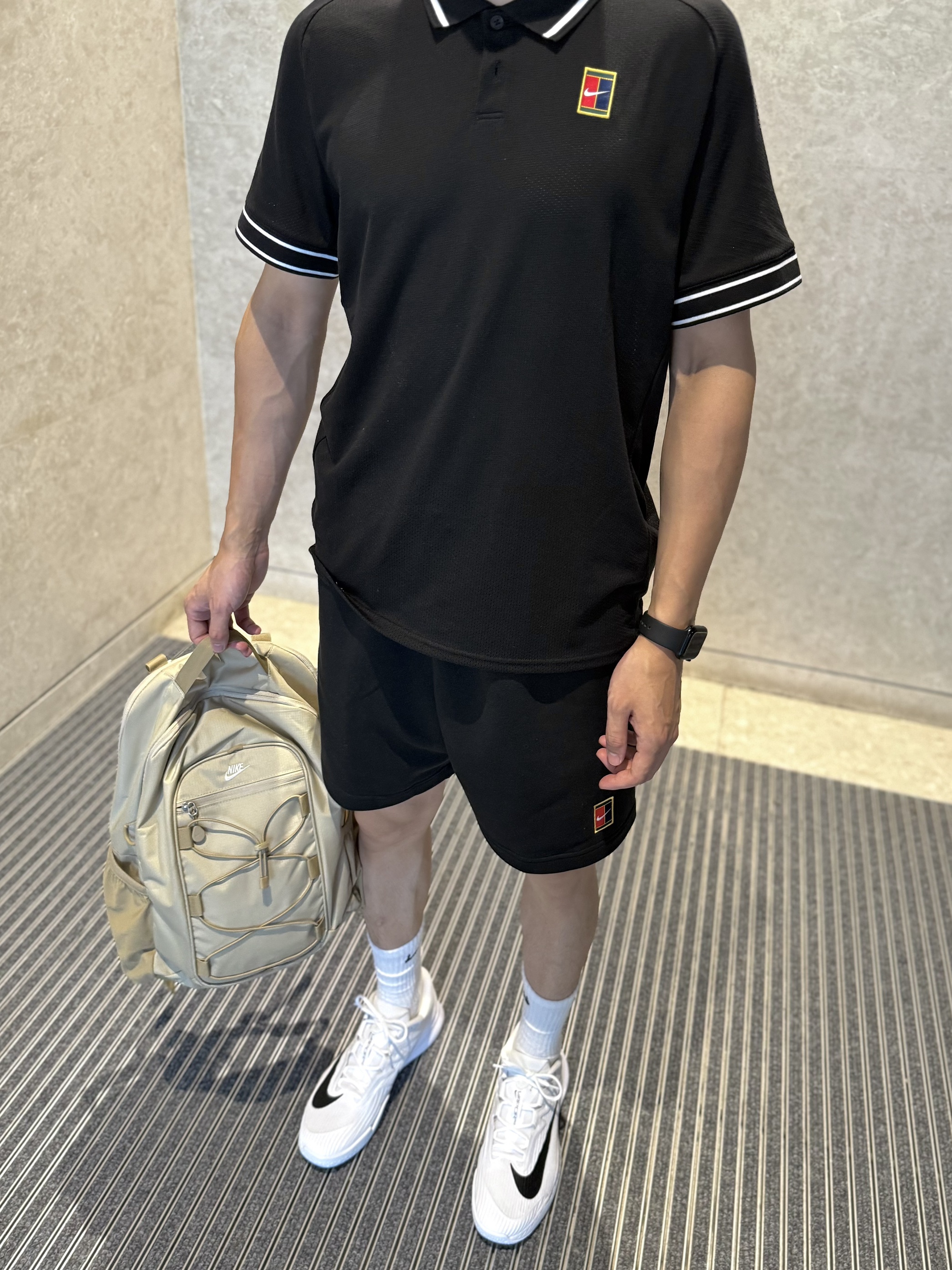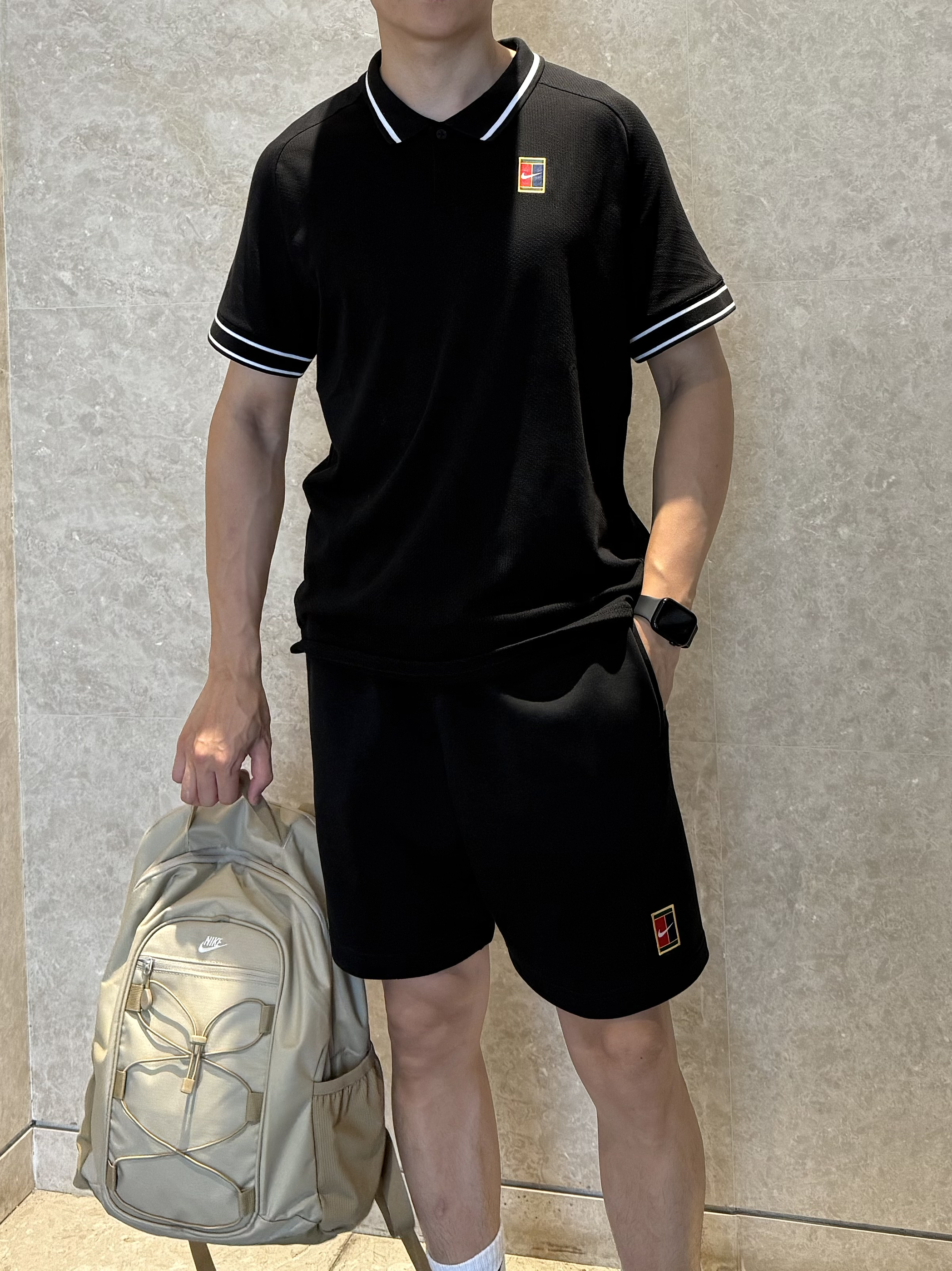 网球运动越来越多人参与,今天带来一套网球穿搭,场上场下都贼酷~ 👕:nike网球场下短袖,面料是凉凉的速干,而且有弹力,版型是宽松款式,上身为L码~ 👖:Nike网球场下短裤,富有质感的棉质,日常➕运动都很不错,上身尺码为XL码! 👟:Vapor pro3代,不出错的黑白配,脚感是扎实的,实战起来场地感十足!前面有Air Zoom气垫,缓震效果不错,包裹也很足!