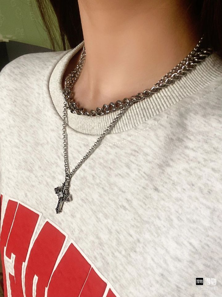 原来是ENFANTIN 家的美式项链 叠戴的设计 看起来不会有那么单调 美式街头风格的潮流元素 十字架 六芒星 四芒星 钛钢的材料 不变形不掉色 佩戴起来非常舒适 上手还会有沉甸甸的感觉 显得非常有质感 抓紧让男朋友变身美式潮男