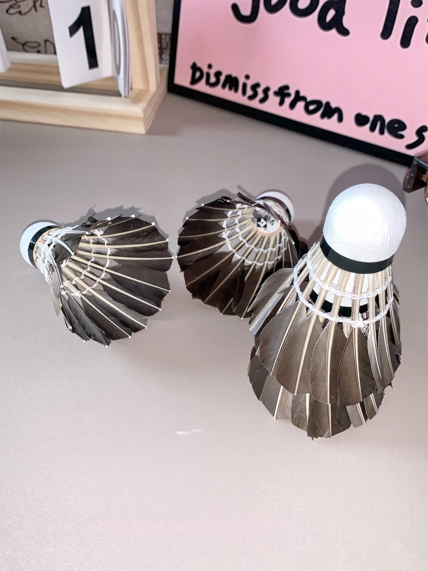 我平常喜欢约朋友打羽毛球,最近发现个不错的羽毛球👍 黑色羽毛超独特,球场灯光下反光,很有辨识度。打起来不错,高远球落点可以。跟朋友对拉半小时,毛片也没大变形。 不过也有个小缺点,对于追求超专业性能的球友可能不太够,适合像我这样日常约球娱乐的人群😄。