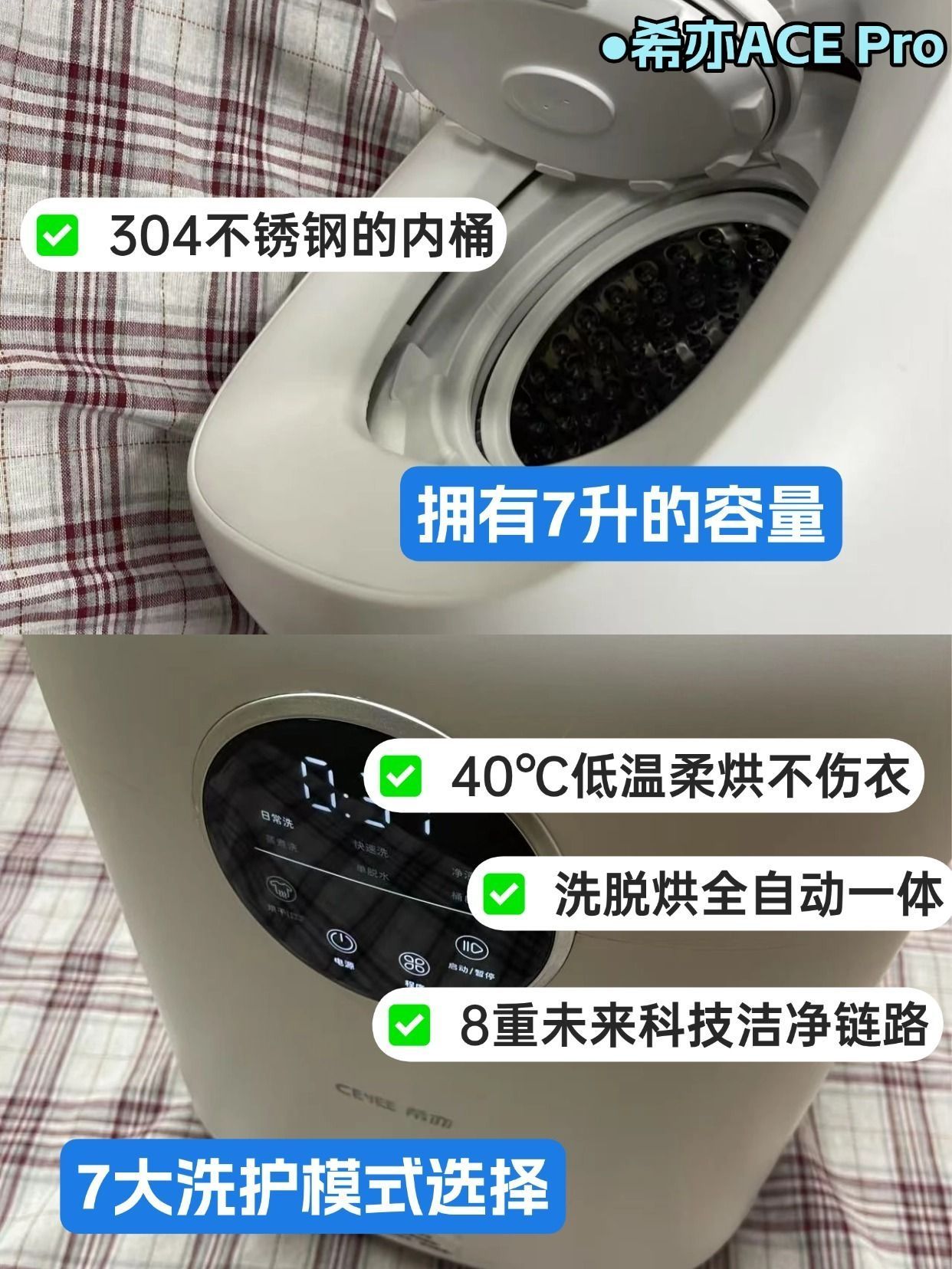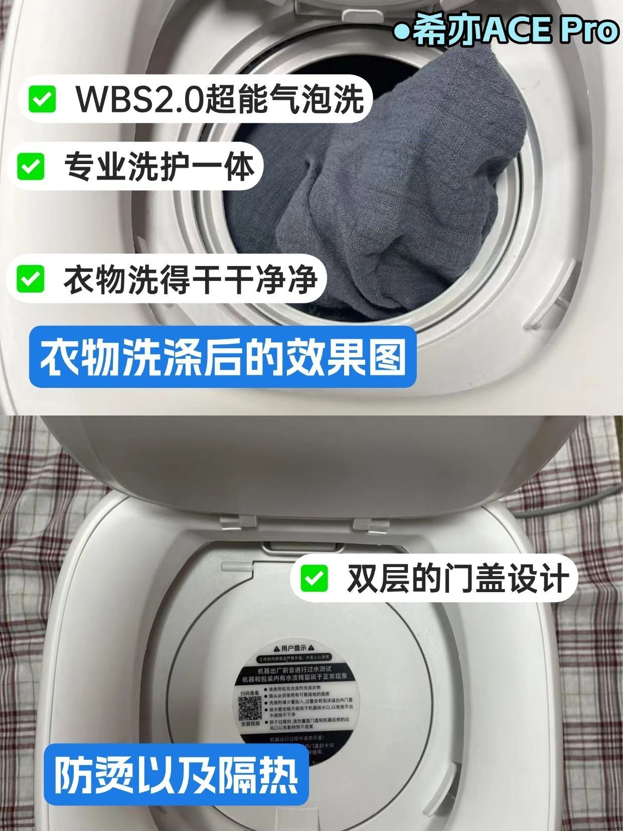 作为一个资深懒癌患者,我要隆重介绍我的救星——希亦ACE Pro内衣洗衣机!🎉 以前最讨厌洗内衣,总是堆到没得穿才勉强动手😅 现在有了它,每天换下来直接丢进去,按下开关就搞定!连男朋友的内裤都能一起洗(嘘~) 必须夸夸它的除菌功能!🦠95℃高温蒸煮+银离子双重杀菌,洗出来的内衣穿着特别安心~ 还有40℃低温柔烘模式,烘干时温度刚刚好,不会损伤到衣物 体积比A4纸大不了多少,租房党也能轻松放下...