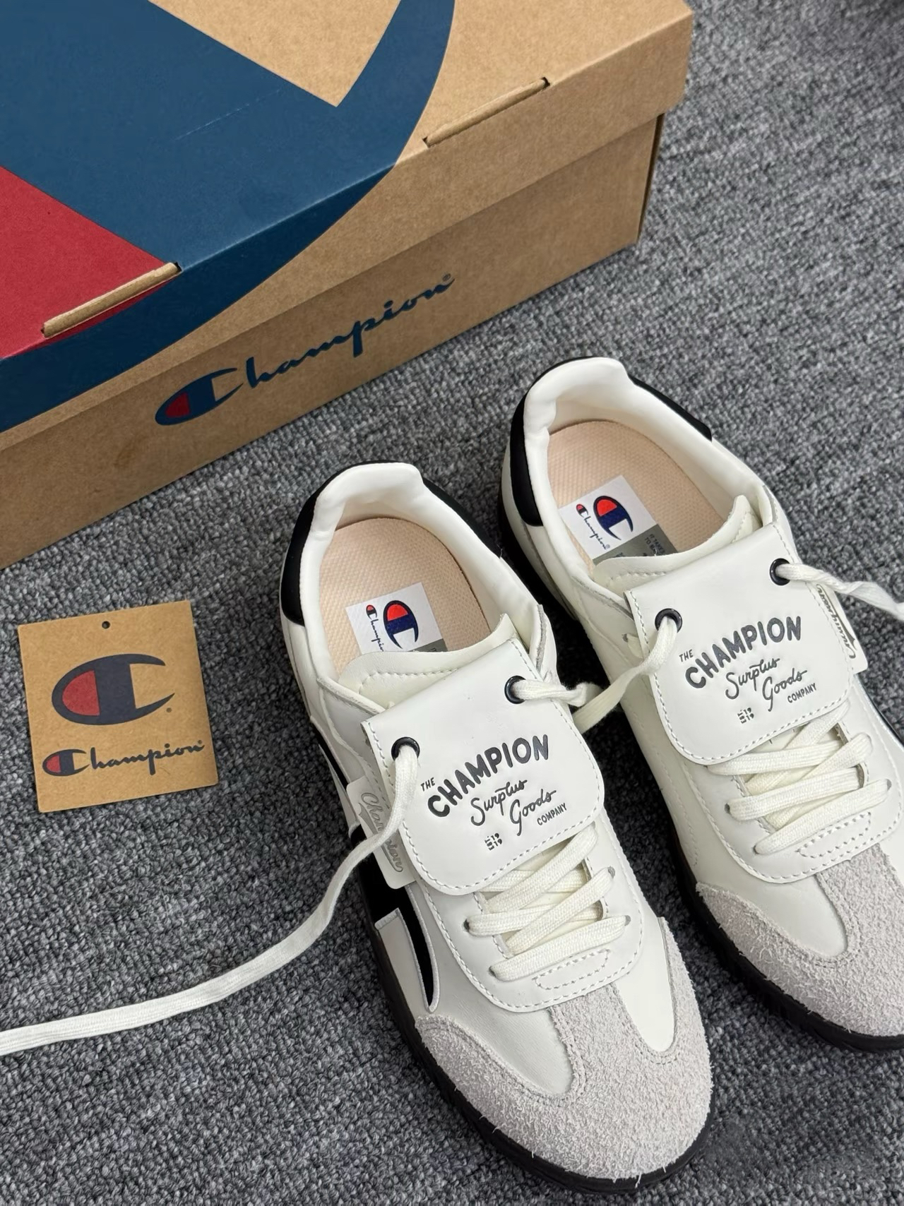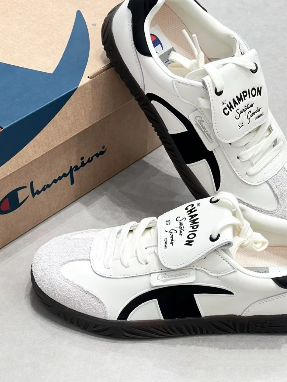 👟球鞋名称:Champion Champ T-trainer T头德训鞋 经典Logo可拆卸鞋舌复古拼接防滑耐磨轻便舒适简约休闲 低帮 板鞋 黑白 🔍分享理由:王俊凯同款!!!谁能不爱呀~关键是鞋子本身很好穿~鞋网很透气不会闷脚上脚很舒适