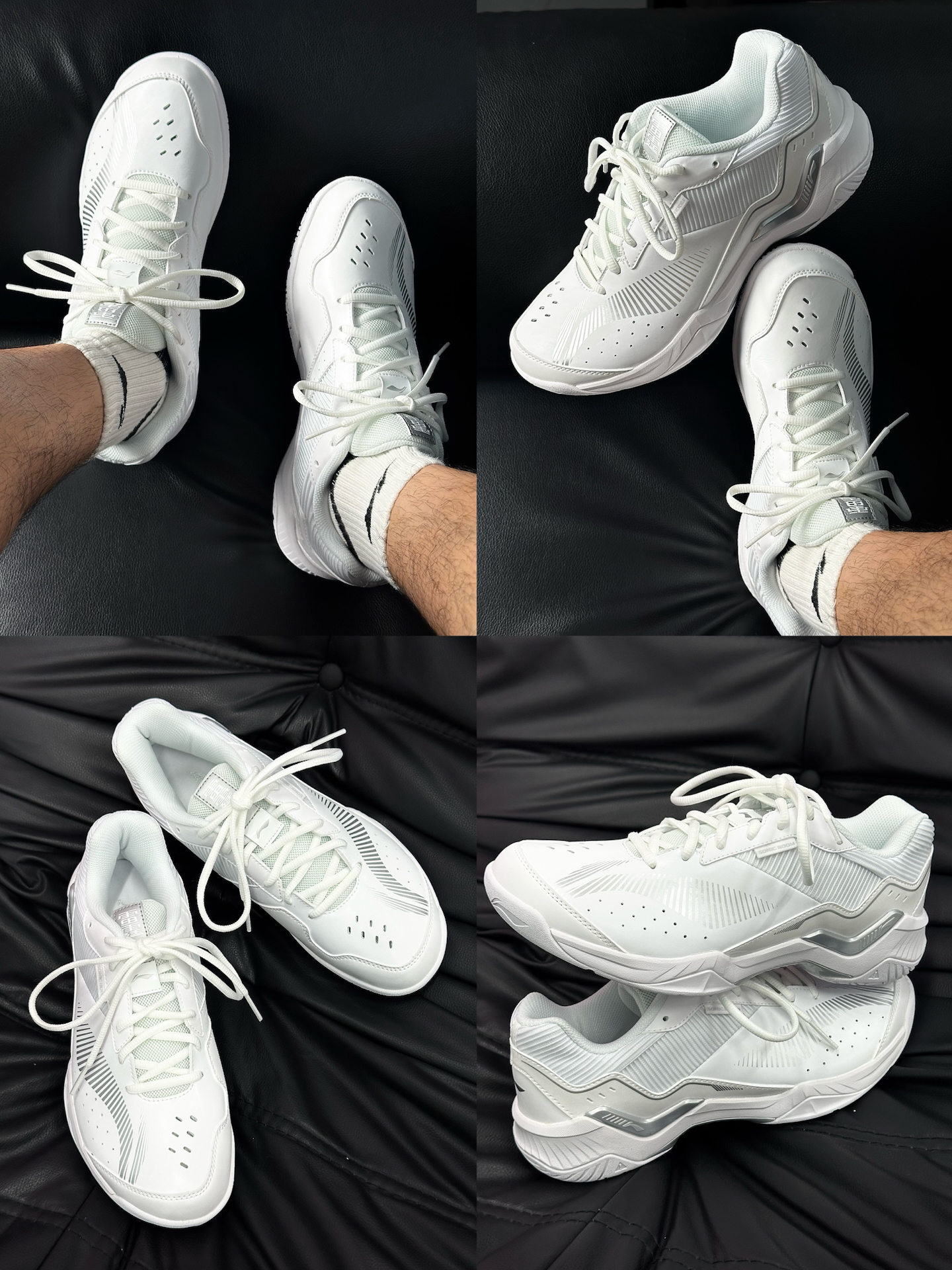 我是个狂热的羽毛球爱好者,刚入手这双战靴🏸!小白鞋超清爽百搭。穿它暑假训练超稳🤸,减震效果赞👍,抓地还特好。非要说个小不足的话,白色可能不耐脏😂。但瑕不掩瑜~冲啦!
