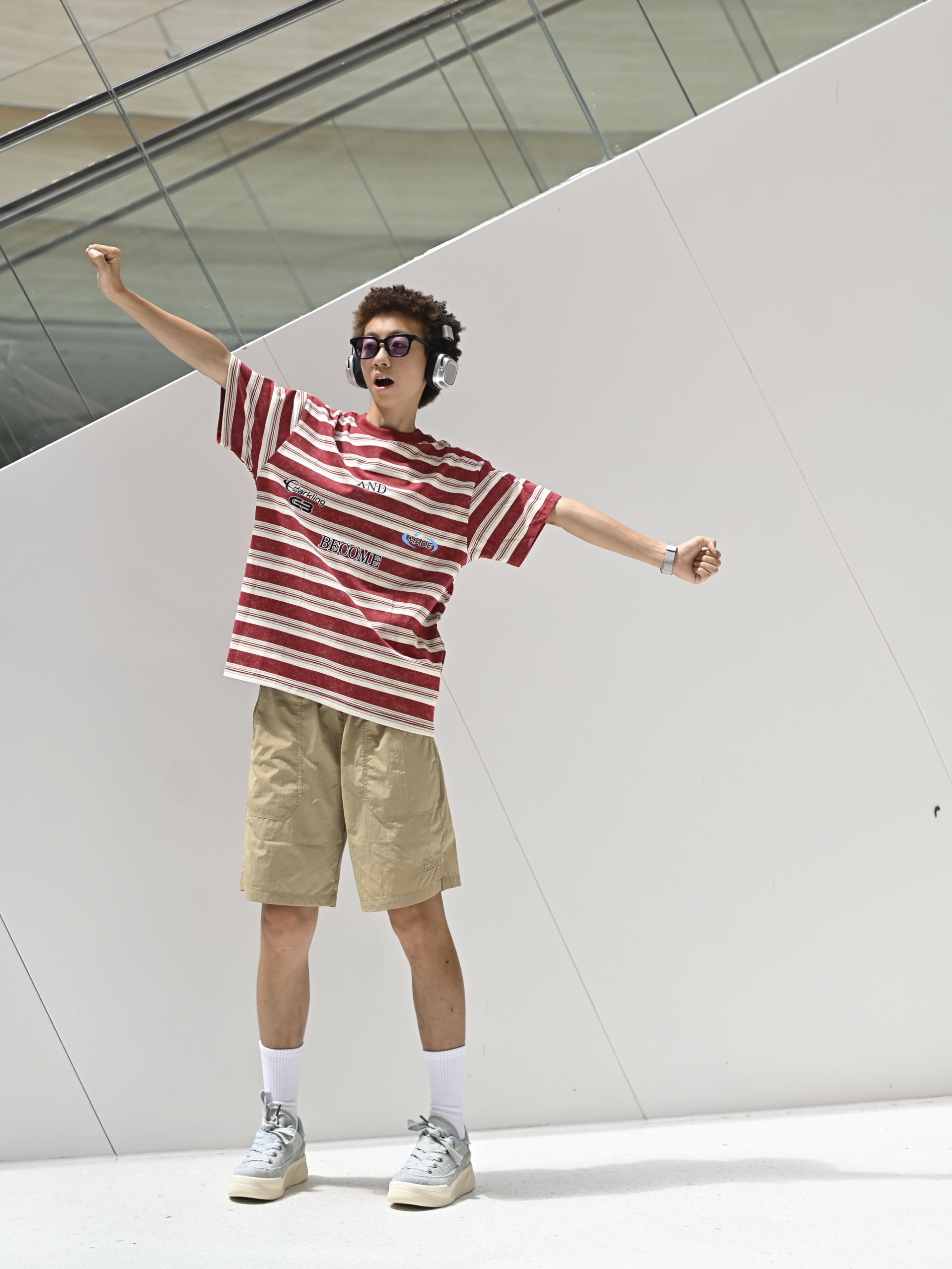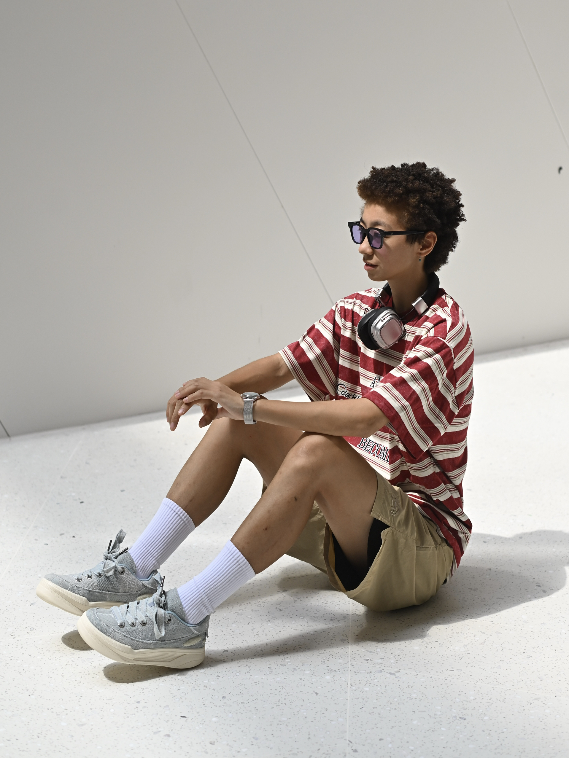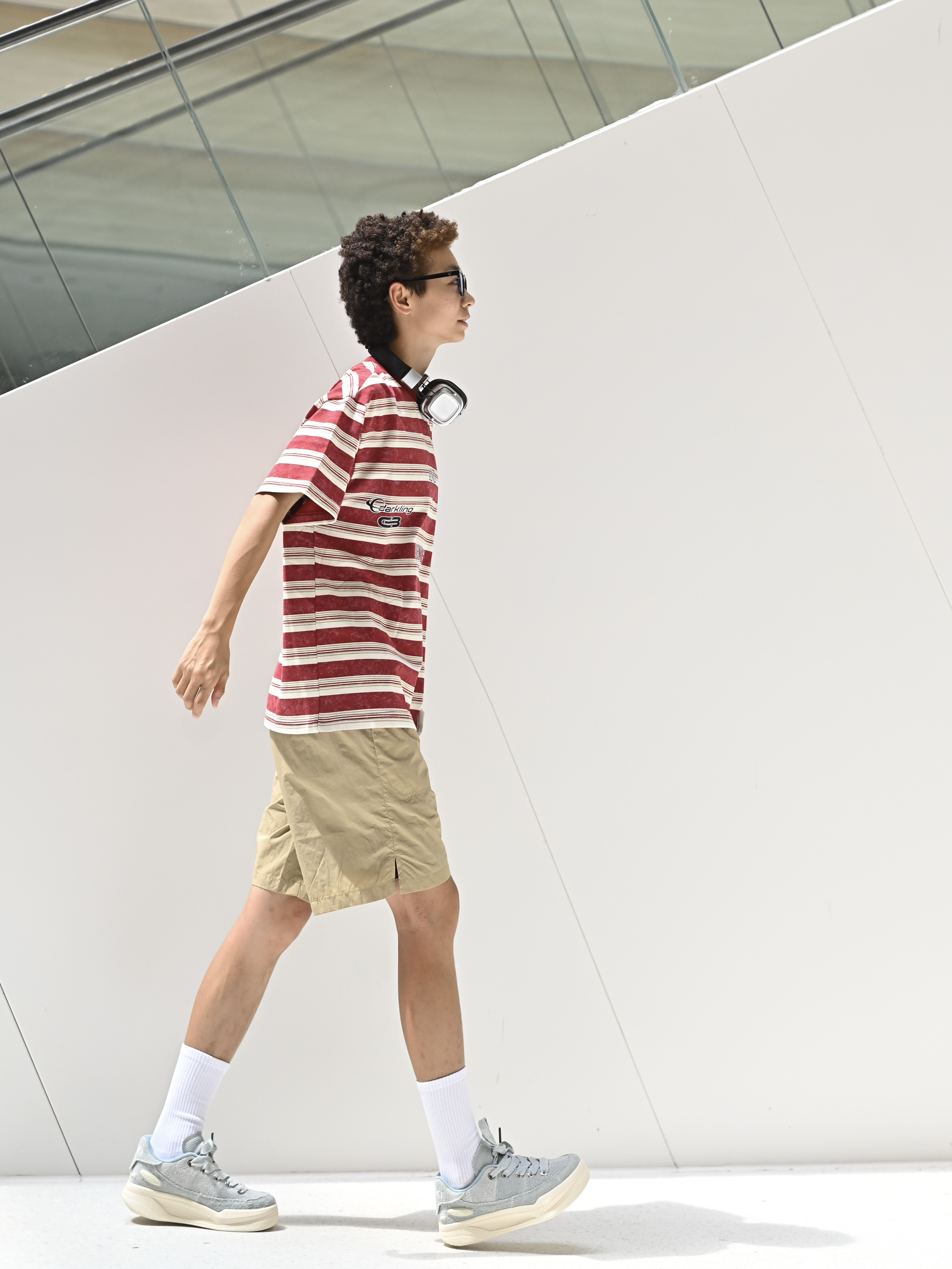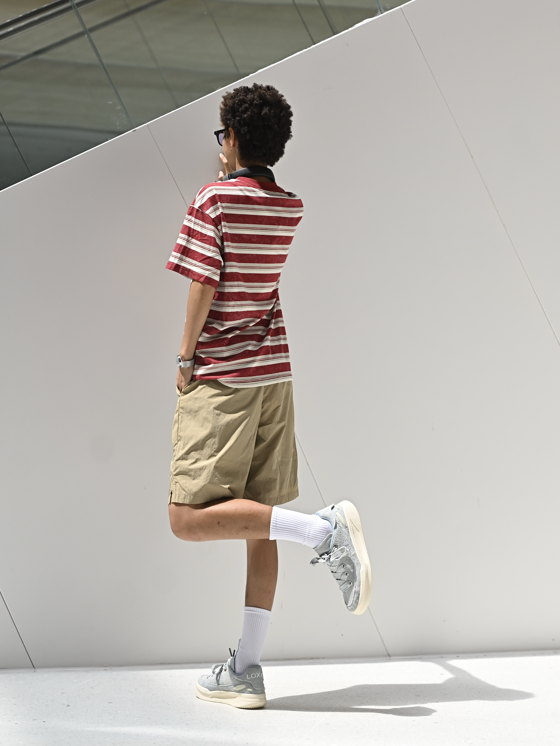 欢迎进入无敌小圆哇子的穿搭分享频道 172CM|55KG 👔:m👖:m|👟:39码 随机蓝调!LOXKI牛仔拼板鞋点亮基础款 | 红白条 + 卡其裤 今天份复古穿搭来也 脚上这双LOXKI Alpha小圆鞋 是整套look的“意外惊喜” 重点是轻便好走还悄悄增高耶✌️ 上身是经典耐看的红白条纹短袖 搭了条柔和百搭的卡其色短裤 时髦感拉满 出门咯~
