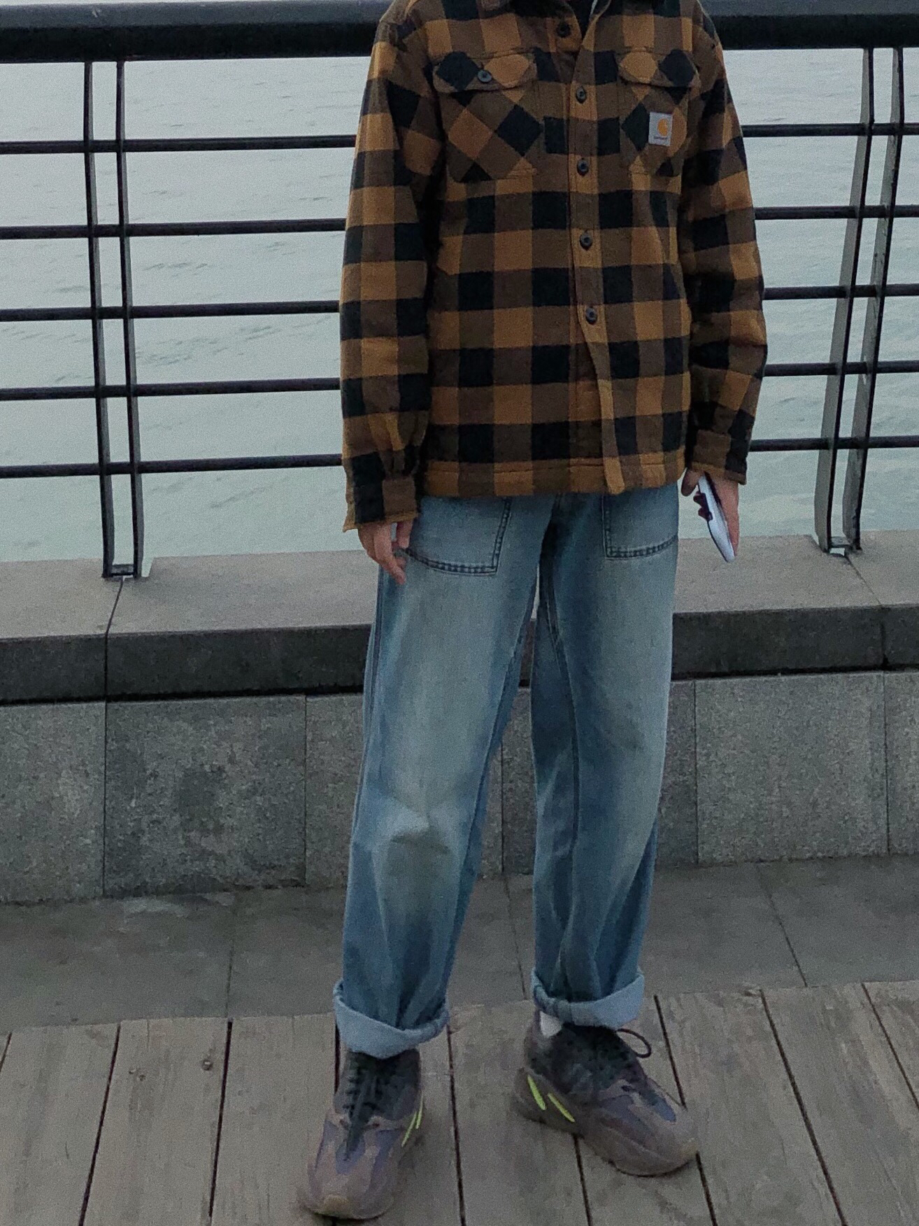 这次溜海边的暗号是yeezy700 虽然是不一样的型号 但颜色差不多哦 当情侣鞋也是蛮🉑️的 有点复古的老爹鞋型 搭配牛仔裤直筒裤运动裤都是不错的 除了好搭还能增高✌️ 马上夏天了女生们搭短裤真的显腿细哦 两者相比 晶洞的脚感更舒服一些 现在男码的价格都低于原价不少呢