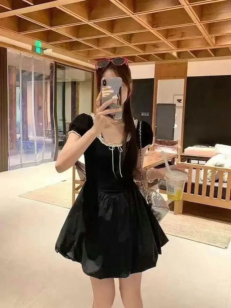 在原木风咖啡馆偶遇「黑丝绒公主」!当法式蕾丝撞上甜酷蓬蓬裙,把迪士尼在逃公主的浪漫,和街头潮人的叛逆,统统揉进一条小黑裙里,随手一拍都是电影感~ 裙装:黑丝绒的甜酷魔法 这条小黑裙,是「甜酷穿搭」的作弊器吧!丝绒面料像午夜的星空,微微发光却藏着小心机,高腰蓬蓬裙随步伐轻晃,仿佛把迪士尼城堡的浪漫都穿在了身上。 方领+蕾丝边设计太绝!方领露出直角肩+锁骨杀,性感得很含蓄;蕾丝边勾勒出精致...