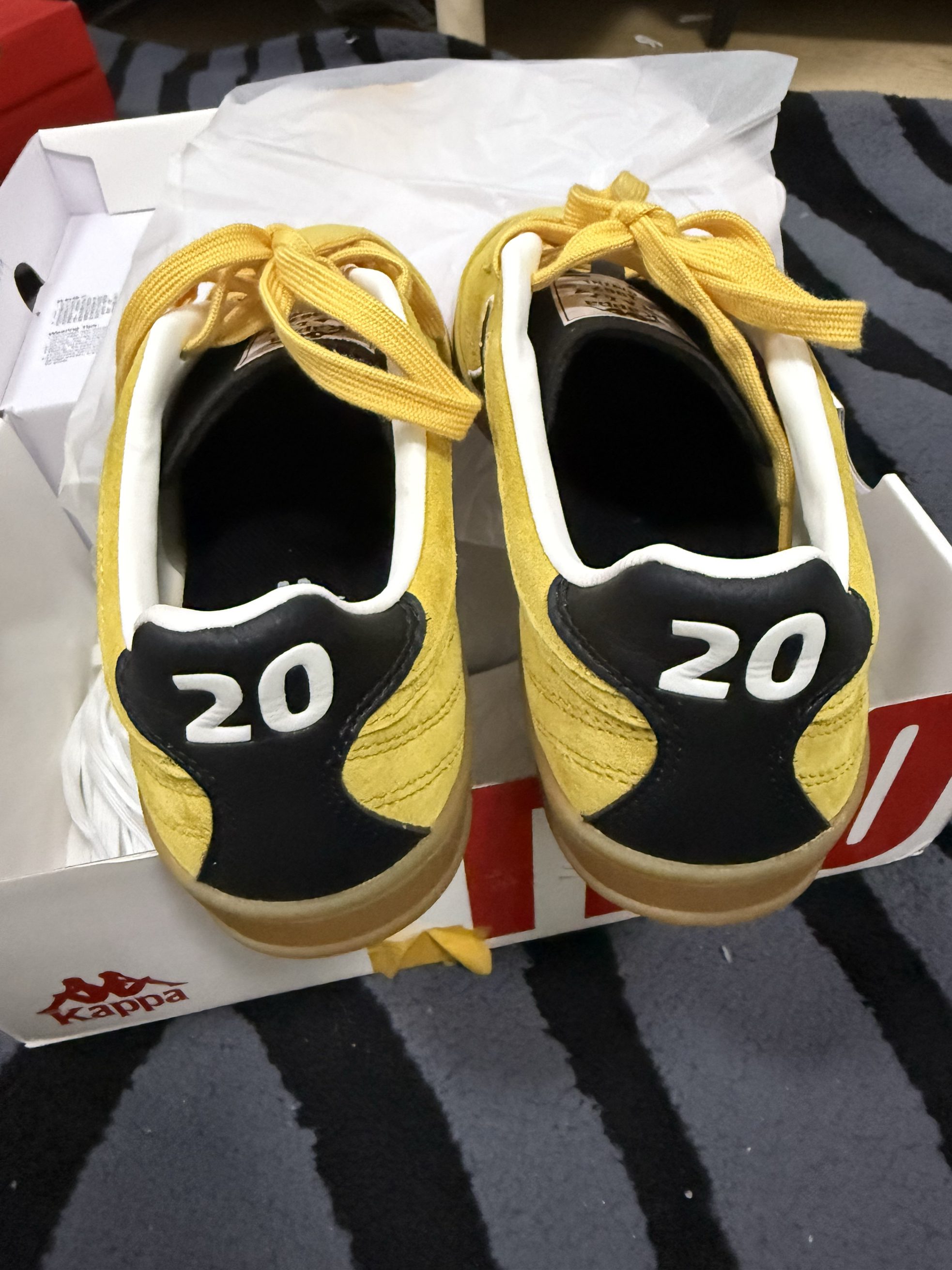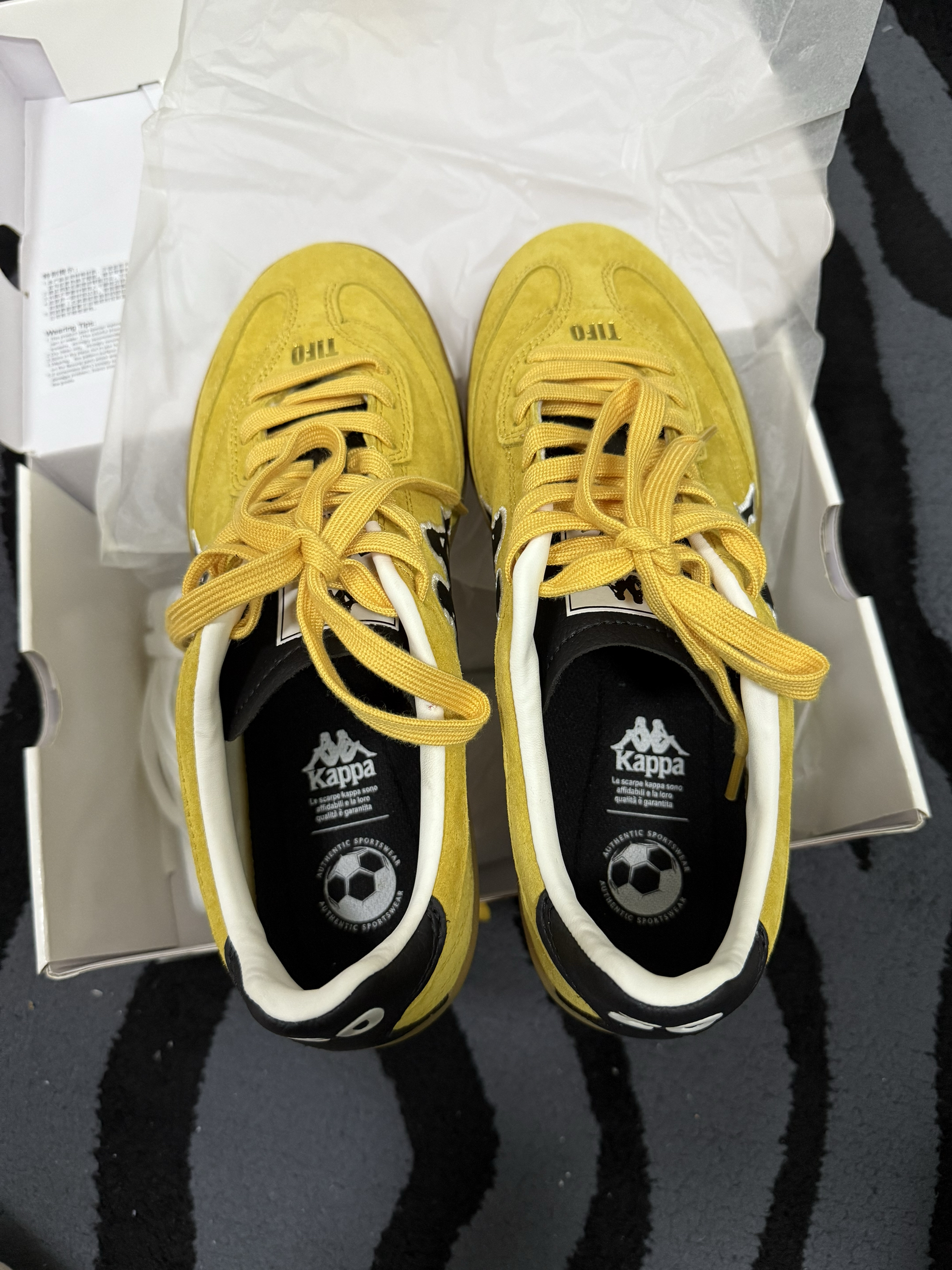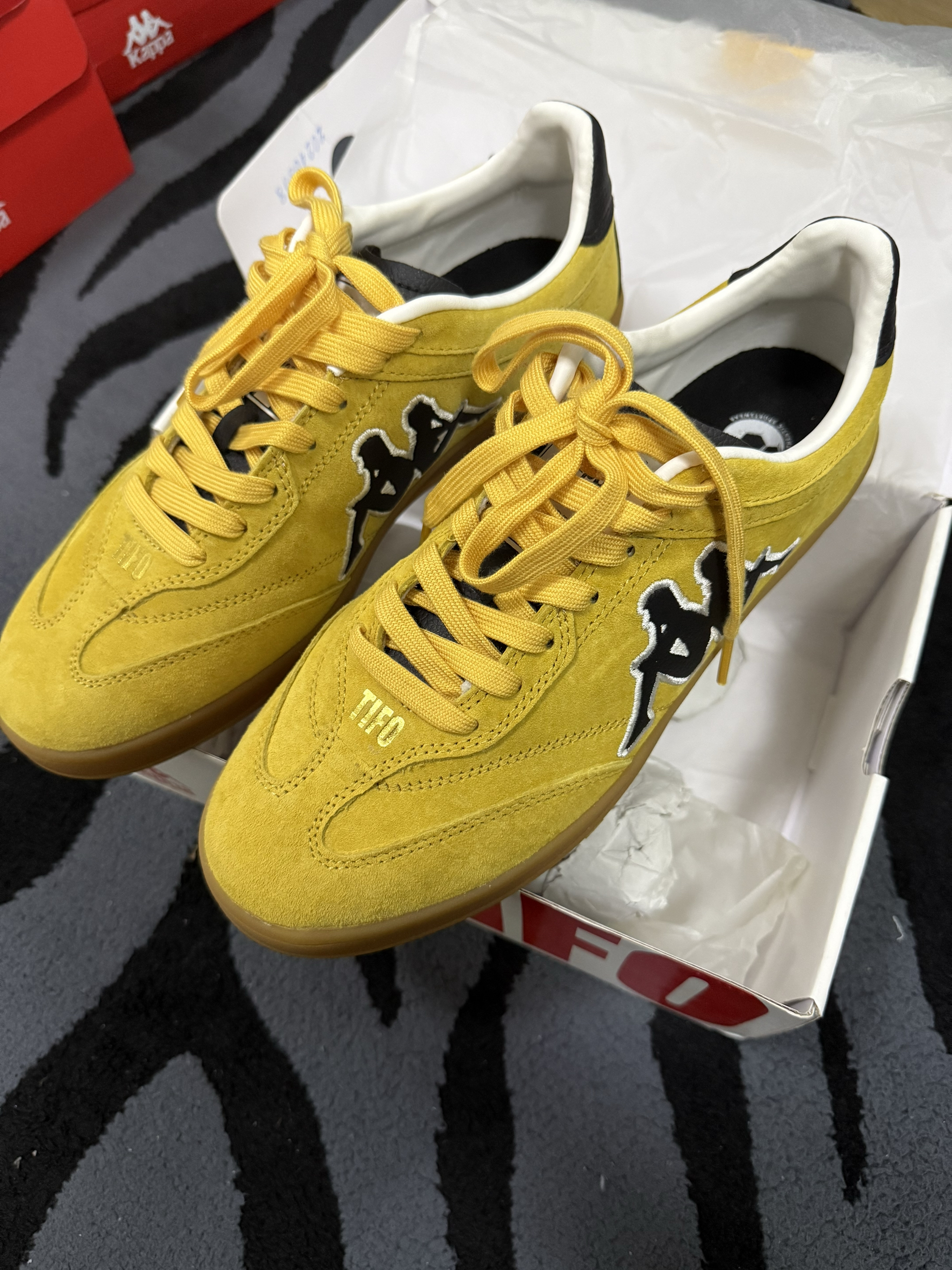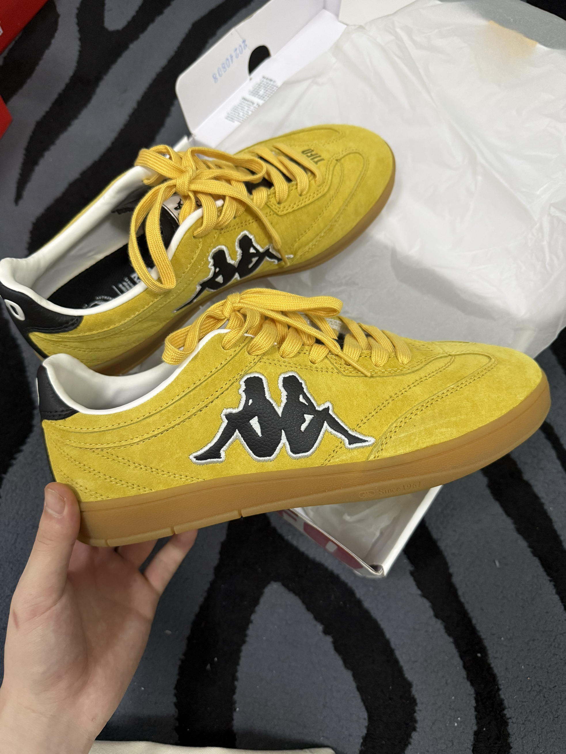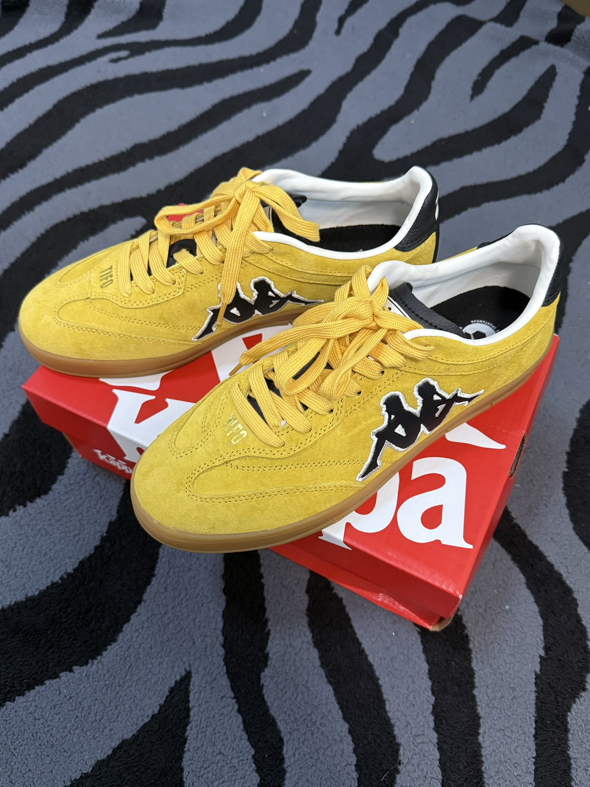 亮黄色的kappa德训鞋也太好看了吧!还是麂皮鞋面,经典背靠背logo!夏天穿搭配一条短裤帅爆了!
