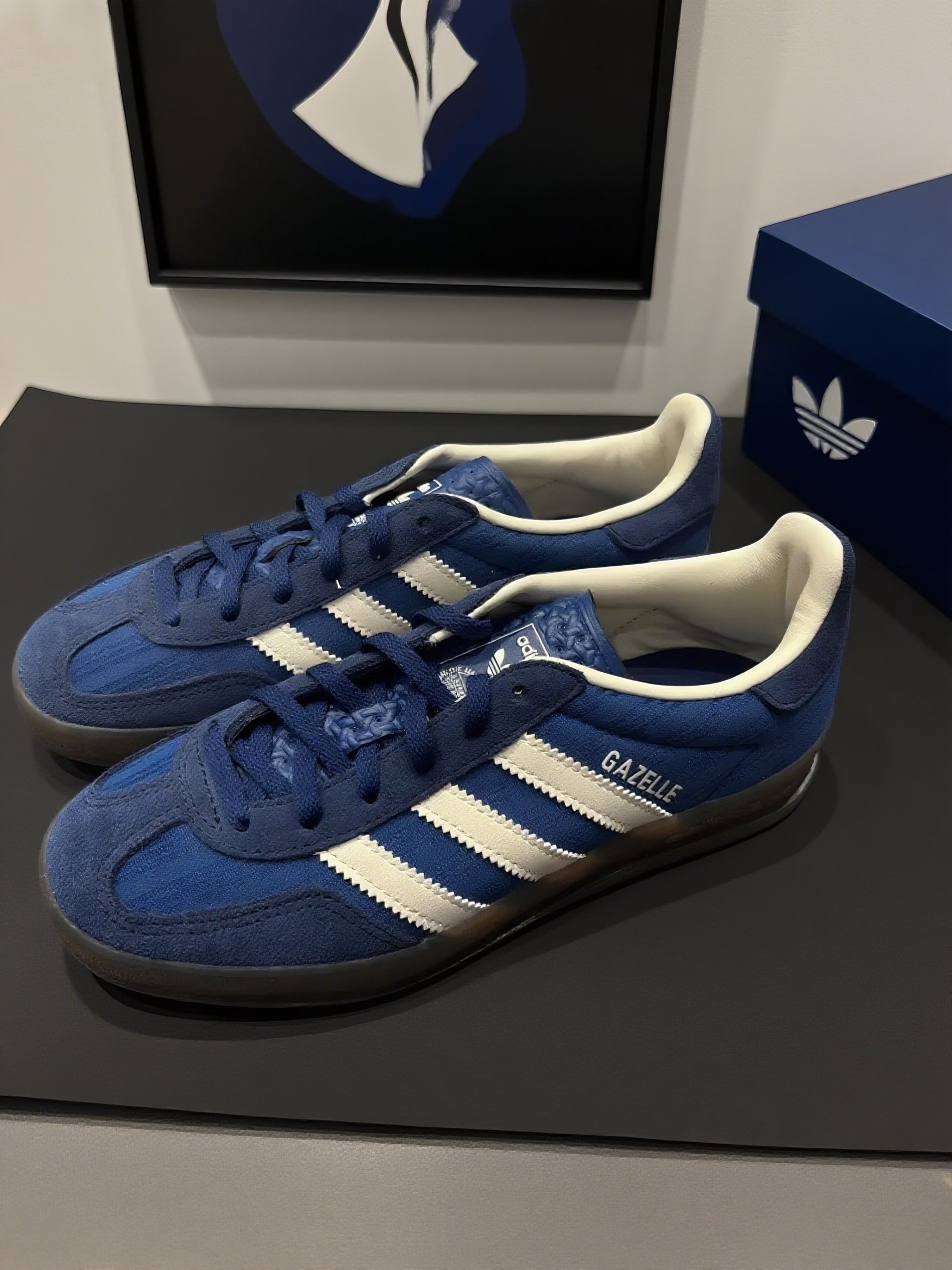 挖到一双把「通勤高级感」玩明白的鞋- 阿迪Gazelle雾霾蓝 !低饱和灰调蓝+复古麂皮+极简三叶草标! 莫兰迪雾霾蓝温柔到掐出水,显白不扎眼! 不过!麂皮沾灰显眼,得备软毛刷轻扫,但架不住它把“高级感”焊死在鞋底。